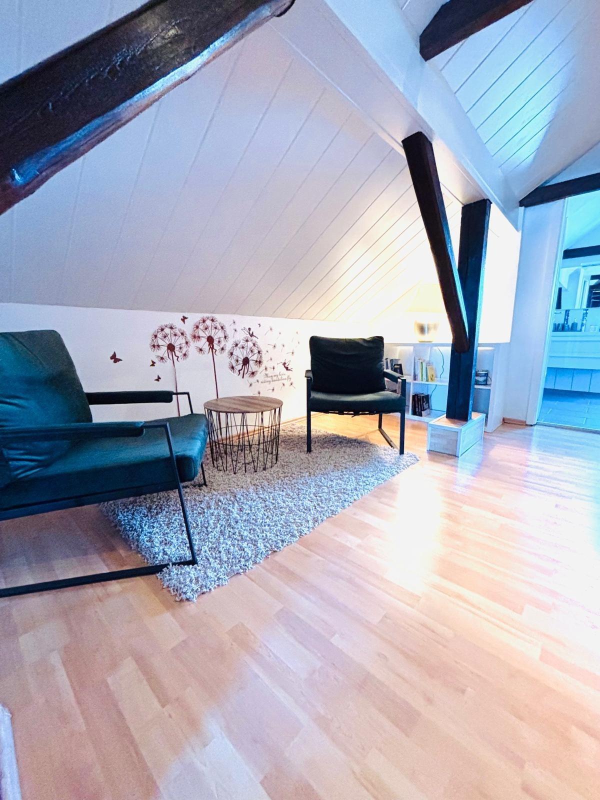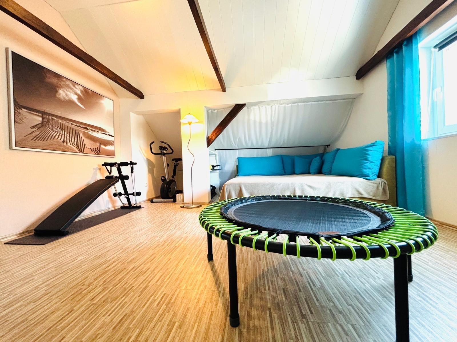 Du wohnst direkt neben der Altstadt in der Märchenstadt Wolfhagen. Dort hast du alles was dein Herz begehrt: Restaurants, Museen, Drogerien, Cafés und kleine Lädchen. Deine Wohnung hat 120 m2 ist im 1.OG gelegen und auf zwei Stockwerken verteilt. 1.OG: Zwei Schlafzimmer, Wohnzimmer, Küche, Bad mit WC und Badewanne. Im 2.OG: Wellnessbereich mit Massageliege, XXL Sofa, TV, Hometrainer, Belicon Trampolin und Fitnessmatte, sowie ein großes Bad mit WC und XXL Dusche