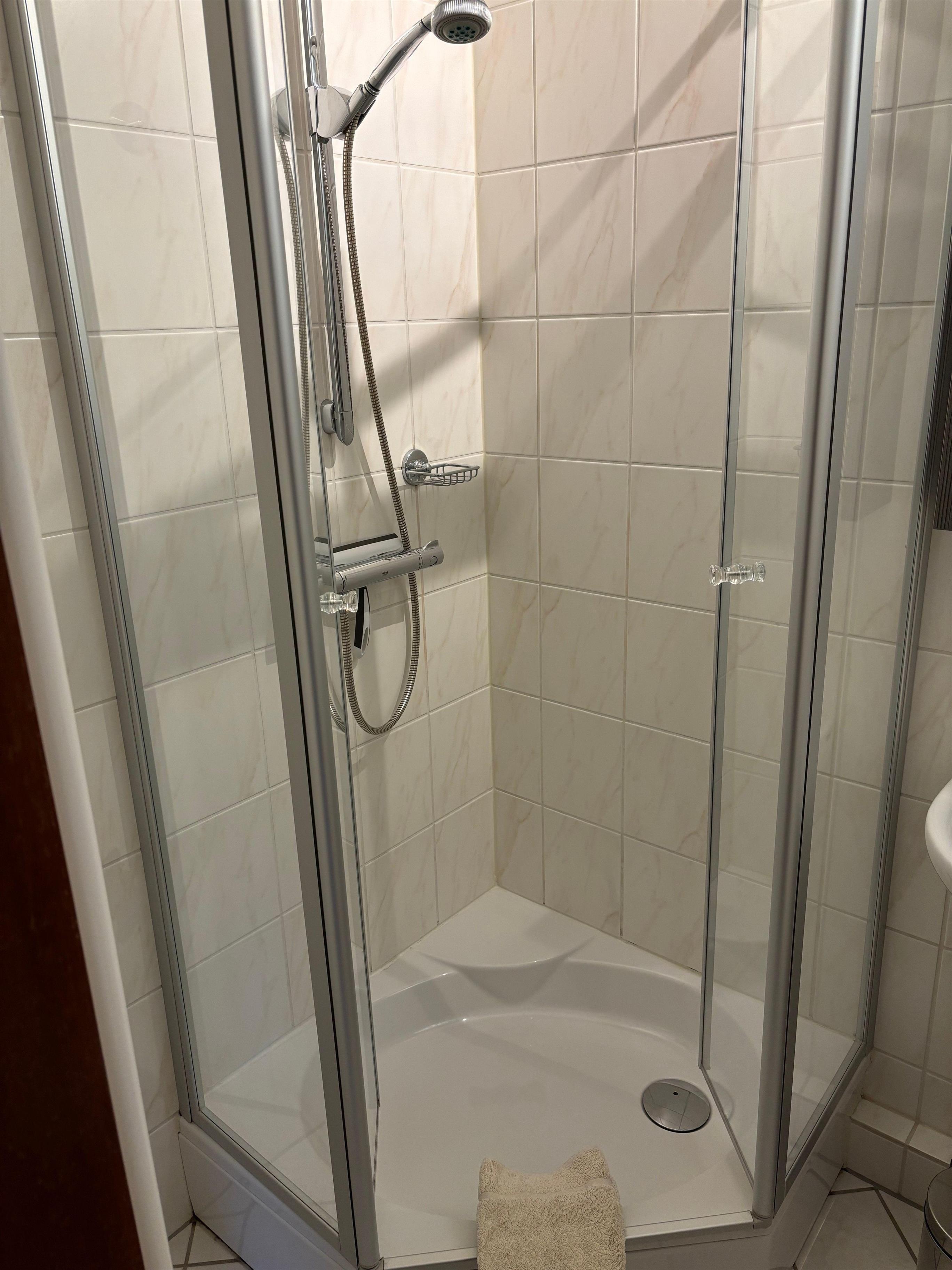 Das Bad mit Dusche/WC ist mit Handtuchwärmer,Handtüchern,Fön und Kosmetikspiegel ausgestattet. Zum Schlafen steht Ihnen ein Schrankbett zur Verfügung, welches tagsüber keinen Platz benötigt.