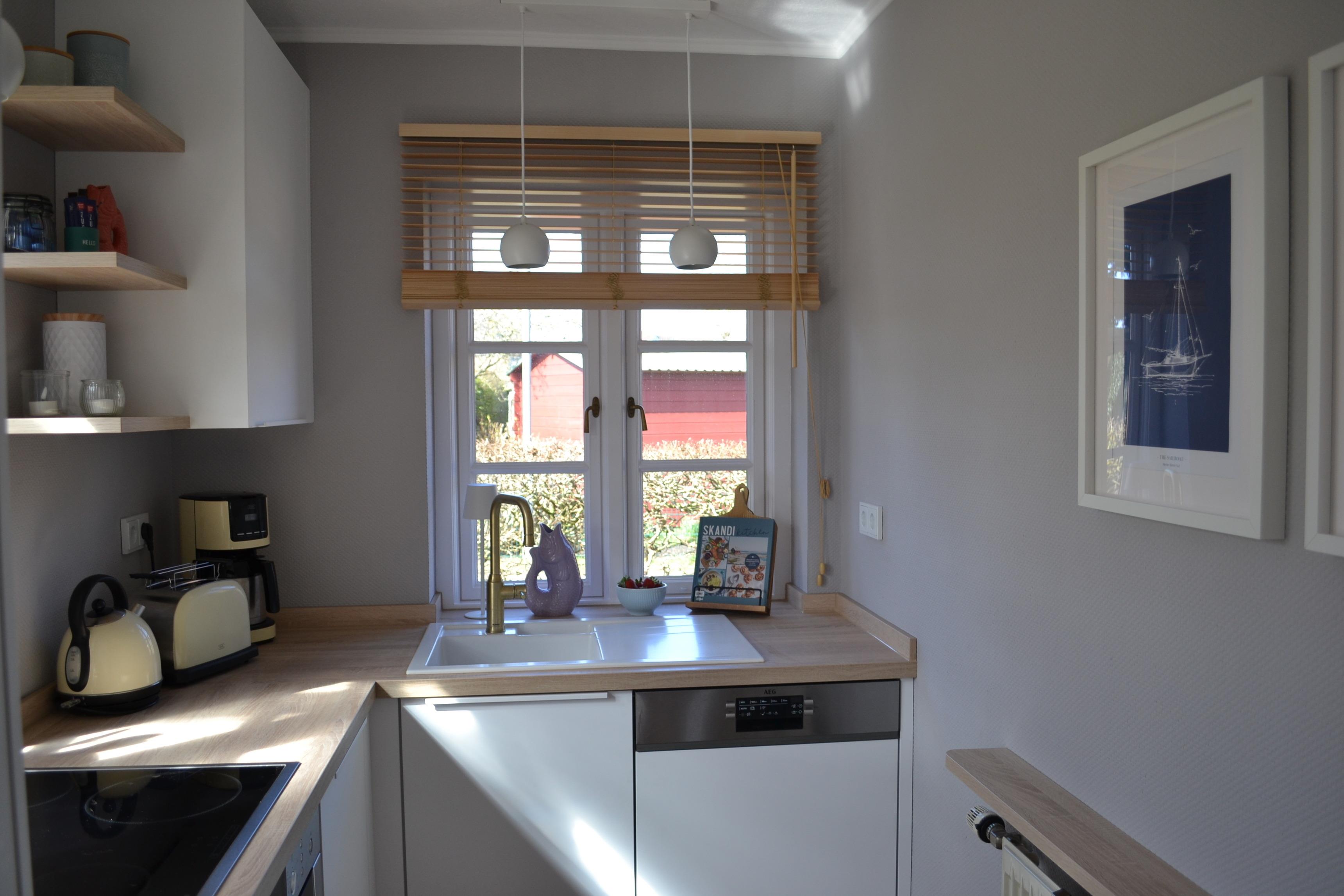 Das Wohn-Esszimmer ist offen und großzügig geschnitten und lädt zum Entspannen und zu gemeinsamen Mahlzeiten ein. Dieser Bereich ist mit der voll ausgestatteten Küche verbunden. In der kalten Jahreszeit bietet der Kaminofen wohlige Wärme und Gemütlichkeit. Vom Wohnbereich hat man einen direkten Zugang zur Südterrasse, dem großen Garten und Ihrem Strandkorb.