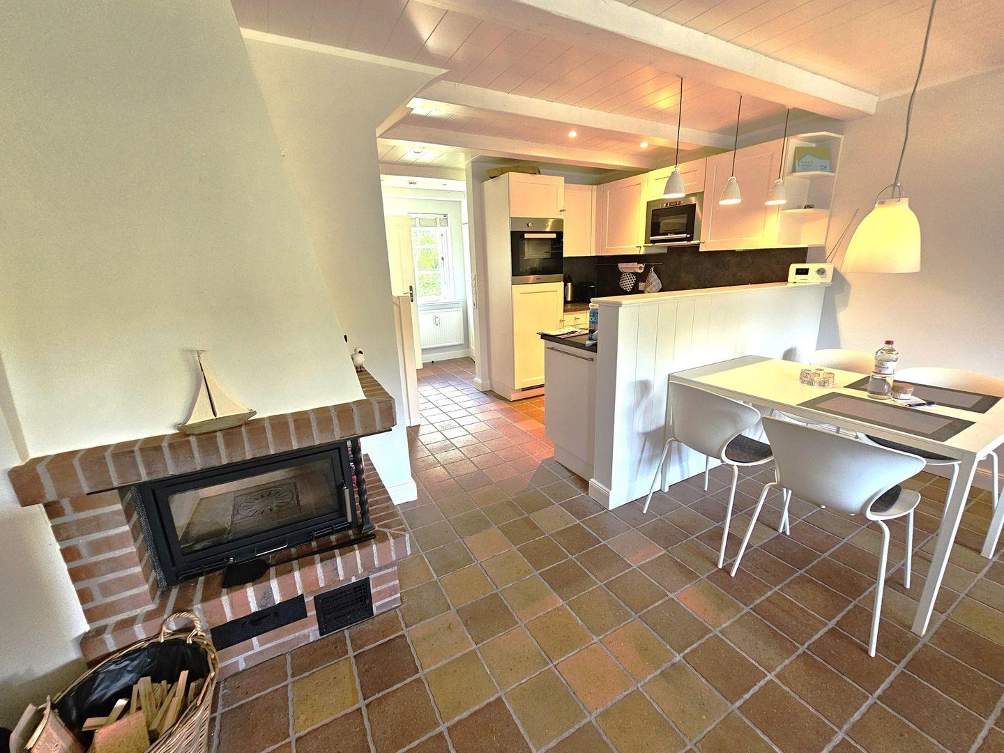 Pastoratshof - Haus 6: 72 m² großes 4-Sterne-Ferienhaus auf 2 Etagen mit 2 Schlafzimmern, Bad mit Dusche und zusätzlichem Gäste-WC. Offene Küche zum Wohnzimmer mit Induktionsherd, Backofen, Mikrowelle und Spülmaschine. Kamin, WLAN/TV, eigene Sauna, Terrasse mit Gartenmöbeln und Garten. Waschmaschine/Trockner gemeinschaftlich (gegen Gebühr), 1 kostenloser Privatparkplatz. Haustiere bis 2 erlaubt, Nichtraucher. Ortskern und Einkauf 200 m, Strand/Meer 2,6 km.