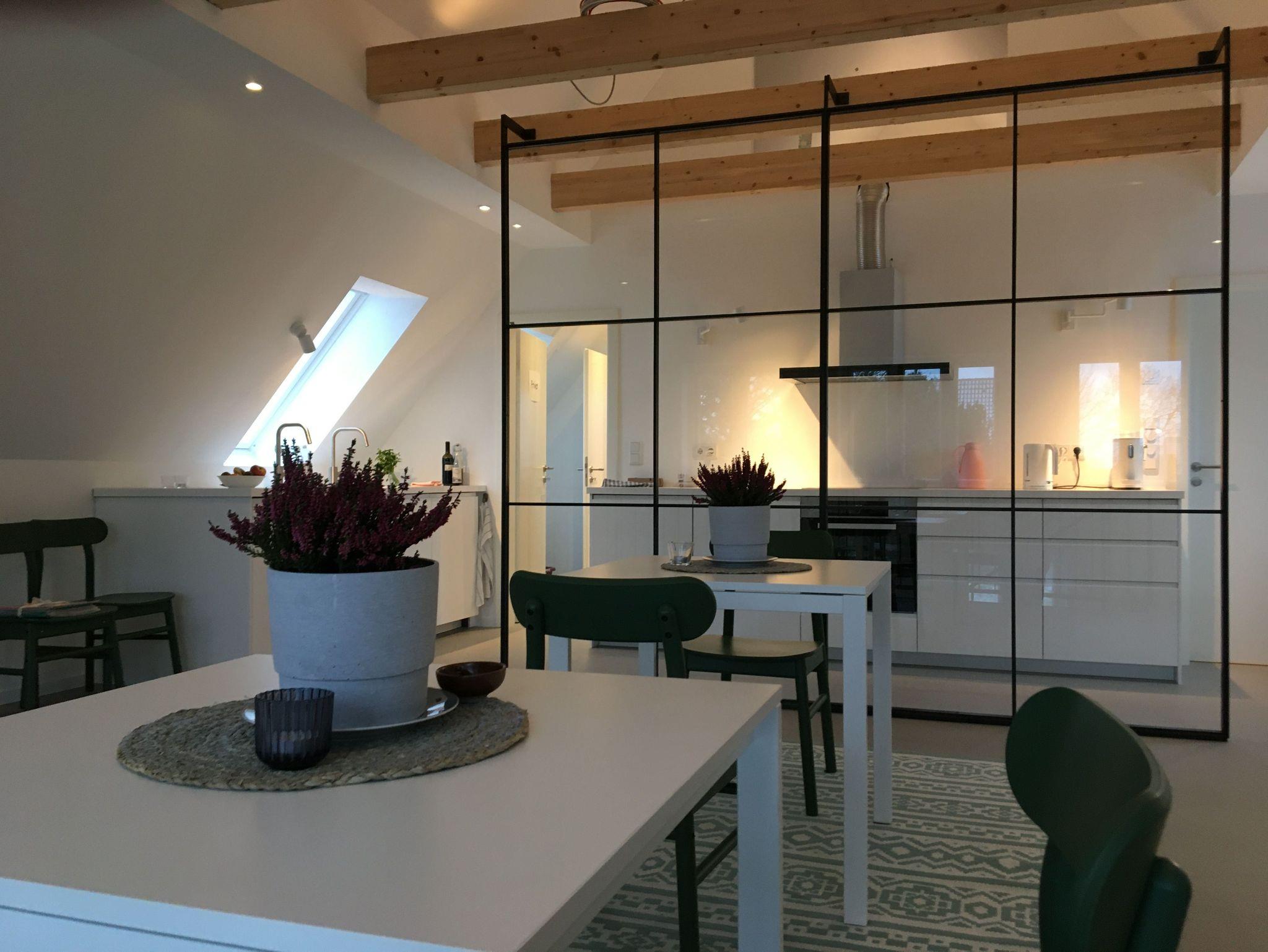 Im Dachgeschoss befindet sich die Wohnung des Gastgebers und der Frühstücksbereich, wo wir Euch (optional) ein reichhaltiges und gesundes Frühstück servieren. Der Preis beträgt € 17,50 pro Person/Frühstück und kann optional auch vor Ort dazu gebucht werden.