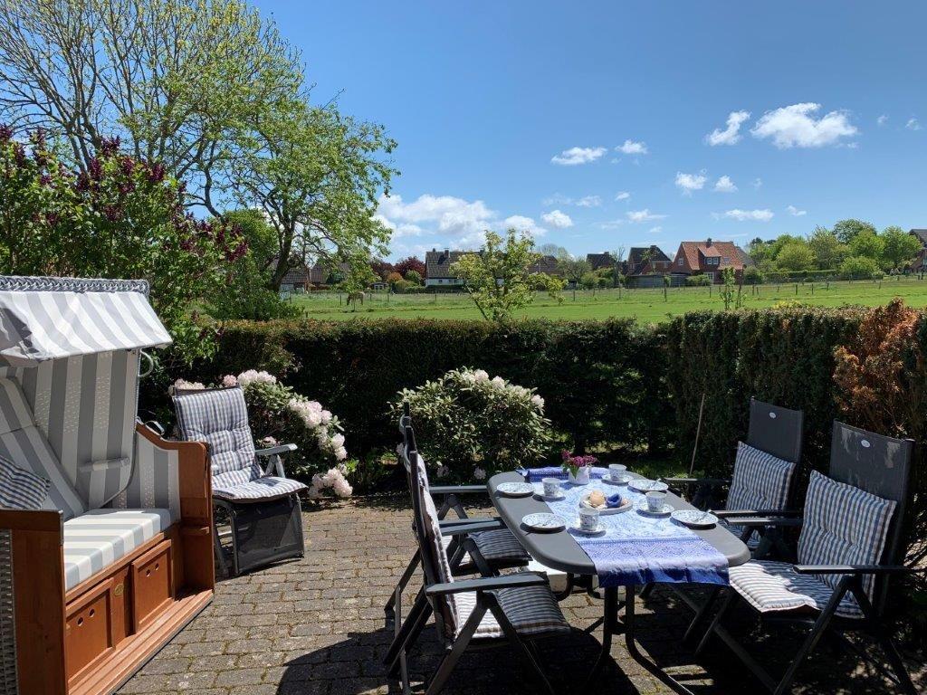 Das Haus ist liebevoll eingerichtet, wobei besonders bei den Details auf den friesischen Charme geachtet wurde. Im Erdgeschoss befinden sich neben dem Eingangsbereich, ein Gäste-WC und ein komfortables Wohnzimmer mit Schlafgelegenheit sowie ein Essbereich. Hier können ein SAT-TV, DVD-Spieler, Stereoanlage mit Internetradio sowie kostenloses WLAN (Internet) genutzt werden. Die Einbauküche ist modern mit Cerankochfeld, Geschirrspüler, Backofen mit Mikrowelle, Kühlschrank mit Gefrierfach, Kaffee- sowie Kapselmaschine, umfangreichem Geschirr und Besteck ausgestattet. Es stehen zwei Schlafzimmer und das Wannenbad mit Dusche im Obergeschoss zur Verfügung. Der ausgebaute offene Spitzboden lädt die Größeren ein zum Schmökern in einem der vielen vorhandenen Bücher, die Kleineren haben hier Platz zum Spielen. Eine Auswahl an Spielen steht für Sie und Ihre Kinder zur Verfügung. Im Souterrain befinden sich ein weiteres Duschbad mit WC sowie ein zweites Wohnzimmer, in dem Sie bei guter Musik und dem zweiten SAT-TV mit DVD-Spieler abschalten können. Des Weiteren können Sie im Souterrain in der großen Gemeinschaftssauna (gegen Gebühr) herrlich entspannen. Vom Wohnbereich kommen Sie auf eine große Südost-Terrasse mit modernen Gartenmöbeln und Strandkorb für Sonnenanbeter. Auf der großzügigen gemeinschaftlich nutzbaren Rasenfläche können Sie von Ihren Sonnenliegen Ihre Kinder bei der Benutzung von Schaukel und Klettergerüst beobachten. Waschmaschine und Trockner stehen Ihnen gegen Gebühr zur Verfügung.