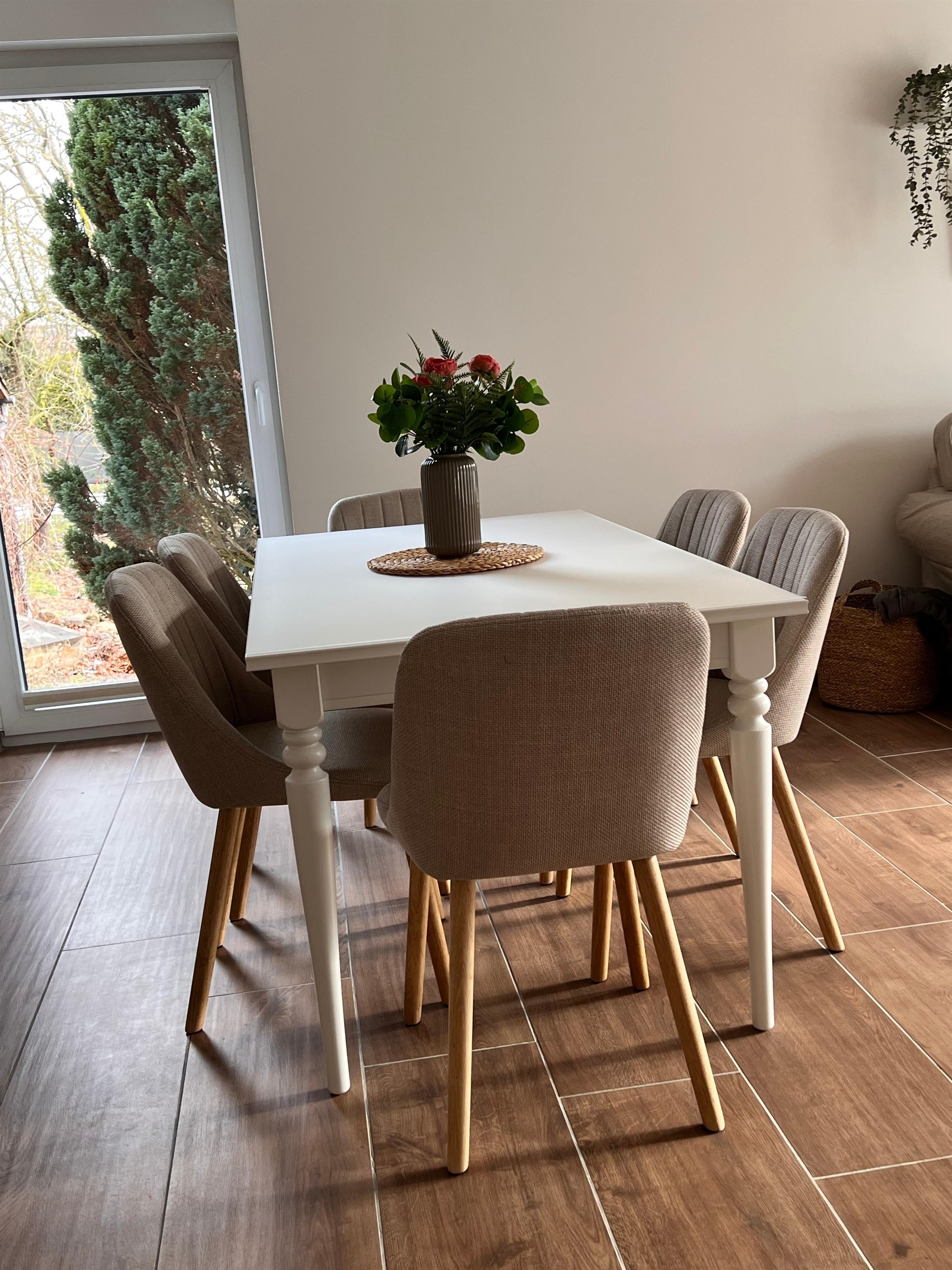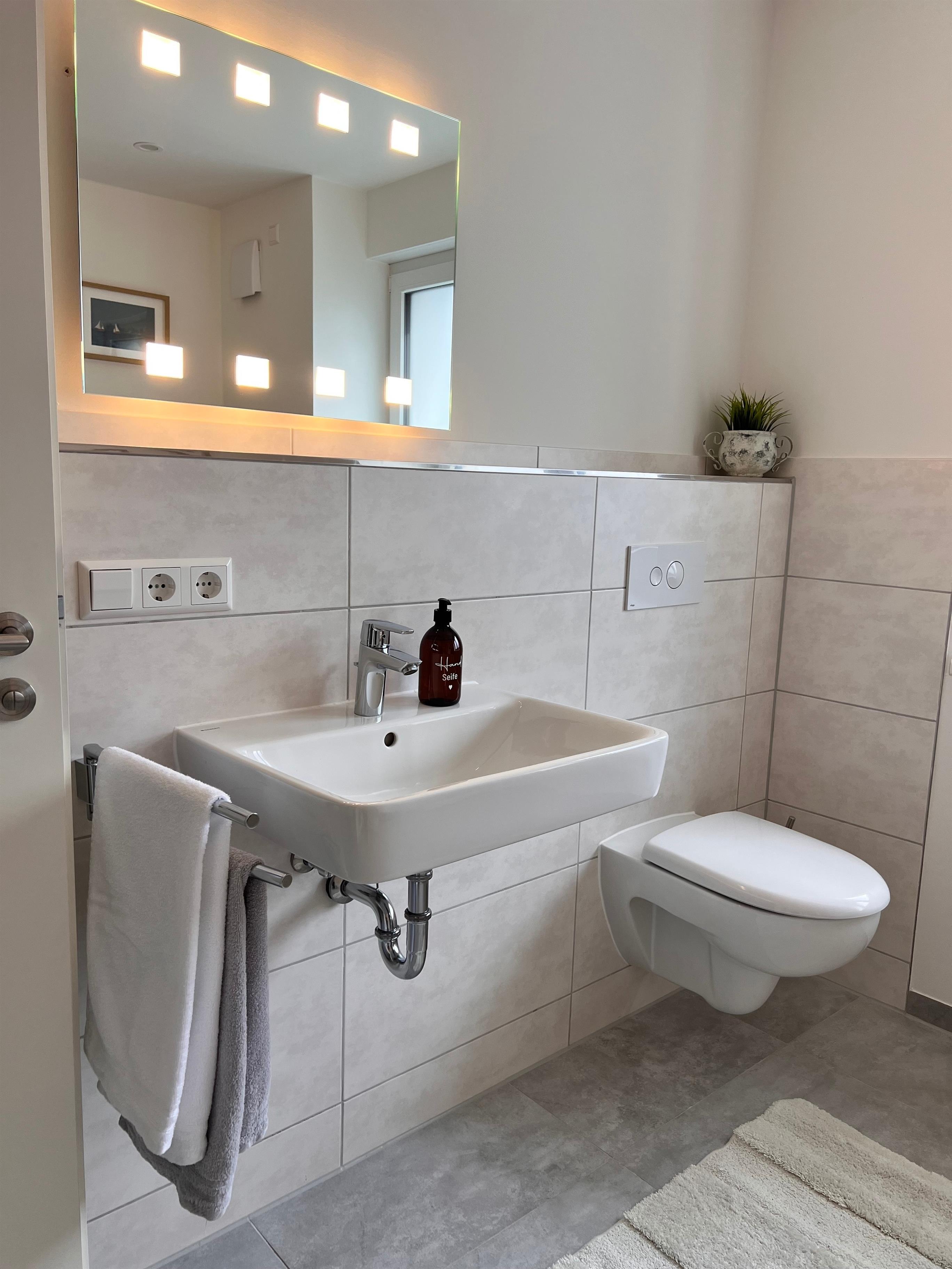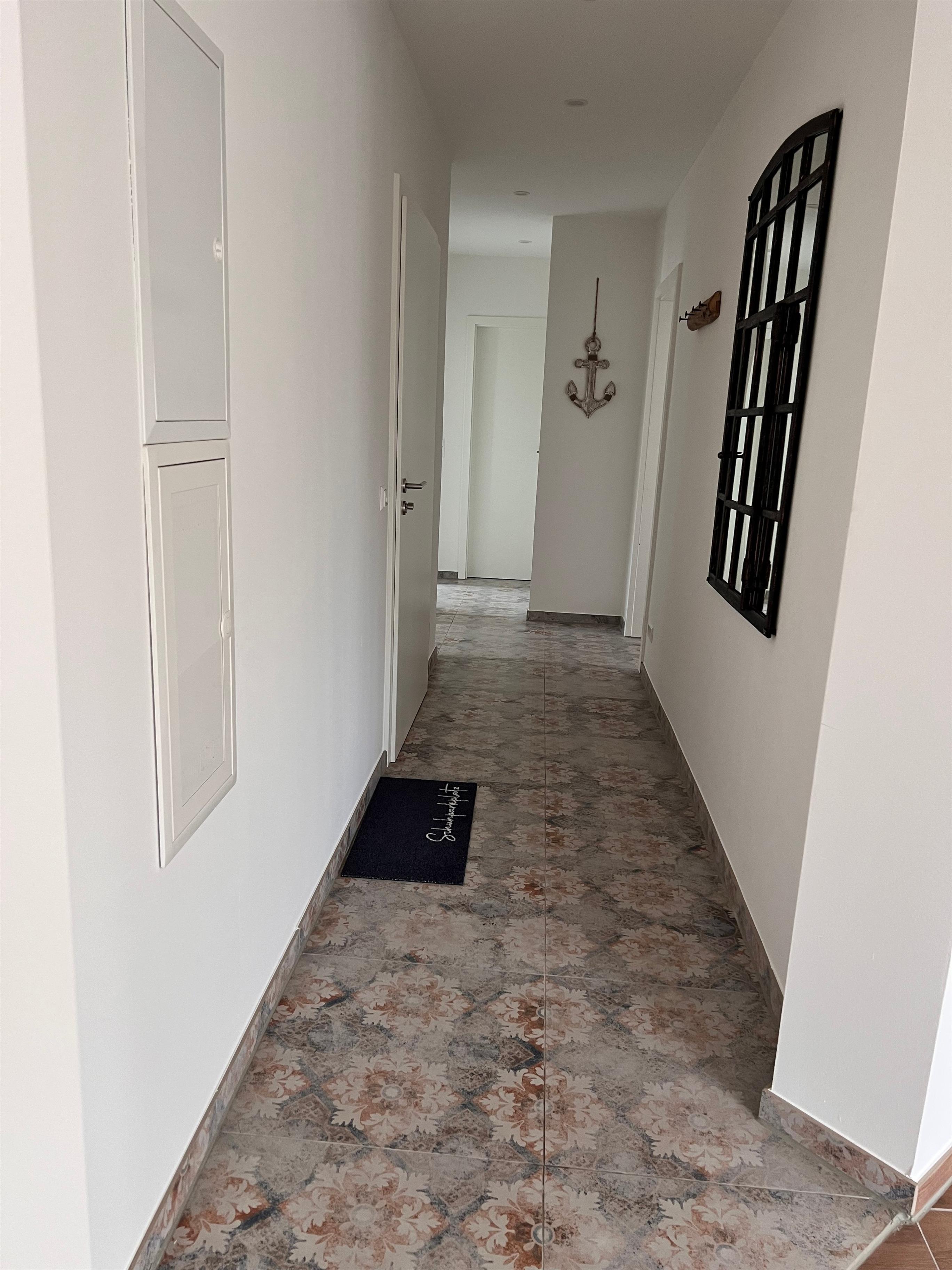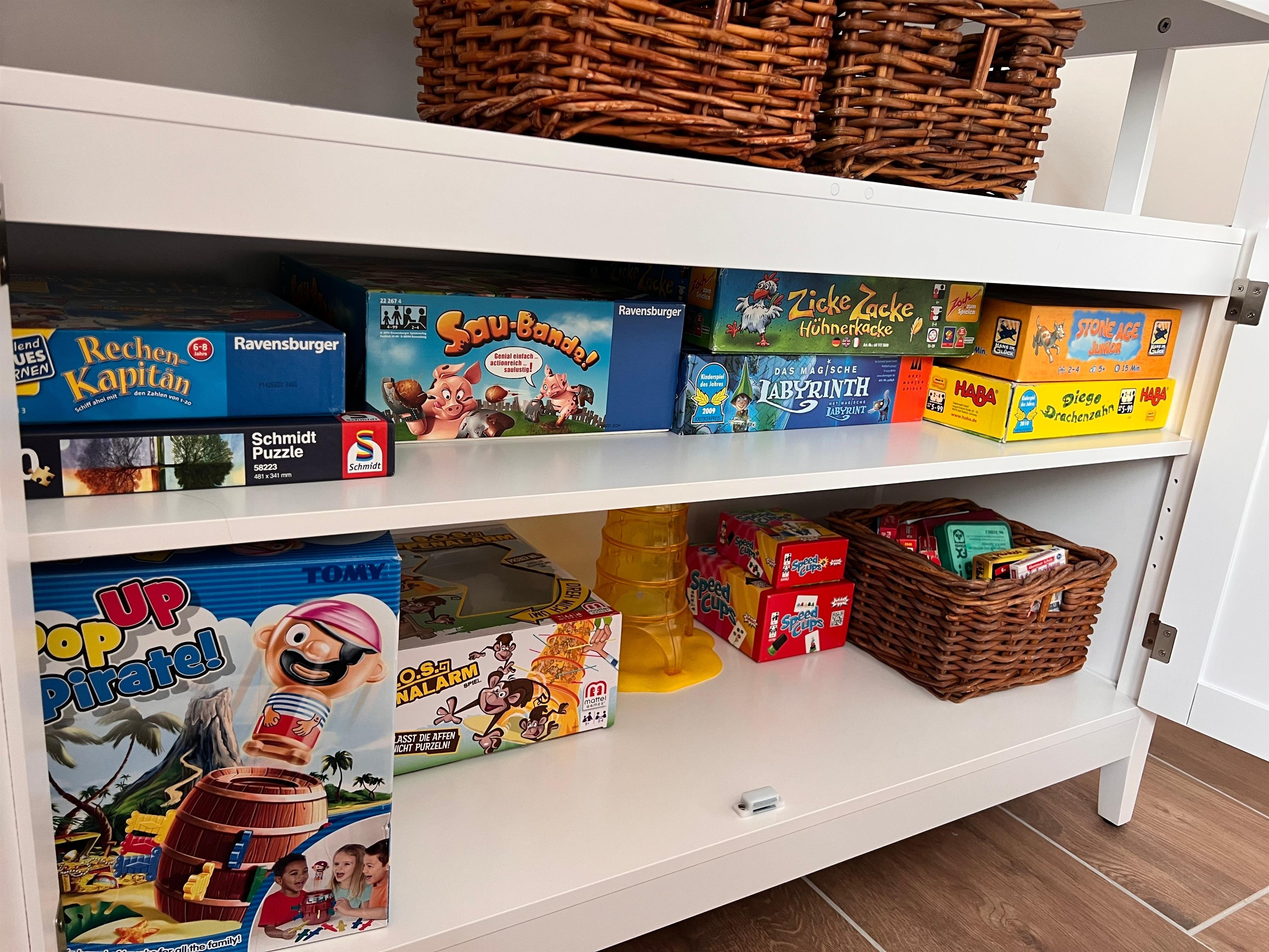 Die 96 qm große Ferienwohnung im Erdgeschoss wurde im Jahr 2022 frisch saniert und im Jahr 2026 renoviert. Sie bietet Platz für bis zu 5 Urlauber. Sie hat eine große Terrasse mit Blick in die umliegenden Gärten. Die Wohnung verfügt über einen geräumigen, lichtdurchfluteten Wohn-/Essbereich mit einer voll ausgestatteten Küchenzeile, Flat-TV, und freiem WLAN. Das behagliche Haupt-Schlafzimmer wartet mit einem großen Boxspringbett (180x200), mit zwei Härtegraden (H3,H4) auf. Das zweite Schlafzimmer ist mit zwei Einzelbetten (100x200) und einem Boxspringbett (120x200) ausgestattet. Es verfügt über einen eigenen Fernseher. Sollten Ehepaare die Wohnung buchen und beide Schlafzimmer nutzen wollen, teilen Sie dies bitte bei der Buchung mit. Auf Wunsch kann ein Kinderreisebett und ein Hochstuhl bereitgestellt werden (bitte vorher mitteilen). Für regnerische Tage liegen einige Spiele oder auch Bücher parat. Sollten Sie mal länger bleiben, oder etwas zu waschen haben, steht eine Waschmaschine bereit. Das moderne Badezimmer verfügt über eine große Dusche und rundet das Wohlfühlpaket gekonnt ab.