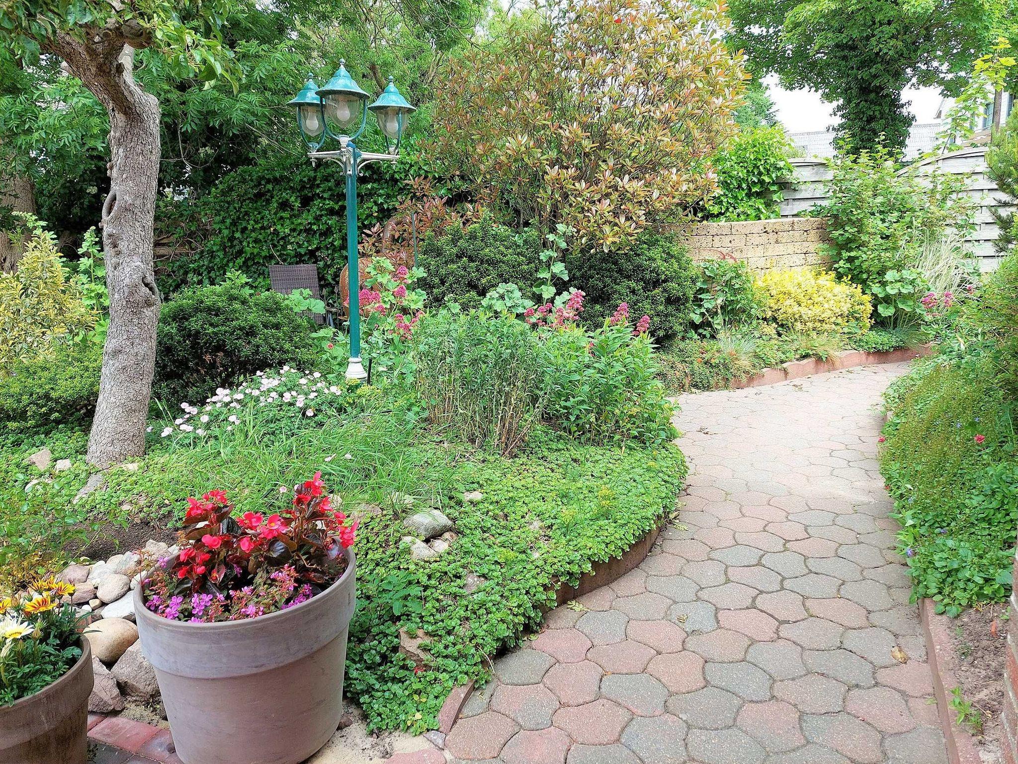 Für unsere Gäste gibt es PKW-Stellplätze, eine Fahrradgarage, eine überdachte Terrasse und einen Garten mit lauschigen Sitzplätzen und einem Grillplatz.