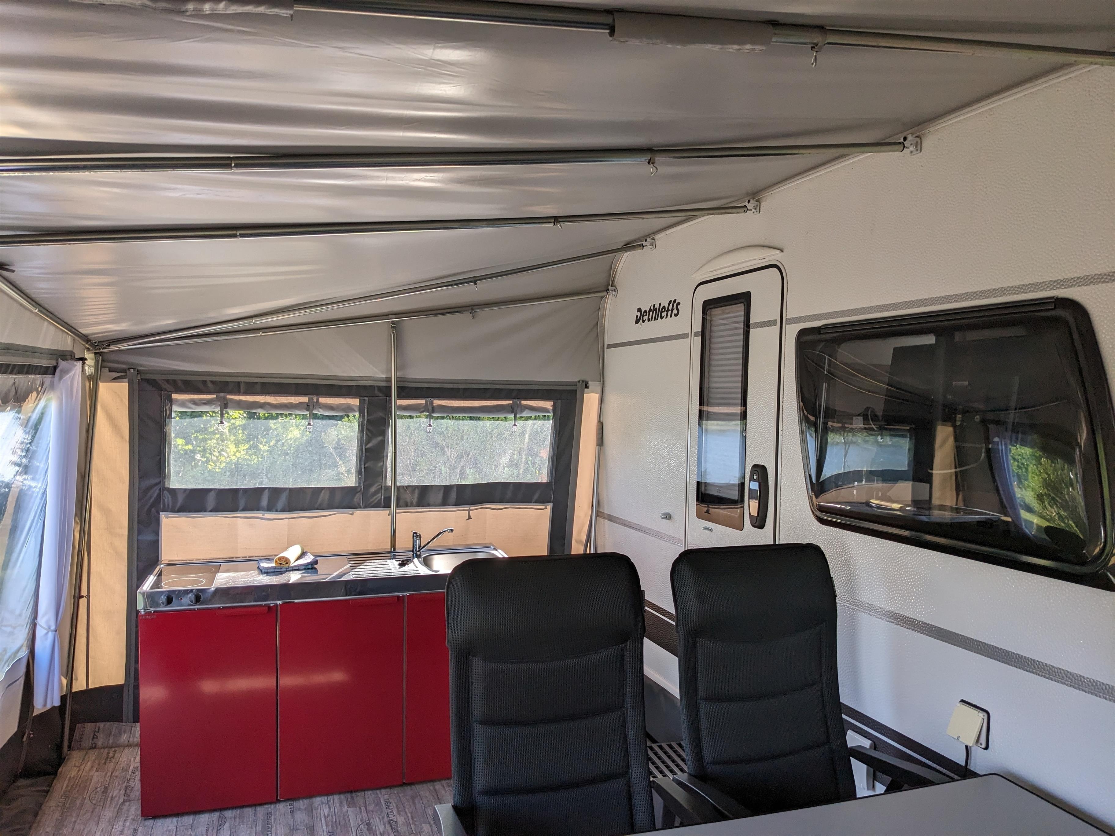 Nach einem ereignisreichen Tag können Sie sich in Ihrem komfortablen Mietwohnwagen zurückziehen. Er ist gemütlich eingerichtet und bieten Ihnen alles, was Sie für einen angenehmen Aufenthalt benötigen.