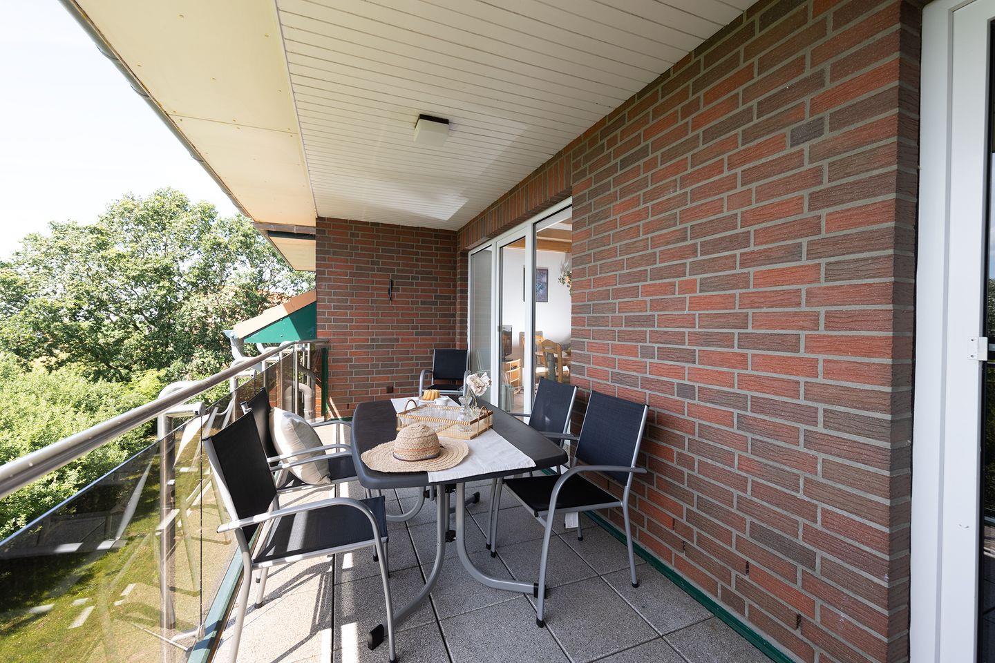 Wenn morgens das Licht über den Deich wandert, liegt dir von der Loggia dieser Maisonettewohnung das Marschland zu Füßen. Auf 70?m² bietet sie viel Raum für bis zu sechs Personen - mit einem separaten Schlafzimmer, zwei Betten auf der offenen Galerie und einem gemütlichen Schlafsofa im Wohnbereich.
