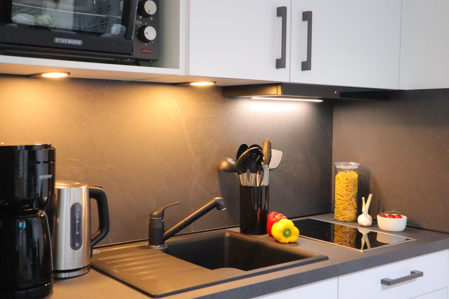 Die neue Einbauküche lädt zum Kochen ein, der Balkon zum Verweilen bei Morgensonne