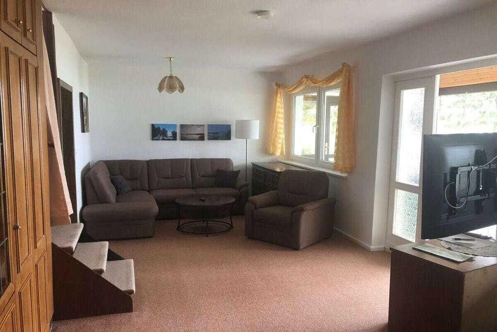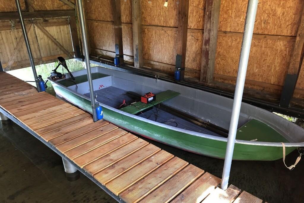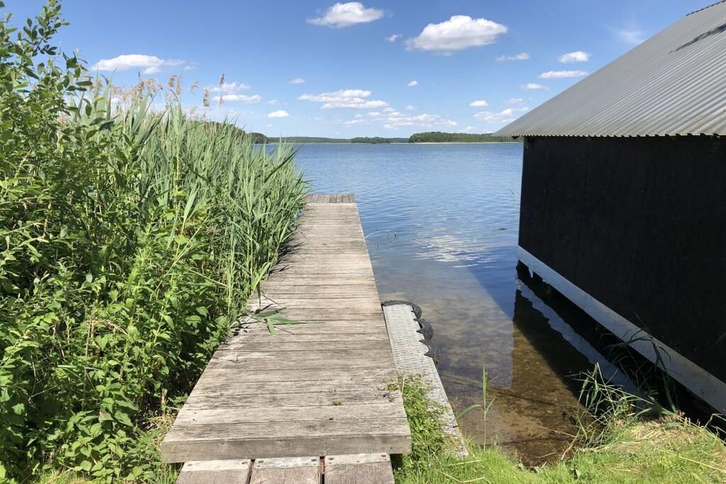Unser Ferienhaus steht ca. 50 Meter vom See entfernt auf einer Anhöhe. Von der Terrasse aus hat man einen wunderschönen Blick über den See, auf dem keine Motorboote fahren. Die Hälfte des Sees ist Naturschutzgebiet. Das Ferienhaus hat eine voll ausgestattete Küche, ein Bad mit Dusche und einer kleinen Badewanne, eher für Kinder geeignet. Die beiden Schlafzimmer befinden sich im Obergeschoss. In den Zimmern befindet sich jeweils ein Doppelbett, im großen Schlafzimmer zusätzlich ein Einzelbett. Jedes Schlafzimmer ist mit einem Fernseher ausgestattet. Ich möchte hier gesondert darauf hinweisen, dass sich die Toilette im Erdgeschoss befindet. Zum Objekt gehört der Bootssteg und der Angelkahn. Sie nutzen das gesamte Grundstück alleine. Auf Wunsch kann ein Elektromotor für das Boot dazu gemietet werden. Wir freuen uns auf Ihren Besuch.