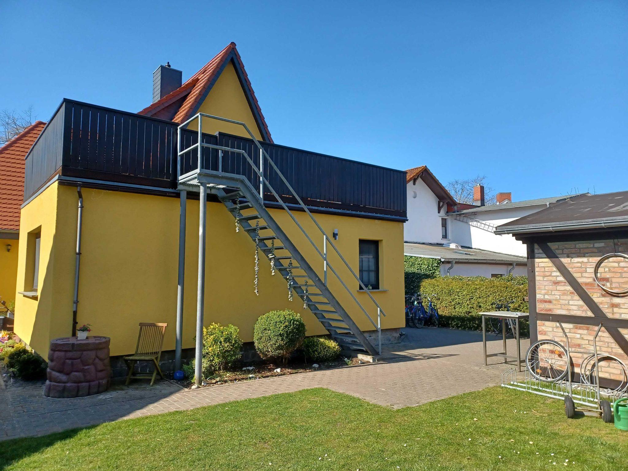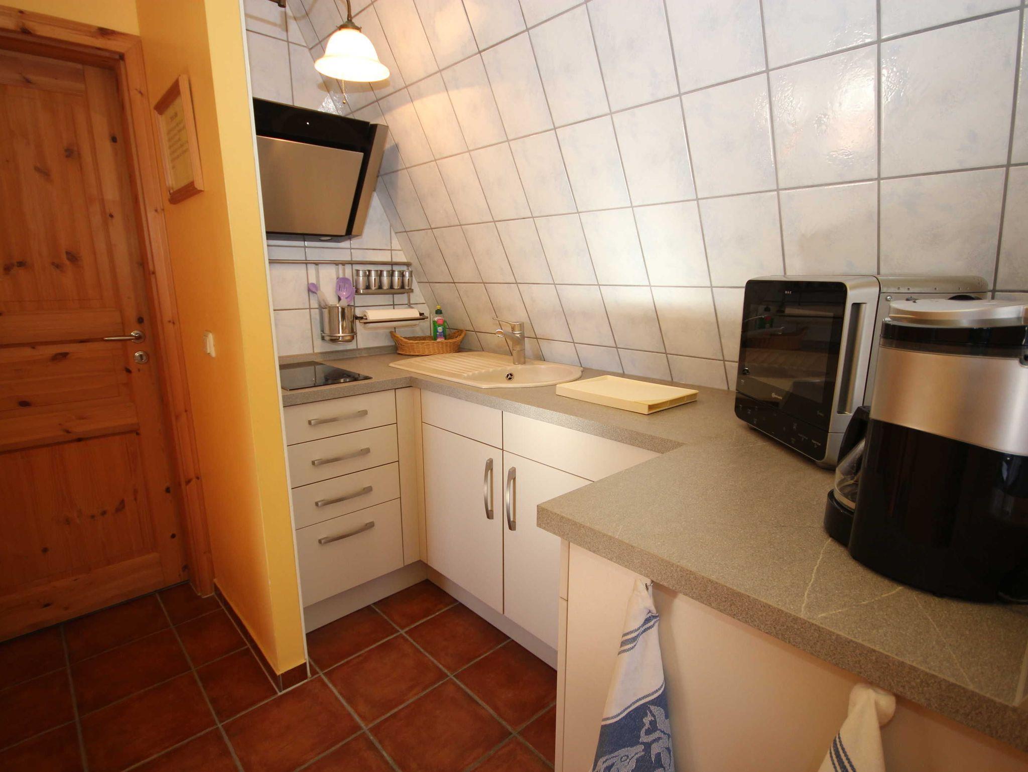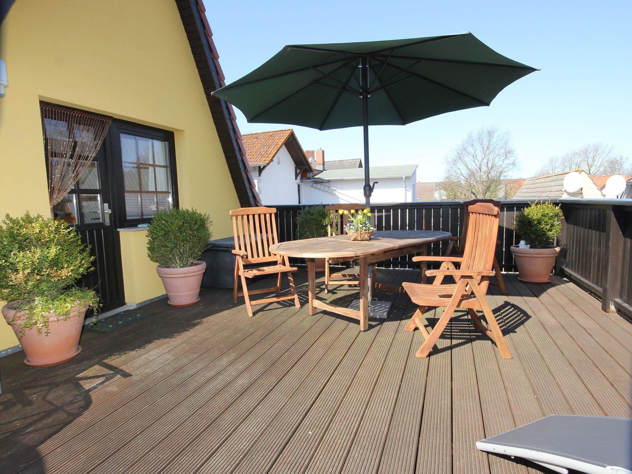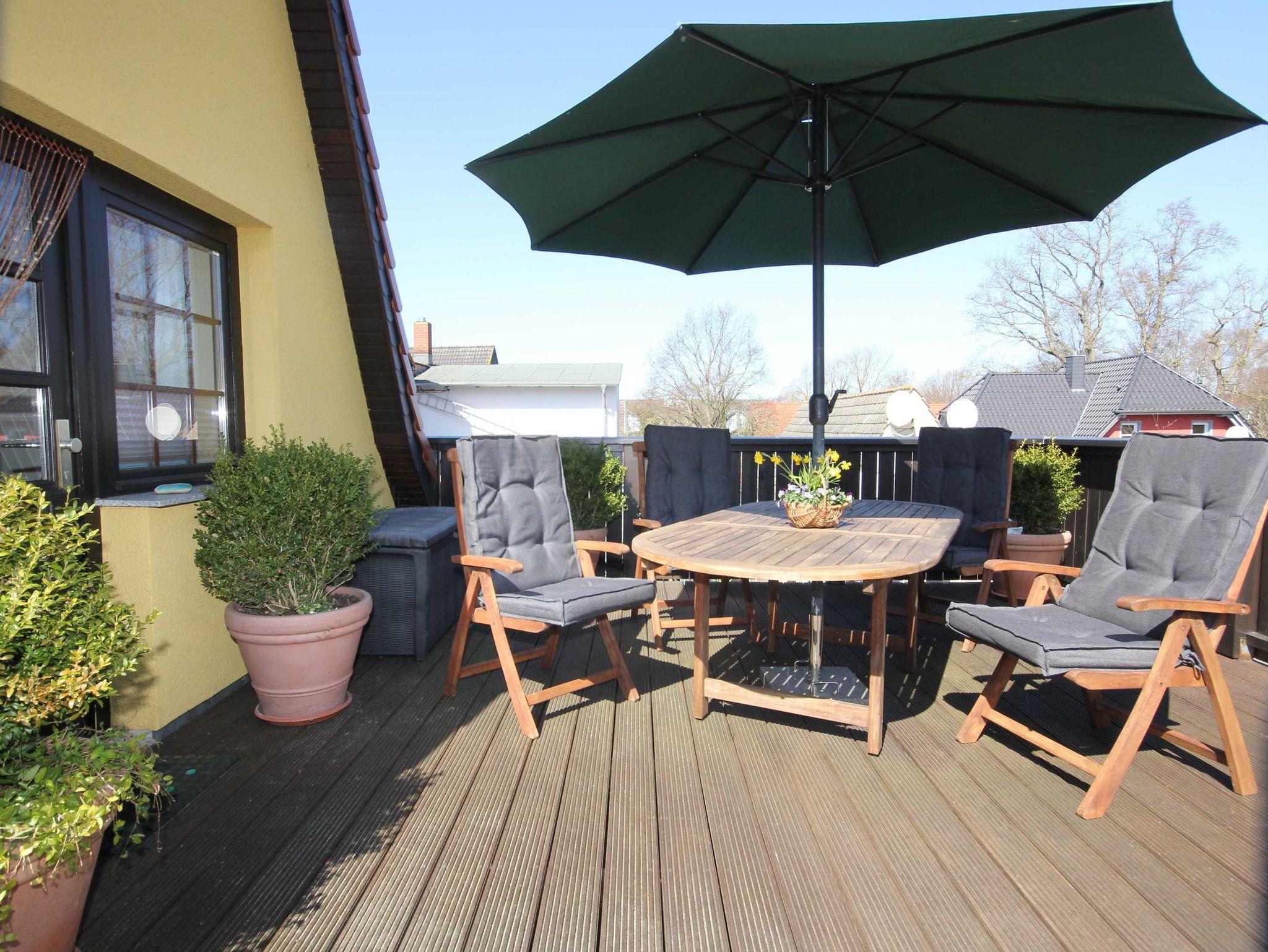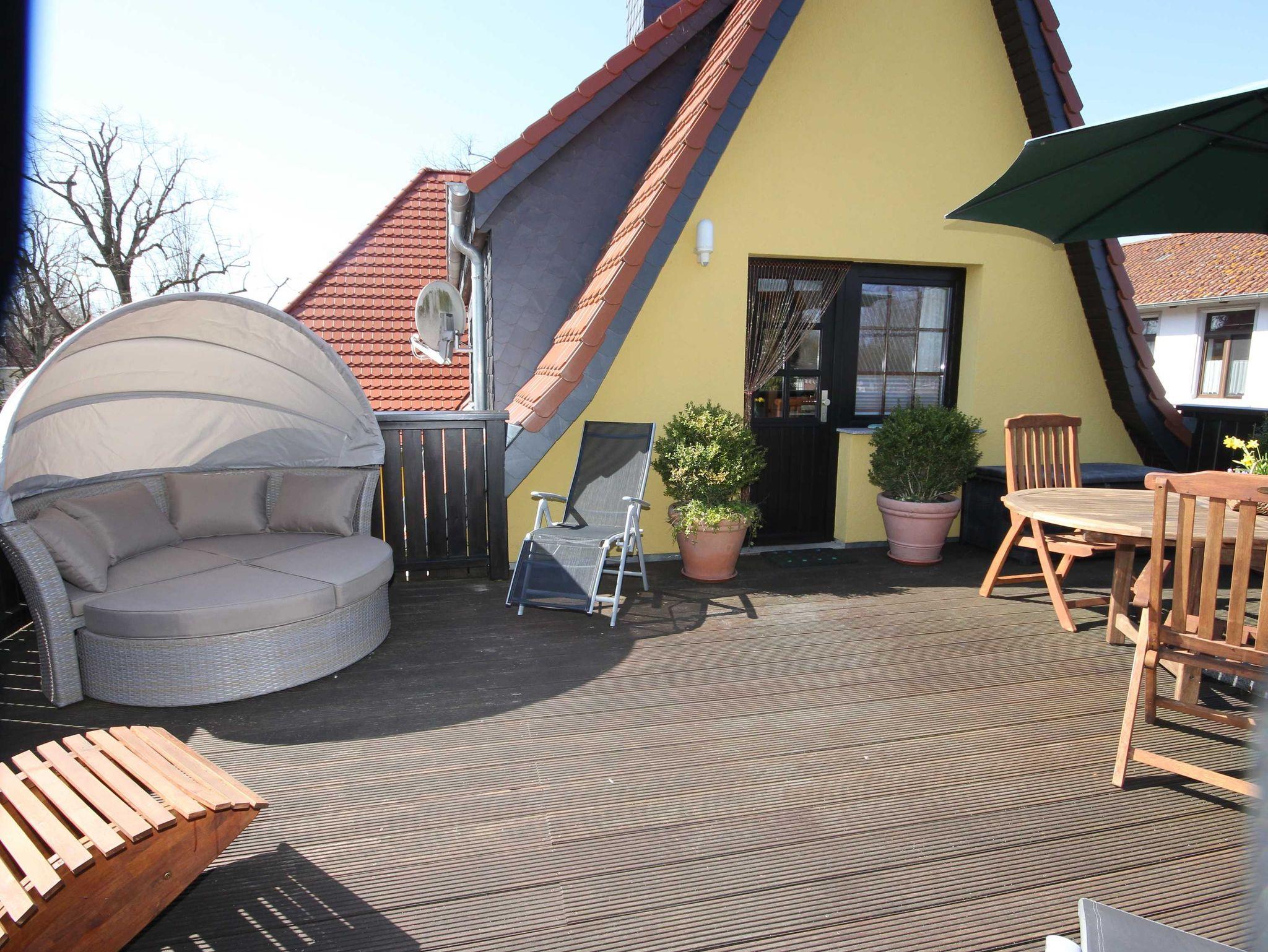 die komfortable Ferienwohnung mit liebevoller Ausstattung zum Detail und separatem Eingang über eine Freitreppe erreichbar, liegt im Obergeschoss. Genießen Sie die Nord- Ostseitige große Dachterrasse mit Gartenmöbel, einer Liegeinsel und Sonnenliegen, beim Frühstück oder lassen Sie den Abend mit einem guten Glas Wein am Strand in 250 m Entfernung ausklingen.Das Wohnzimmer verfügt über eine gemütliche Couch, kostenlosen WLAN- Gastzugang und SAT-TV. An das Wohnzimmer schließt sich die offene Küchenzeile an und ist ausgestattet mit einer Kühlschrank, und 2- Platten Cerankochfeld . Das separate Schlafzimmer verfügt über ein Doppelbett 1,80 x 2,00 m (getrennte Matratzen) und einem Kleiderschrank mit viel Stauraum.In der Ferienwohnung ist die Bettwäsche nicht vorhanden, die Handtücher können in der Zimmervermittlung für 7,00 pro Person (1 Badetuch, 1 Handtuch) dazugebucht werden. Das Bad verfügt über eine Dusche/WC Für unsere Gäste sind die Fahrräder inclusive . Unsere Wohnungen sind Nichtraucherwohnungen. Die Kaution beträgt 100,- und wird nach Abreise zurücküberwiesen.