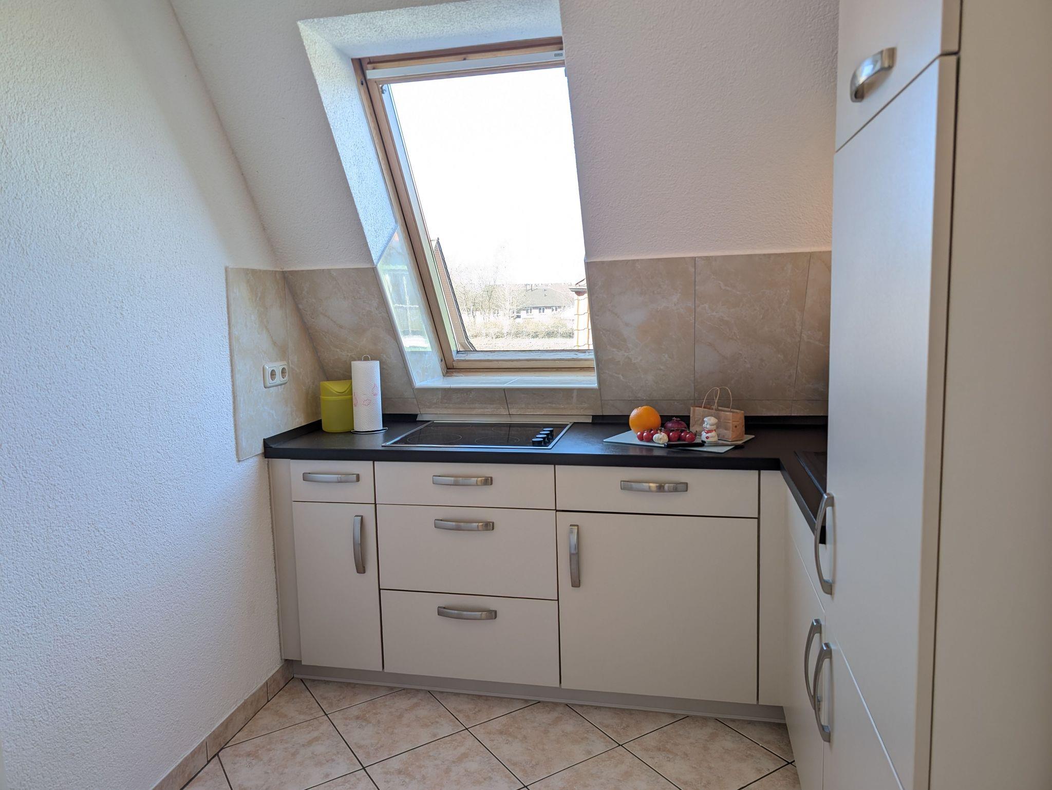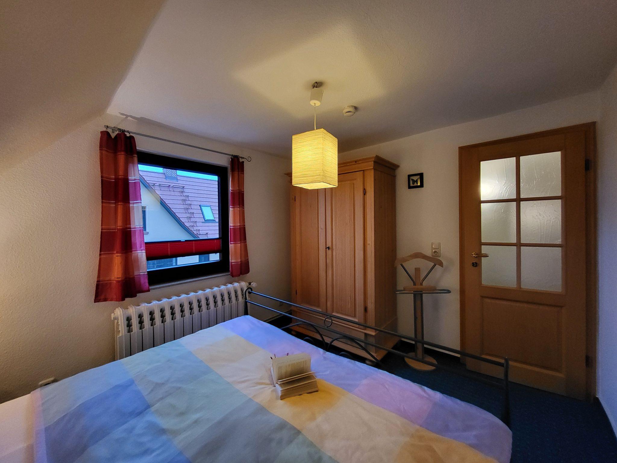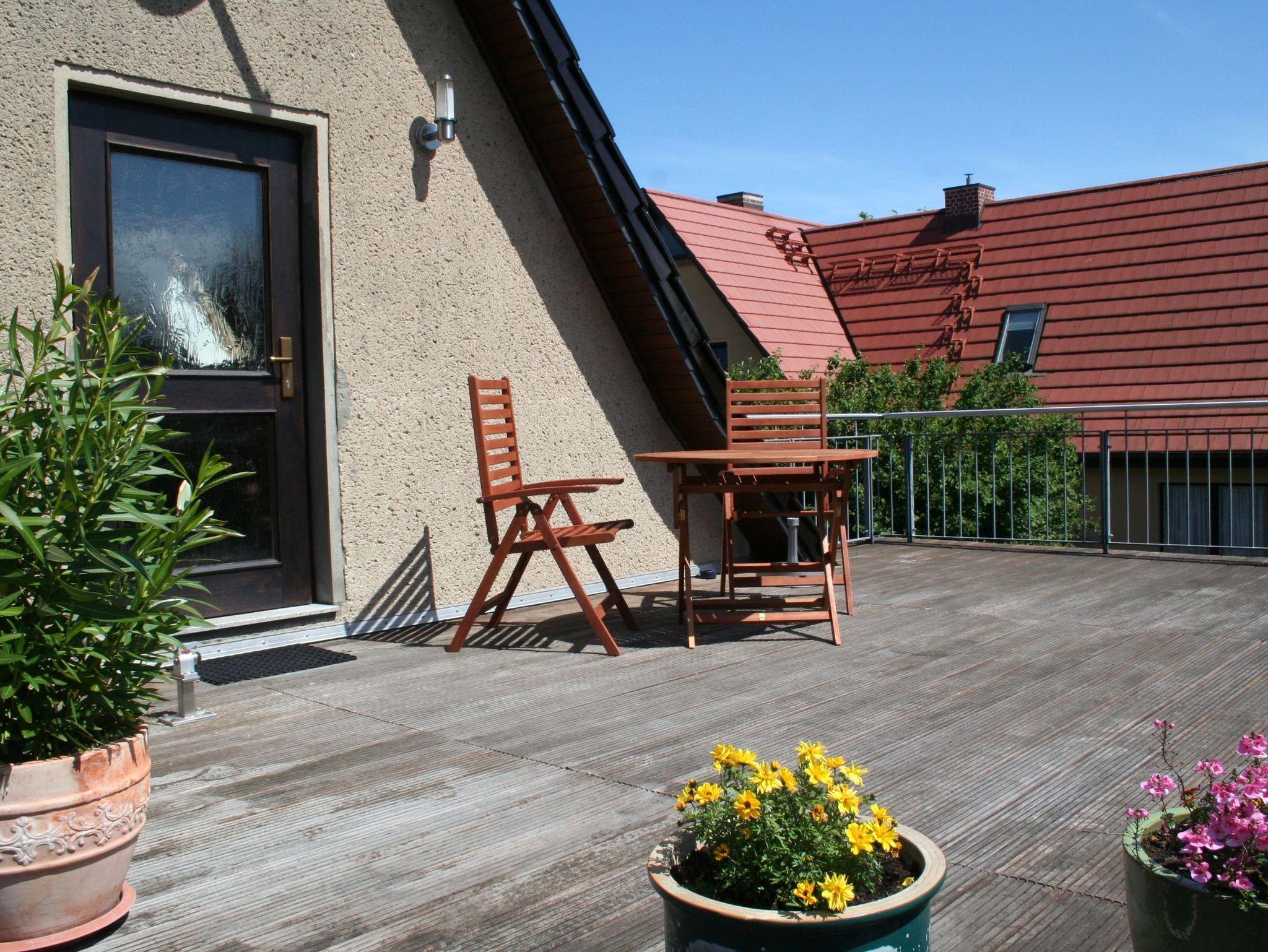 die gemütlich eingerichtete Ferienwohnung im Obergeschoss, gelegen in ruhiger Lage am Ortsrand, mit separatem Eingang und Zugang zur Dach-Terrasse die zum entspannen einlädt. Der feinsandige Strand ist etwa 250 m entfernt. Das Wohnzimmer verfügt über eine gemütliche Couch und SAT- TV, sowie einen Essplatz. Im Schlafzimmer steht ein Doppelbett 1,80 x 2,00 m ( getrennte Matratzen ) bereit. In der Küchenzeile finden Sie ein Cerankochfeld mit 4- Platten, eine Mikrowelle und einen Kühlschrank. Im Bad mit gibt es eine Badewanne. Unsere Wohnung ist eine Nichtraucherwohnung. Das Schlafzimmer und Bad ist mit Mückenschutz ausgestattet. Die Bettwäsche ist inklusive, Handtücher können Sie in der Zimmervermittlung zubuchen für 7,00 pro Person (1 Badetuch, 1 Handtuch). Ein Parkplatz befindet sich auf dem Grundstück.