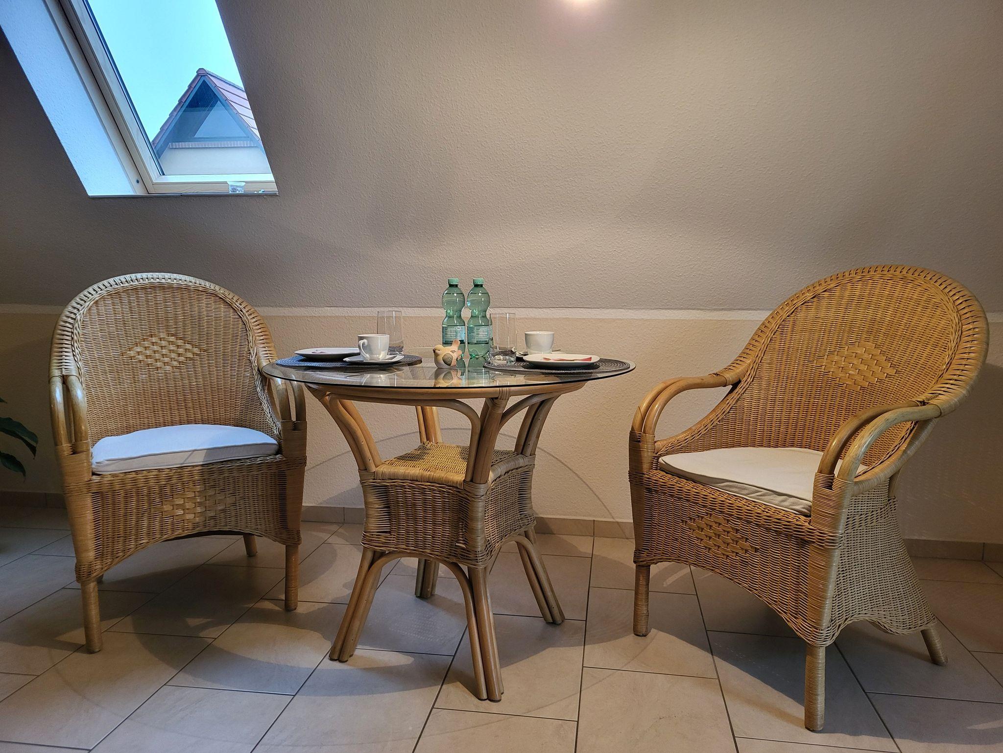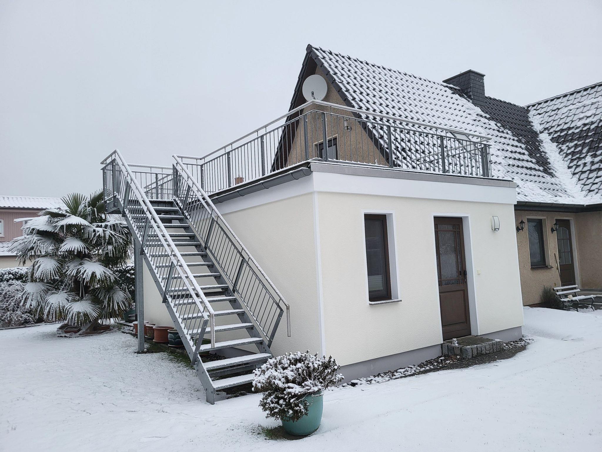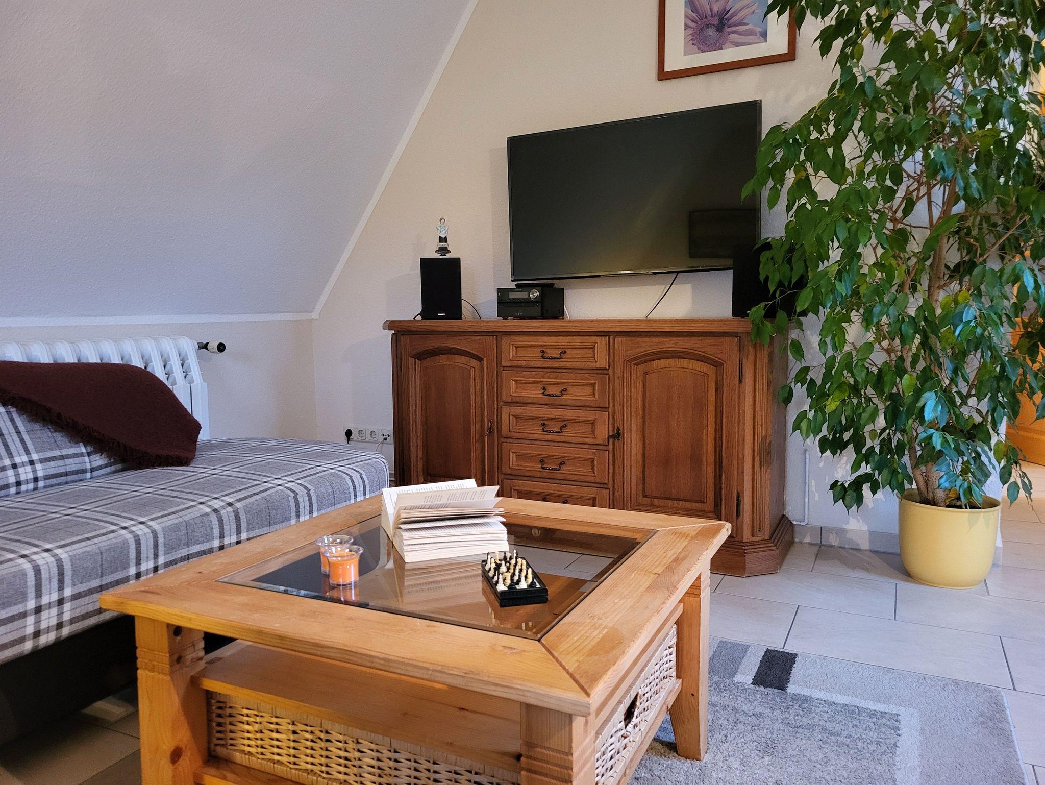 die gemütlich eingerichtete Ferienwohnung im Obergeschoss, gelegen in ruhiger Lage am Ortsrand, mit separatem Eingang und Zugang zur Dach-Terrasse die zum entspannen einlädt. Der feinsandige Strand ist etwa 250 m entfernt. Das Wohnzimmer verfügt über eine gemütliche Couch und SAT- TV, sowie einen Essplatz. Im Schlafzimmer steht ein Doppelbett 1,80 x 2,00 m ( getrennte Matratzen ) bereit. In der Küchenzeile finden Sie ein Cerankochfeld mit 4- Platten, eine Mikrowelle und einen Kühlschrank. Im Bad mit gibt es eine Badewanne. Unsere Wohnung ist eine Nichtraucherwohnung. Das Schlafzimmer und Bad ist mit Mückenschutz ausgestattet. Die Bettwäsche ist inklusive, Handtücher können Sie in der Zimmervermittlung zubuchen für 7,00 pro Person (1 Badetuch, 1 Handtuch). Ein Parkplatz befindet sich auf dem Grundstück.