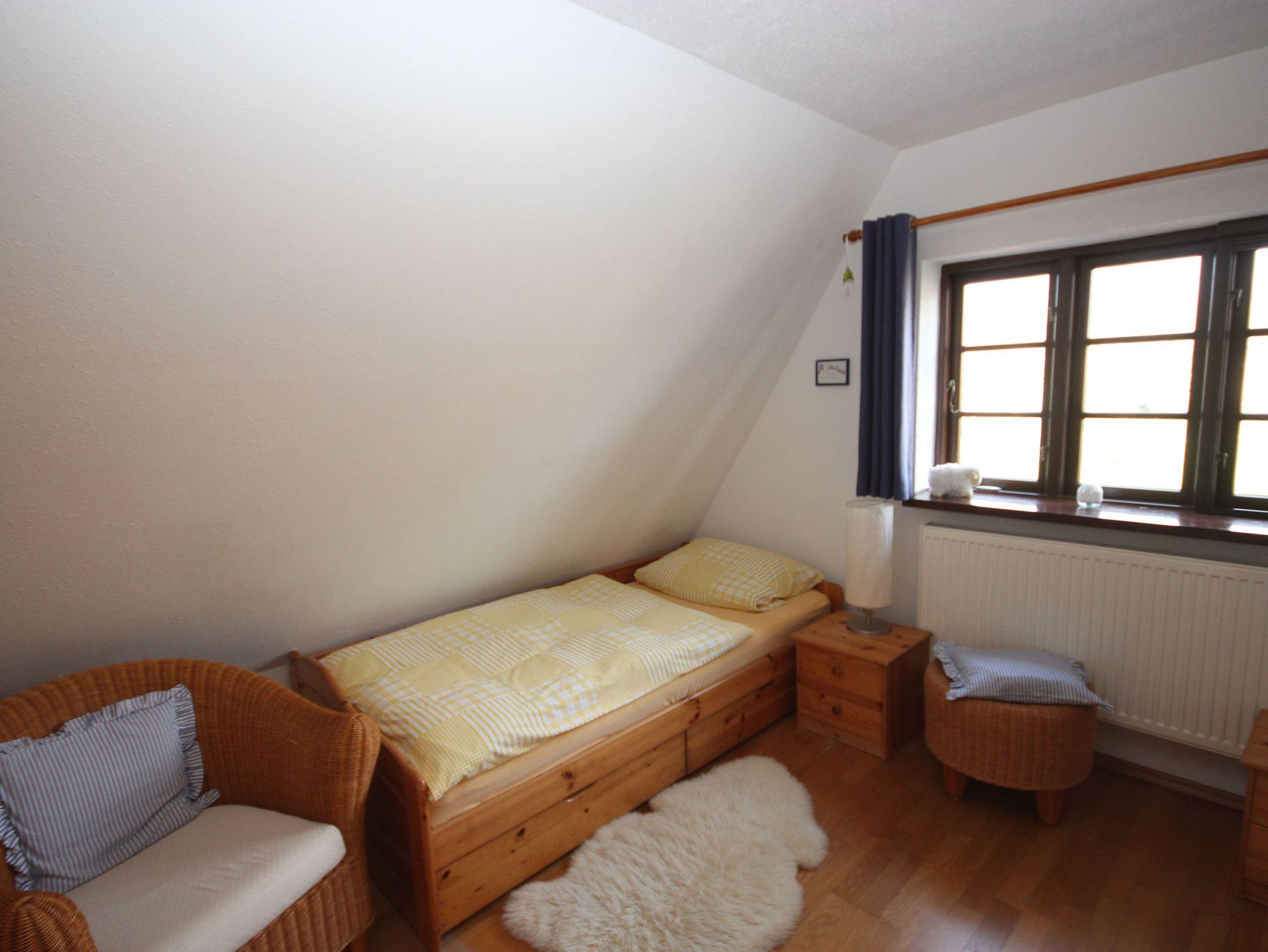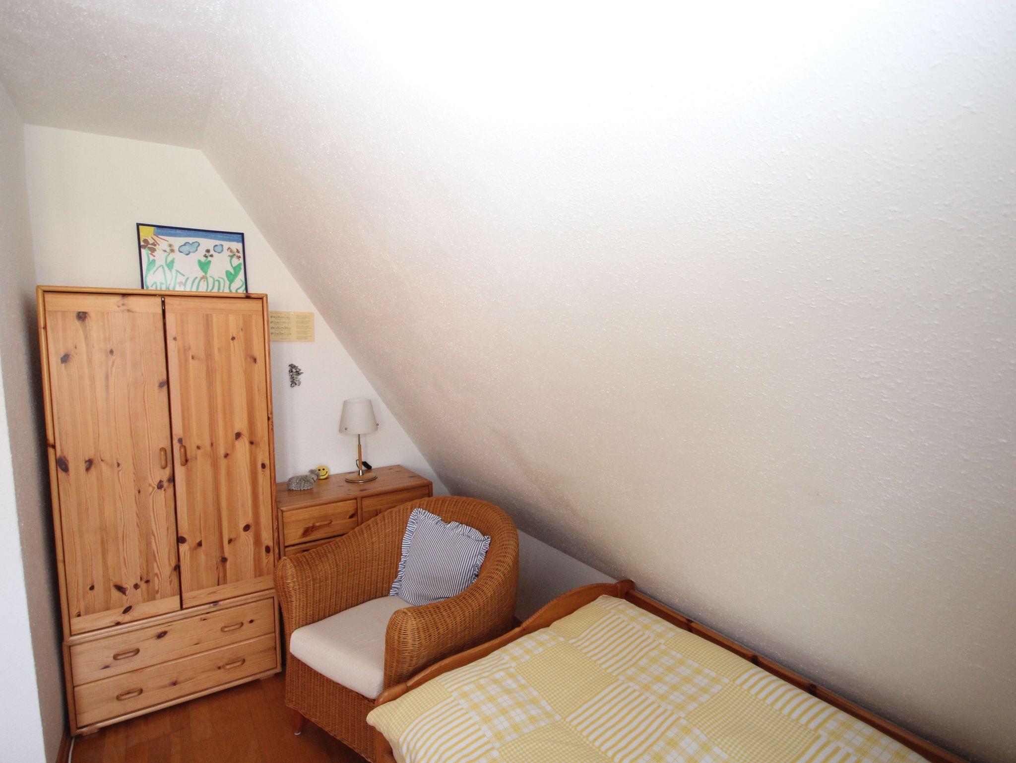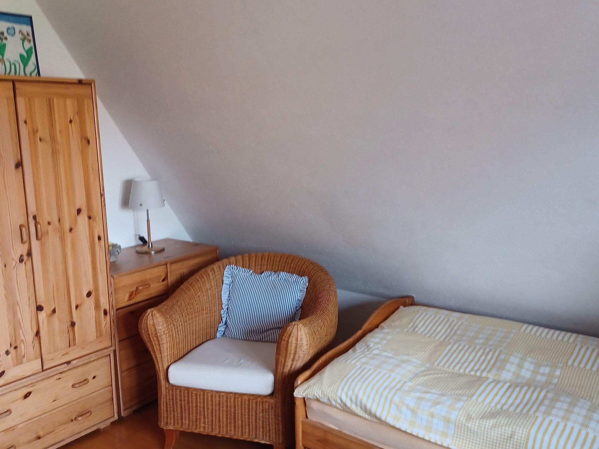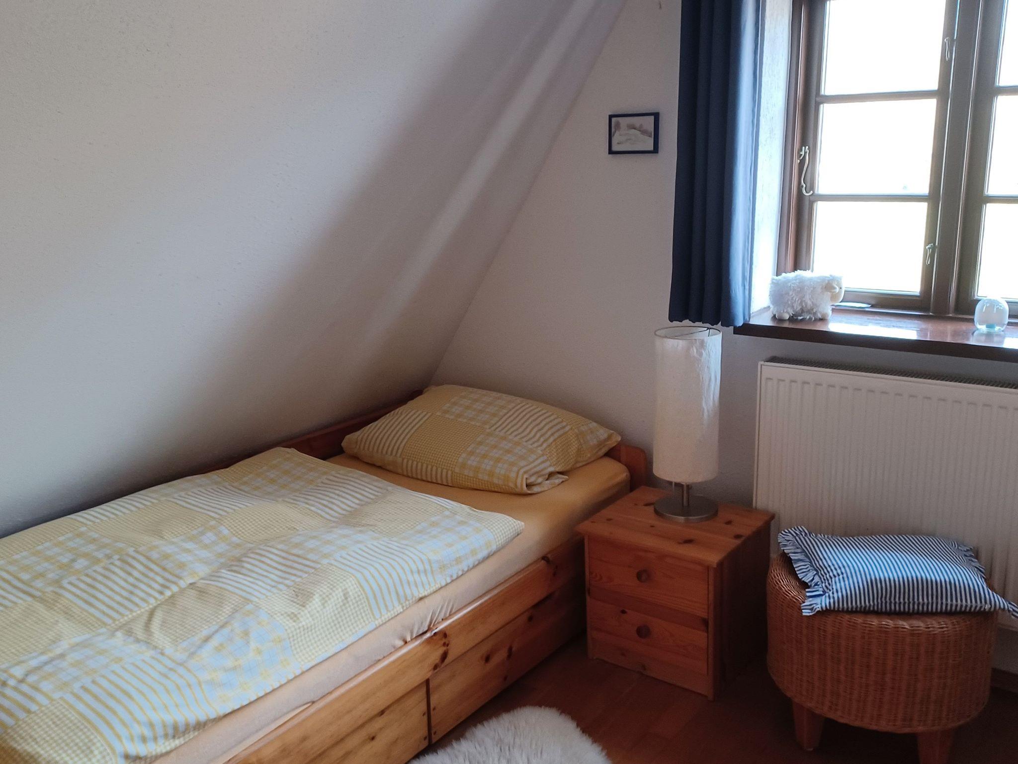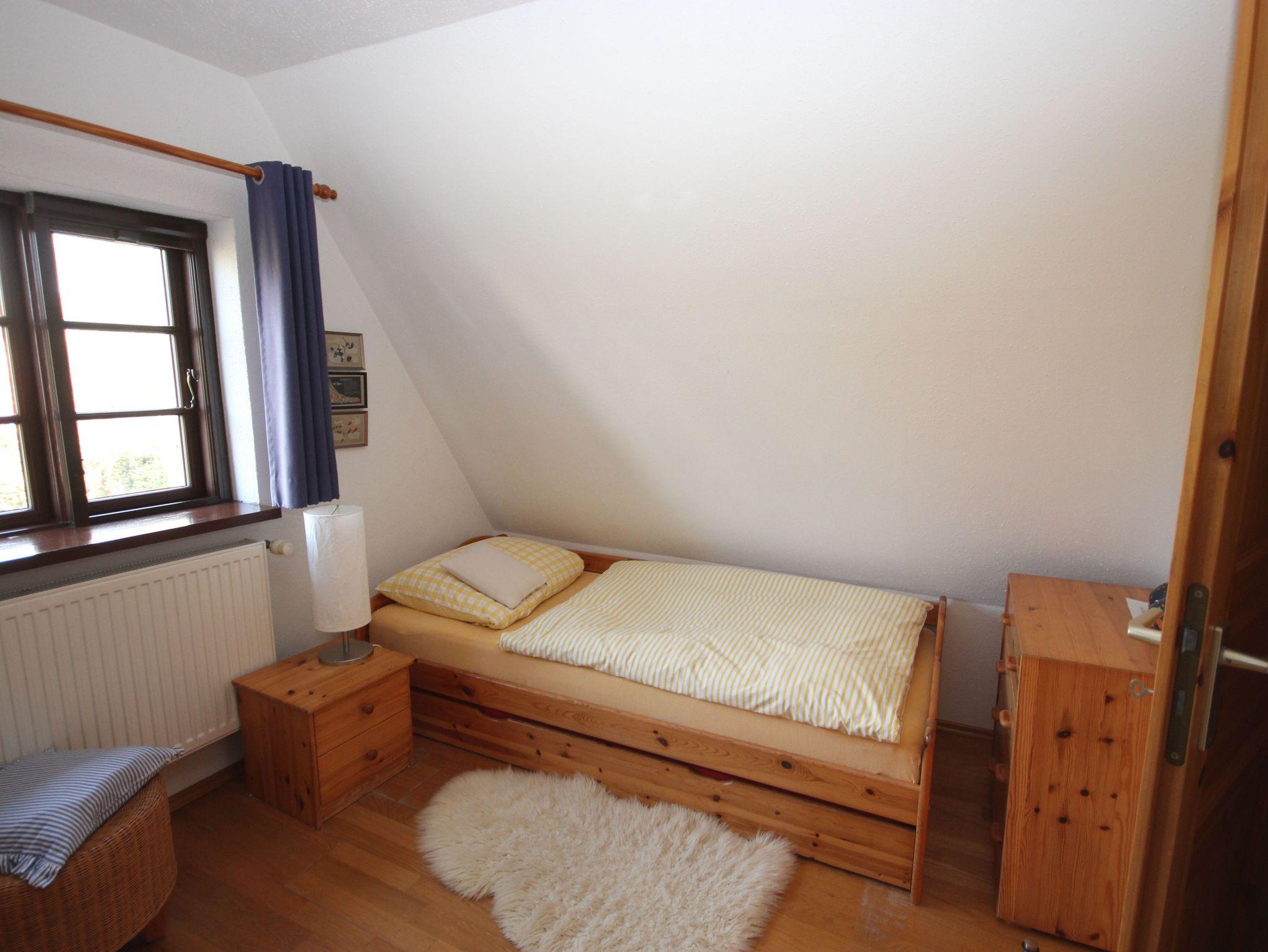Im Kinderzimmer befinden sich 2 getrennt stehende Betten 0,90 x 2,00 m, Kleiderschrank, Kommode und Sitzgelegenheiten. Vom Flur abgehend steht für die Gäste ein zusätzliches WC mit Waschbecken bereit.