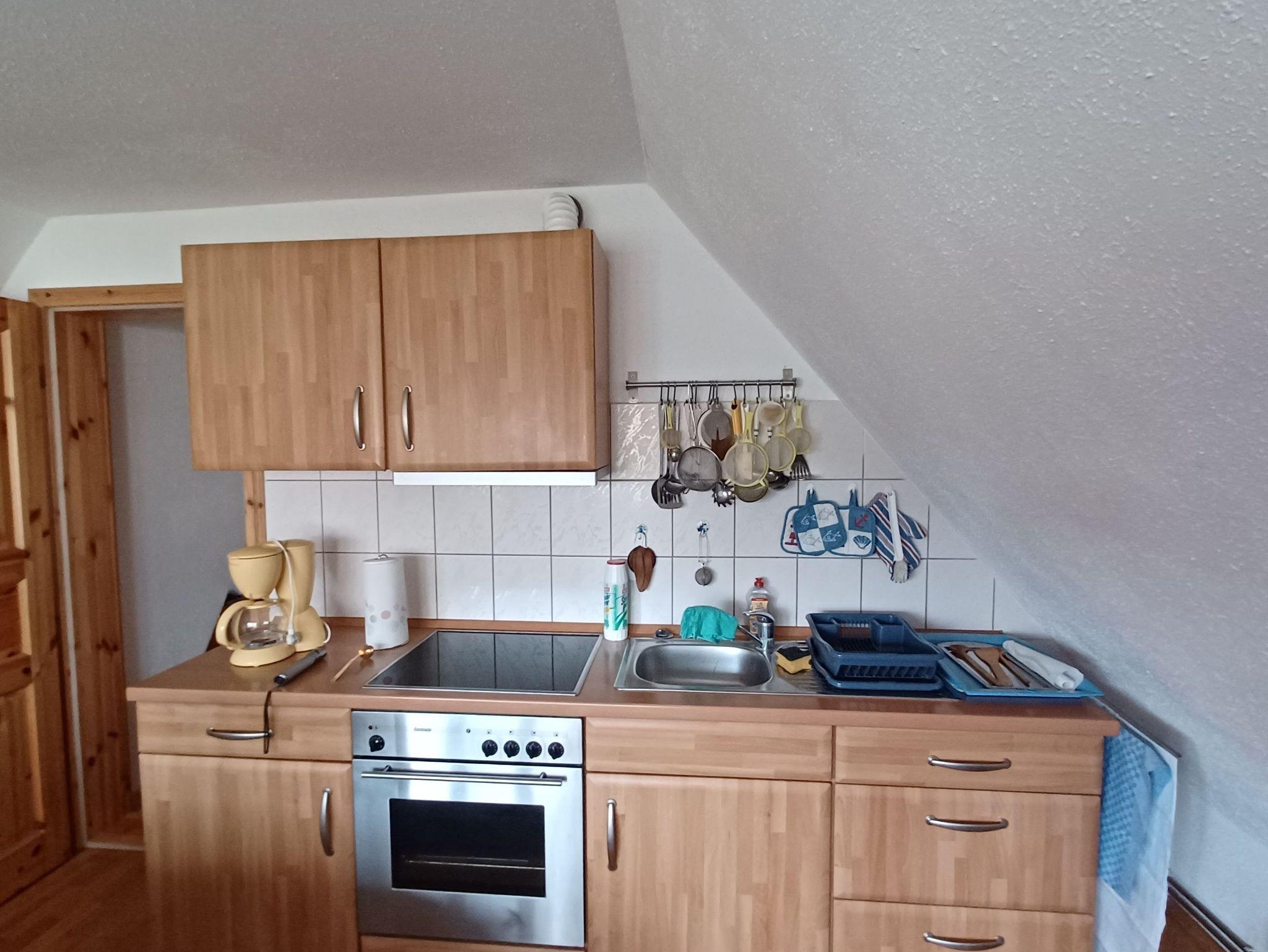 der grüne Weg mit seinen Schifferhäusern und rohrgedeckten Katen liegt in der Nähe des Hafens und der Kirche. Die neogotische Kirche wurde von 1870 bis 1873 errichtet und erlaubt von ihrem Turm einen wunderschönen Rundumblick über das Fischland, den Saaler Bodden und die Ostsee. Die im Hafen liegenden Zeesboote mit Ihren braunen Segeln laden zu einer einzigartigen Bootstour ein, vielleicht genießen Sie aber vornehmlich den feinsandigen Ostseestrand. Der grüne Weg befindet sich in einer ausgesprochenen ruhigen Ortslage.Ein Sitzplatz mit Gartenmöbeln im naturbelassenen Garten lädt zum Tagesausklang ein. Die Wohnung ist perfekt für bis zu 4 Personen geeignet. Die Ferienwohnung befindet sich im Obergeschoss des rohrgedeckten Hauses. Das Wohnzimmer ist ausgestattet mit SAT- TV , Radio sowie einer Sitzecke. Die offen gestaltete Küchenzeile lädt mit dem Essplatz zum gemeinsamen Kochen ein.