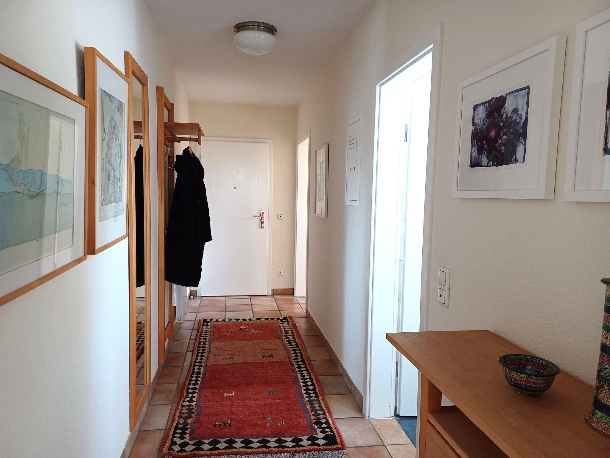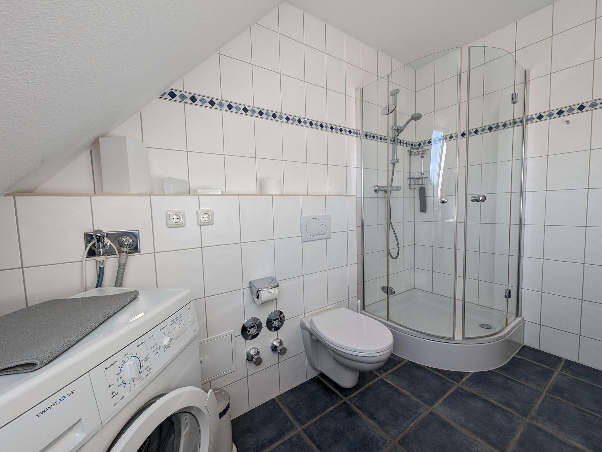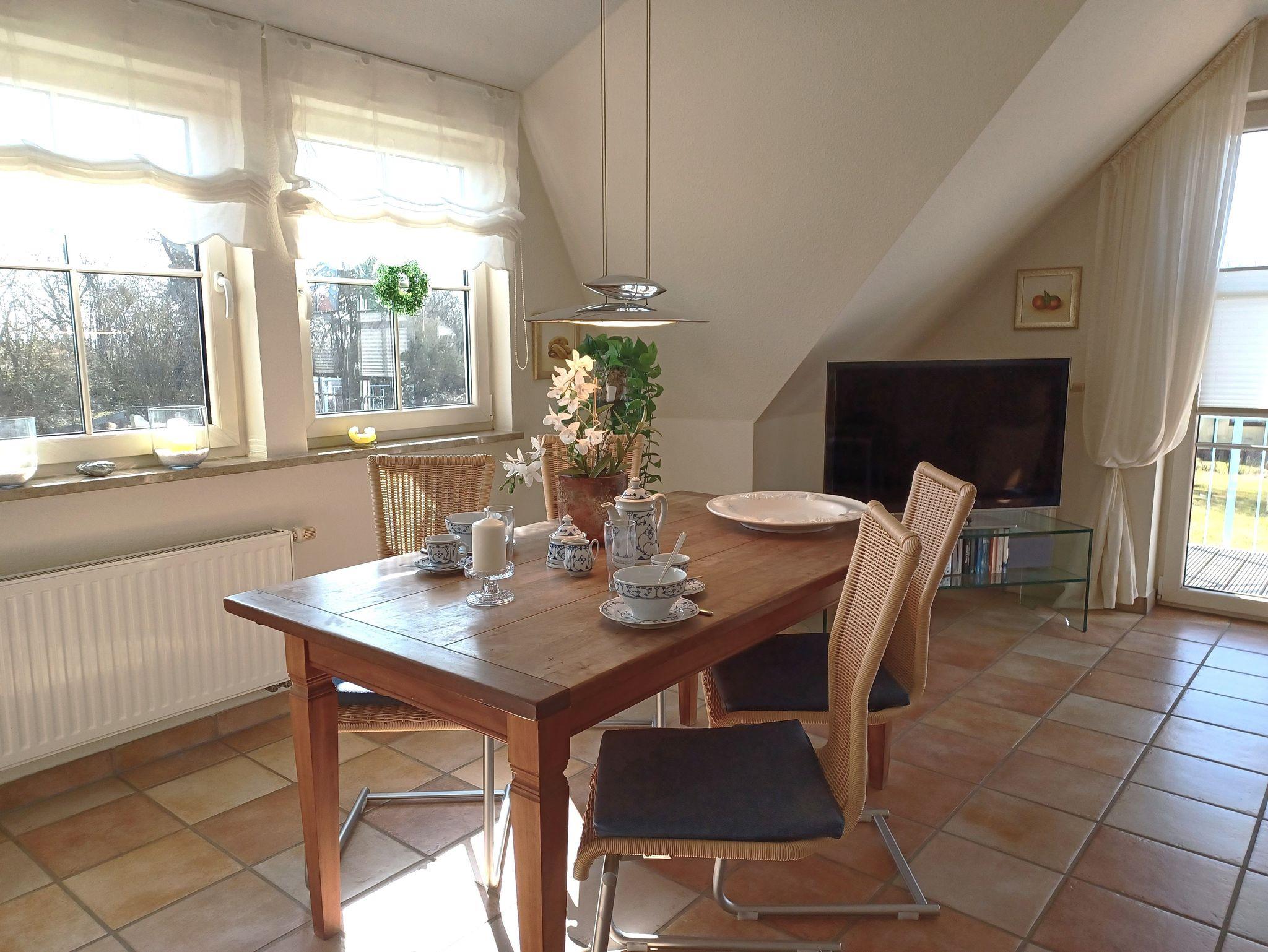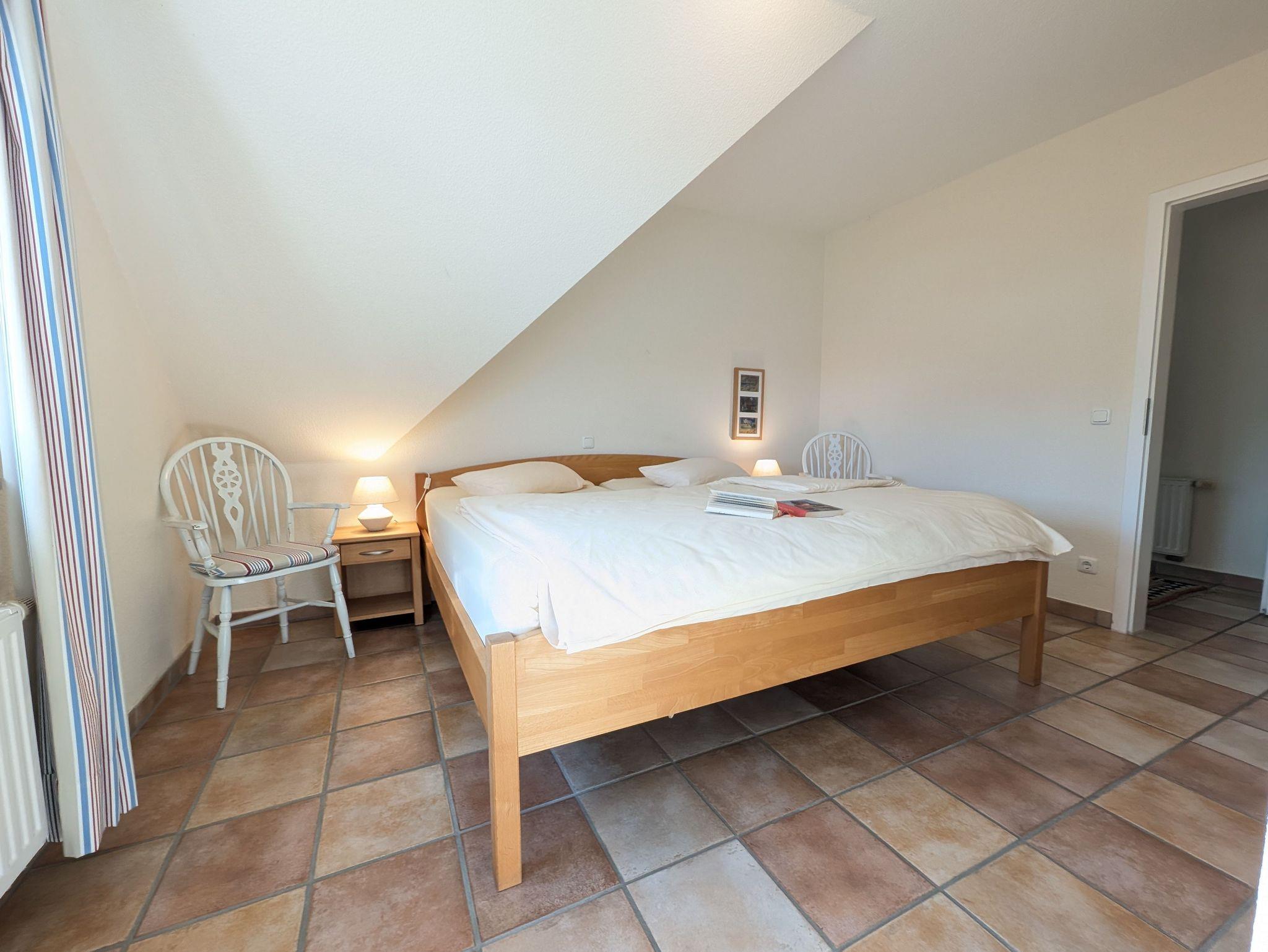 in der Wunderschönen, lichtdurchfluteten Vollkomfortwohnung im Obergeschoss mit Balkon (Süd- West- Ausrichtung) und Boddenblick. Die Ferienwohnung liegt in sehr ruhiger Lage am Ortsrand. Der großzügige Wohnraum ist mit viel Liebe zum Detail ausgestattet worden. Die offene Küchenzeile verfügt über einen Essbereich, einen Geschirrspüler, Cerankochfeld, Backofen, Kaffeemaschine, Toaster und einer weiteren umfangreichen Ausstattung. Im Bad finden Sie eine Dusche und eine Waschmaschine. Das Schlafzimmer wurde mit einem Doppelbett 2,00 x 2,00 m ( getrennte Matratzen ) und einem Kleiderschrank mit viel Stauraum ausgestattet. Der Strand liegt in ca. 10 min. Entfernung.. Für unsere Gäste steht auf dem Grundstück ein abschließbarer Fahrradschuppen zur Verfügung. Die Wohnung wird inclusive Bettwäsche übergeben, Handtücher können Sie in der Zimmervermittlung für 7,00 pro Person (1 Badetuch, 1 Handtuch) zubuchen. Der Parkplatz befindet sich direkt am Grundstück.
