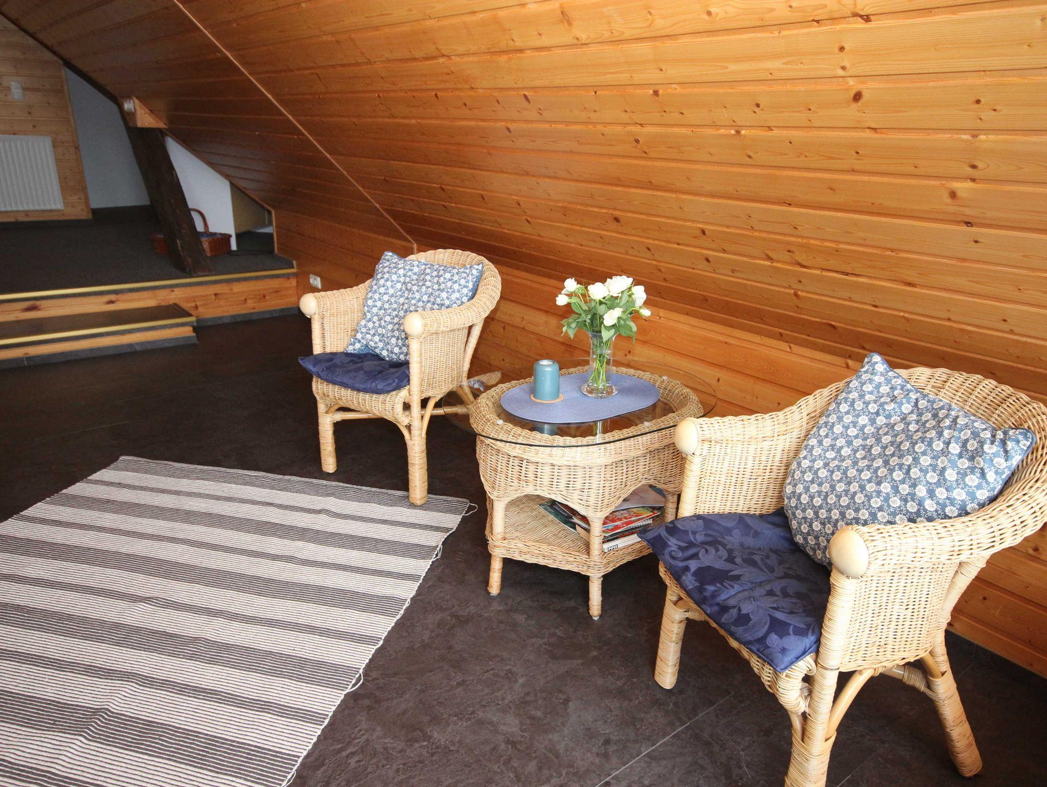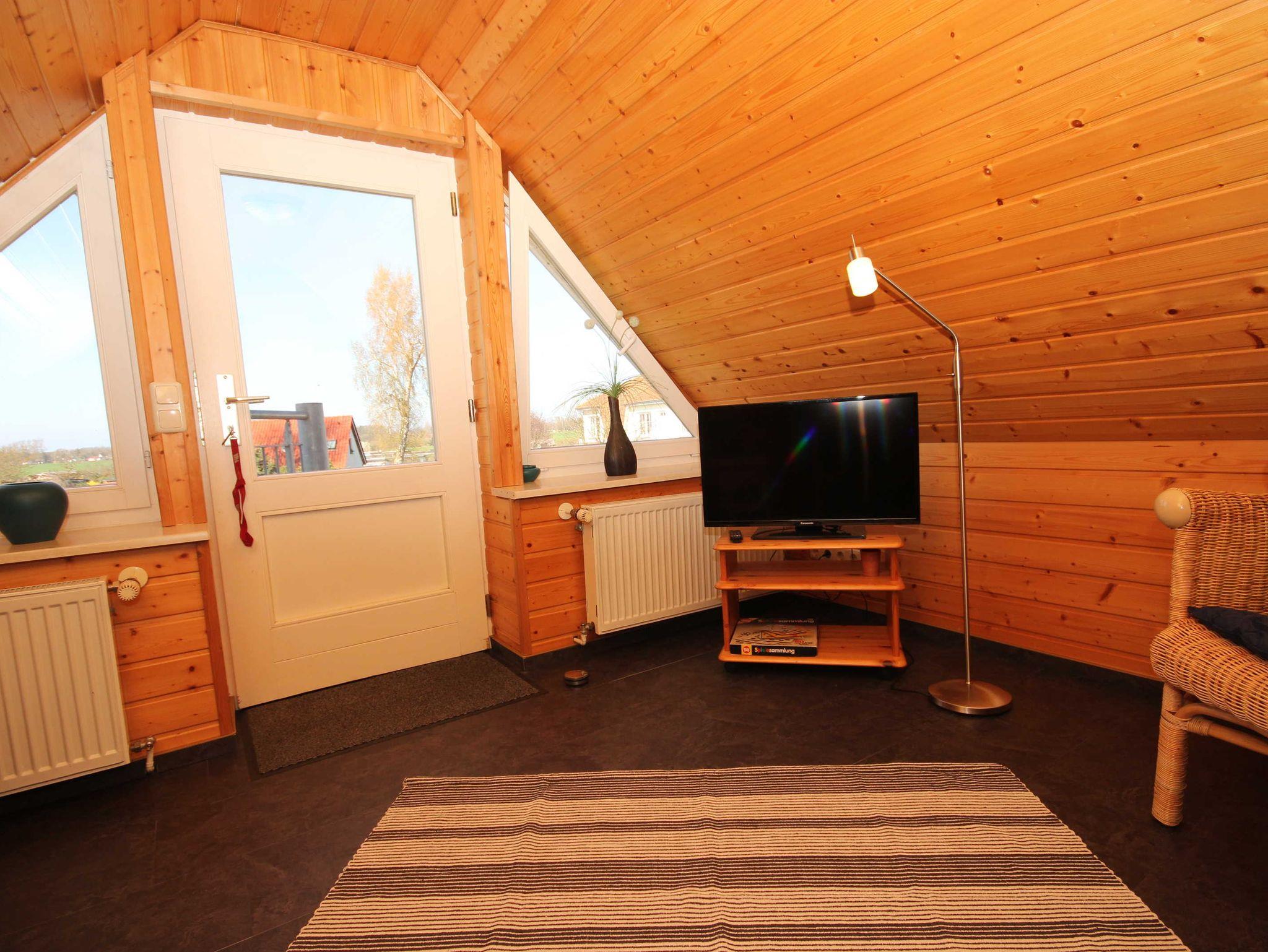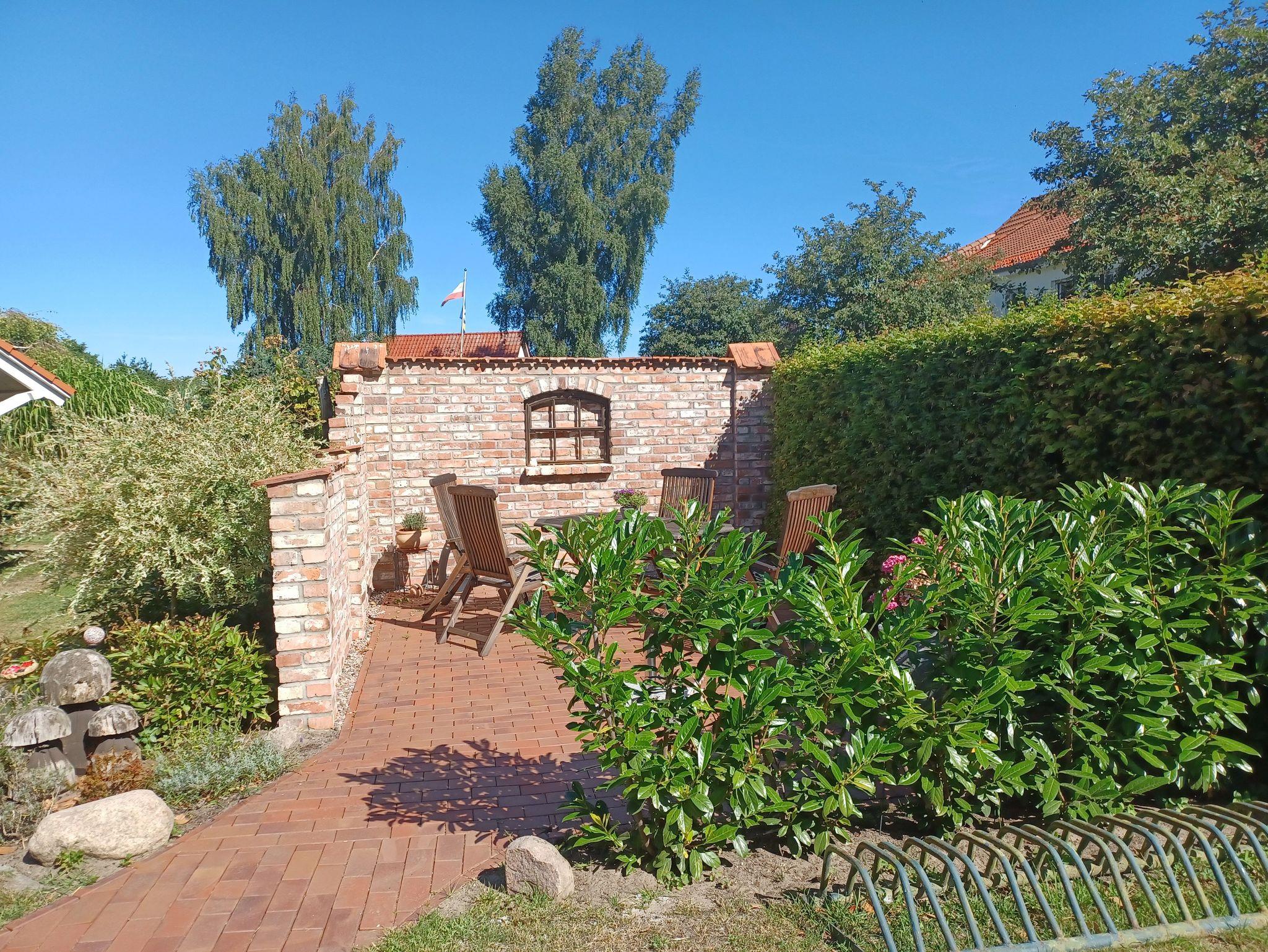 die Ferienwohnung im Obergeschoss mit separatem Eingang, in ruhiger Lage am Ortsrand ist über eine Aussentreppe erreichbar. Der Sitzplatz im Garten auf der separaten Terrasse lädt Sie zum verweilen und entspannen ein. An das offene Wohnzimmer mit kostenlosen WLAN- Gästezugang und SAT-TV, schließt sich die kleine Küchenzeile mit Essplatz an. Die Ferienwohnung verfügt über 2 - 1.Schlafzimmer mit Doppelbett 1,80 x 2,00 m (getrennte Matratzen) und das 2. Schlafzimmer ist über eine Raumspartreppe zur Schlafgalerie mit 2 Einzelbetten erreichbar 0,90 x 2,00 m. Die Wohnung wird inclusive Bettwäsche übergeben, Handtücher können in der Zimmervermittlung für 7,00 pro Person (1 Badetuch, 1 Handtuch) dazugebucht werden. Das Rauchen in der Wohnung ist nicht gestattet. In der abgeschlossenen Garage ist Platz für 1 PKW. Der Strand ist in ca. 15 Gehminuten zu erreichen.