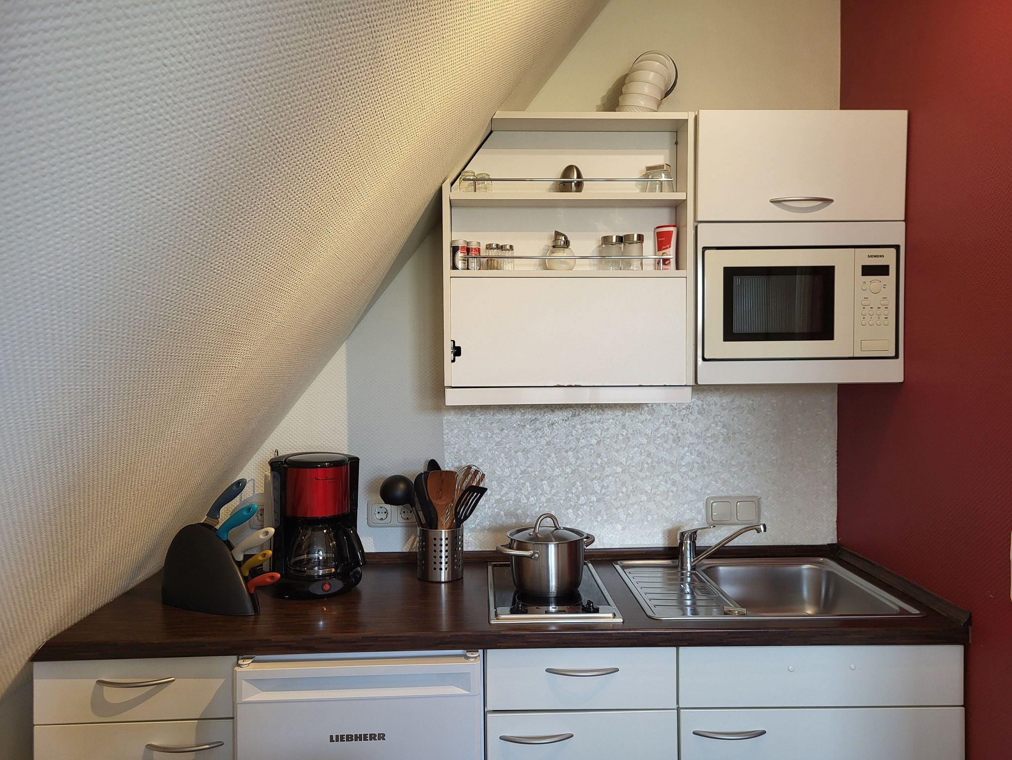 das kleine und gemütliche Appartement Bianca im Obergeschoss erreichen Sie über eine Aussentreppe, und liegt in der Nähe der Ostsee- Kurklinik. Die Terrasse befindet sich unten und ist mit einem Sitzplatz ausgestattet. Den feinsandigen Strand erreichen Sie in ca. 250 m. Ein Parkplatz zum Appartement befindet sich direkt auf dem Grundstück.Der Wohn- Schlafraum ist mit einem Doppelbett 1,80 x 2,00 m (getrennte Matratzen), einer kleinen Sitzgruppe und mit SAT- TV ausgestattet. Die kleine Küchenzeile mit Mikrowelle, bietet mit dem kleinen Essplatz Raum für 2 Personen.Das Bad ist ausgestattet mit einer Dusche. Das Appartement wird mit Bettwäsche übergeben, Handtücher können in der Zimmervermittlung für 7,00 pro Person hinzugebucht werden (1 Badetuch, 1 Handtuch).
