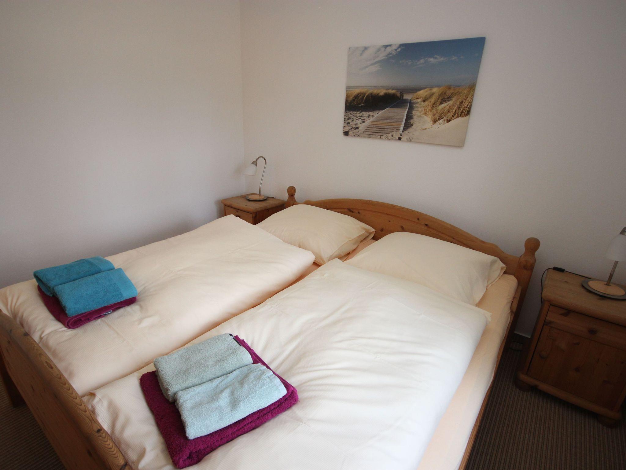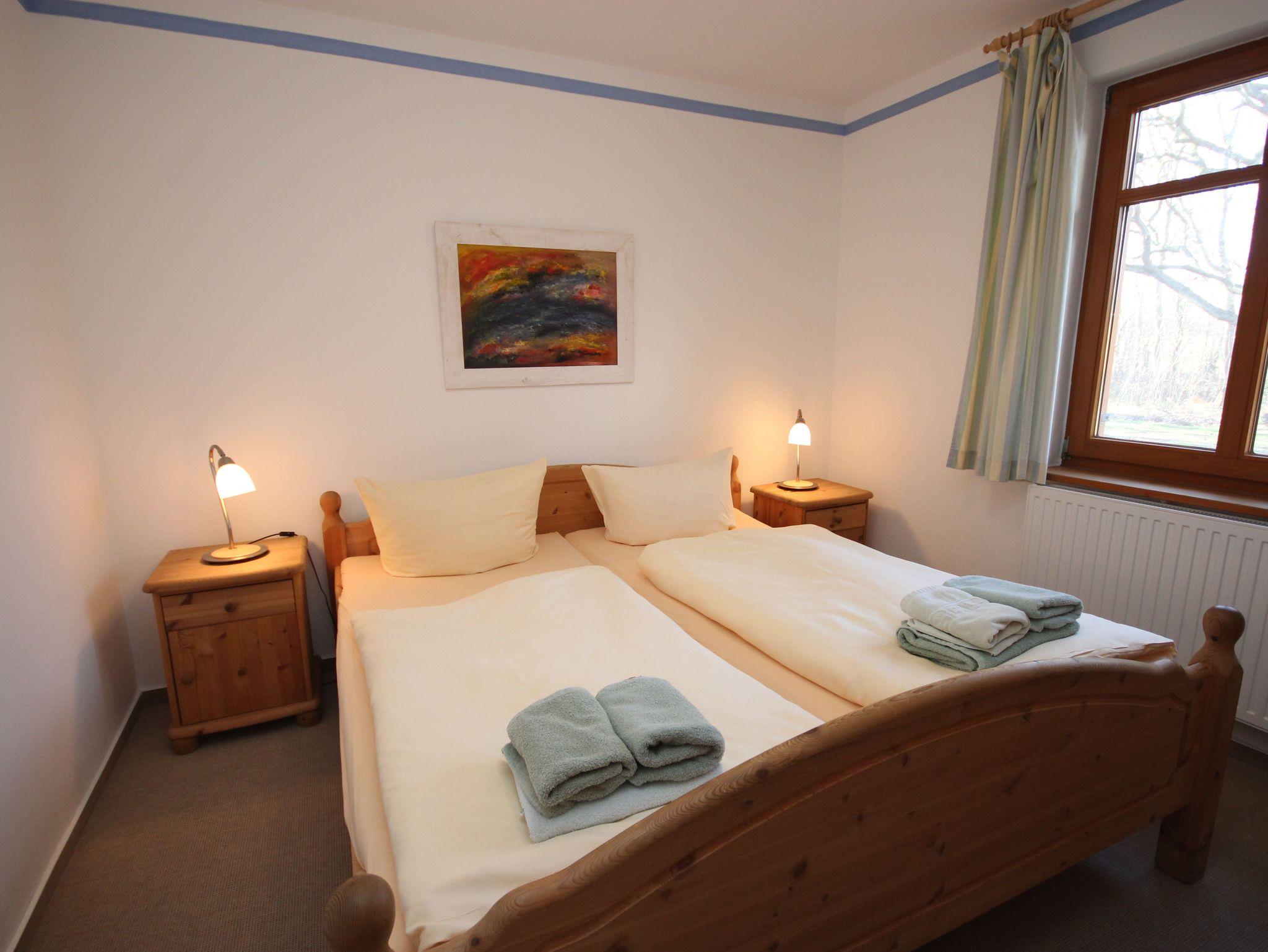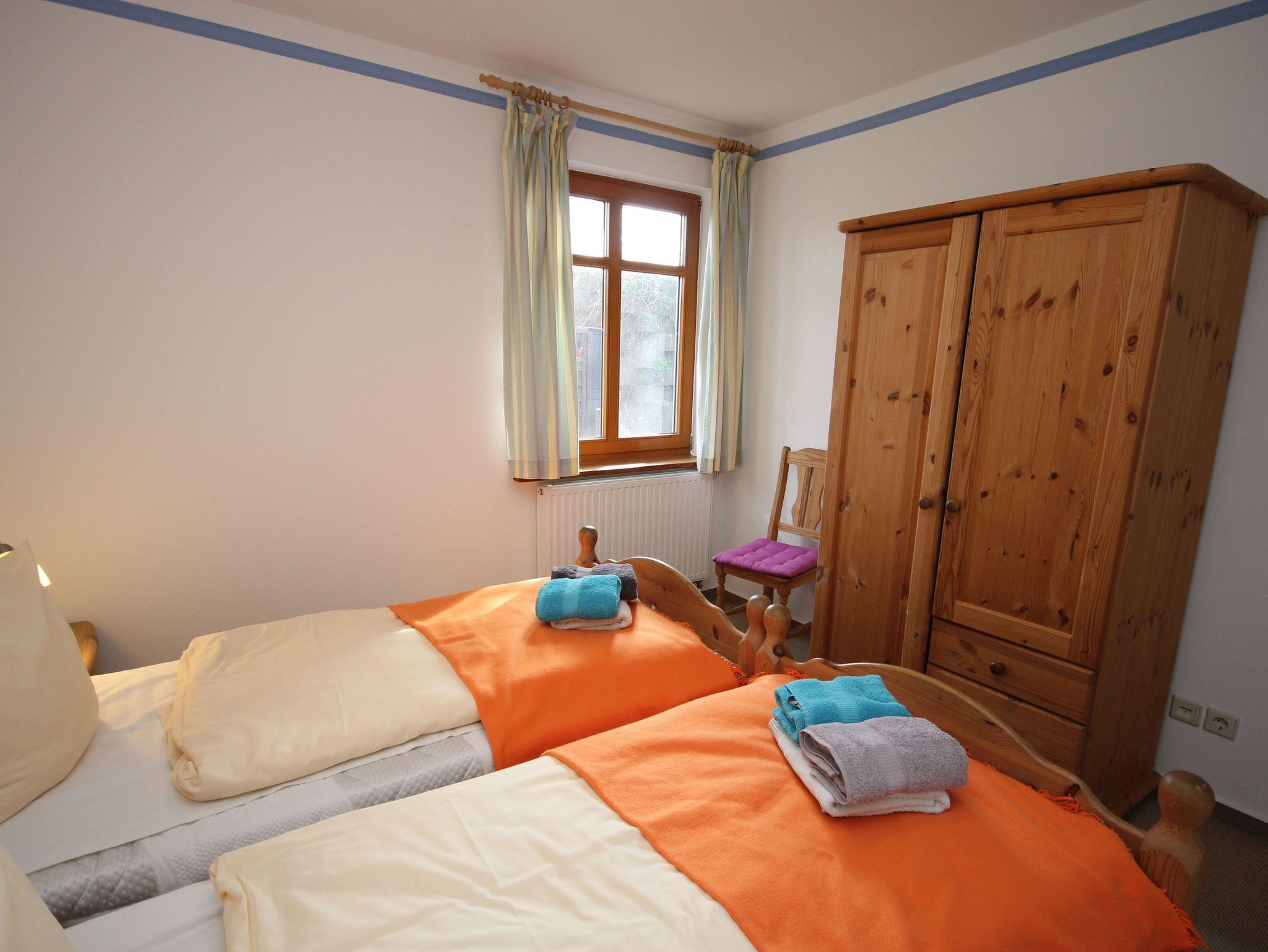 Die Ferienwohnung 1 befindet sich im Erdgeschoss und verfügt über 2 Schlafzimmer mit Doppelbetten (jeweils 1,80 x 2,00 m mit getrennten Matratzen). Die Bettwäsche und Handtücher sind für Sie inklusive.