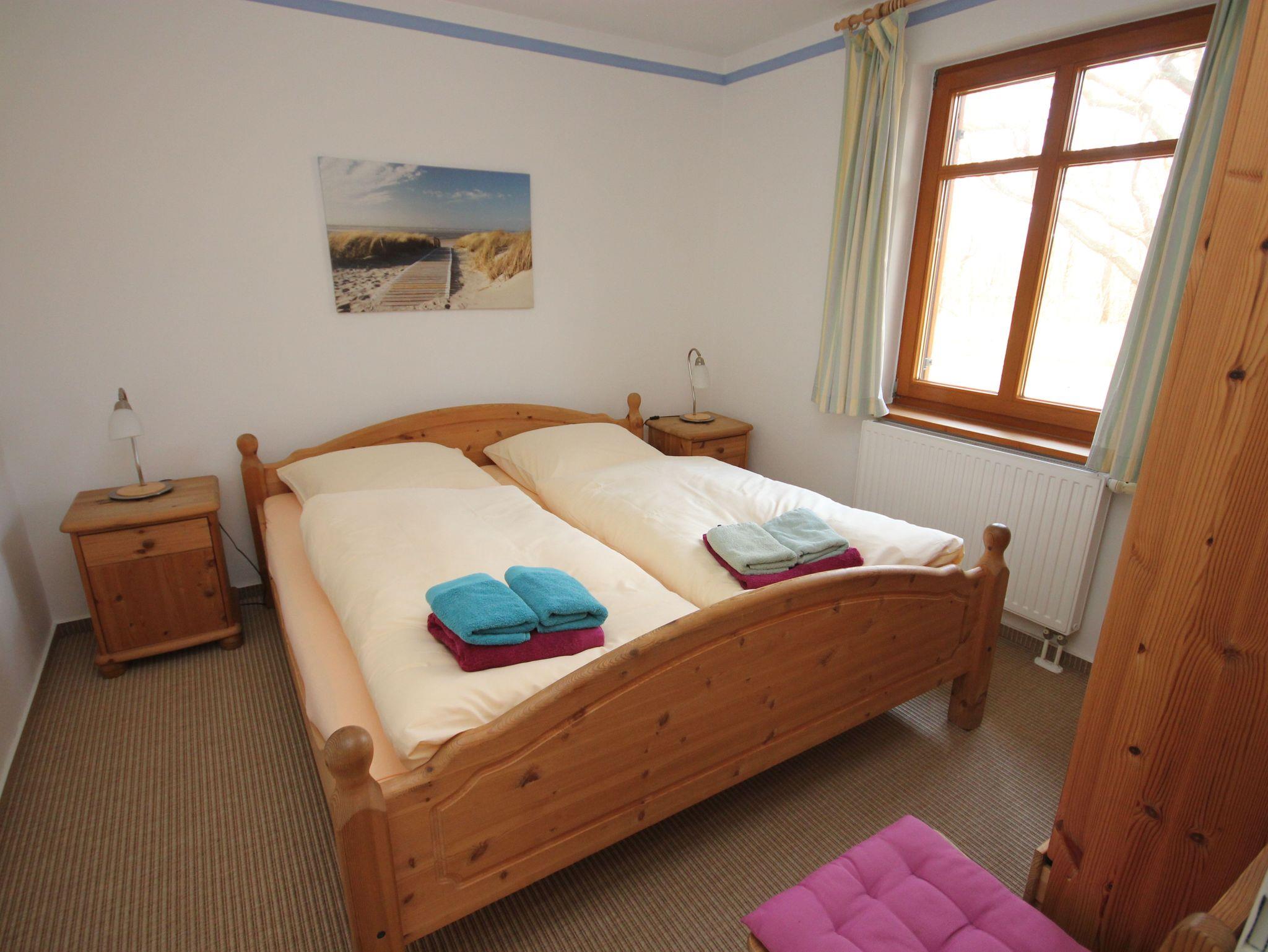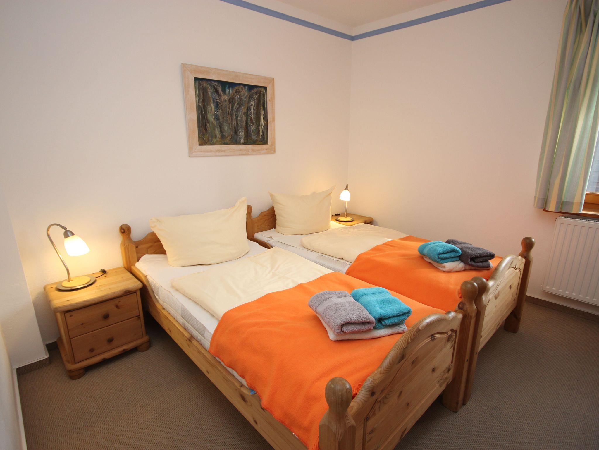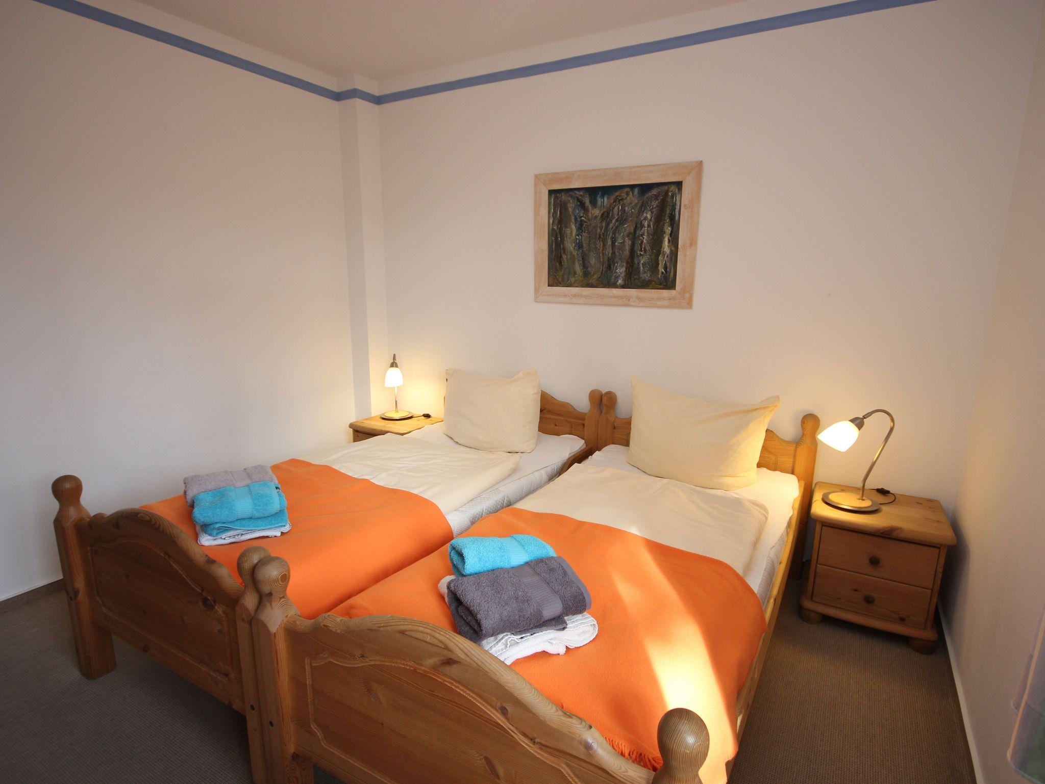 Die Ferienwohnung 1 befindet sich im Erdgeschoss und verfügt über 2 Schlafzimmer mit Doppelbetten (jeweils 1,80 x 2,00 m mit getrennten Matratzen). Die Bettwäsche und Handtücher sind für Sie inklusive.