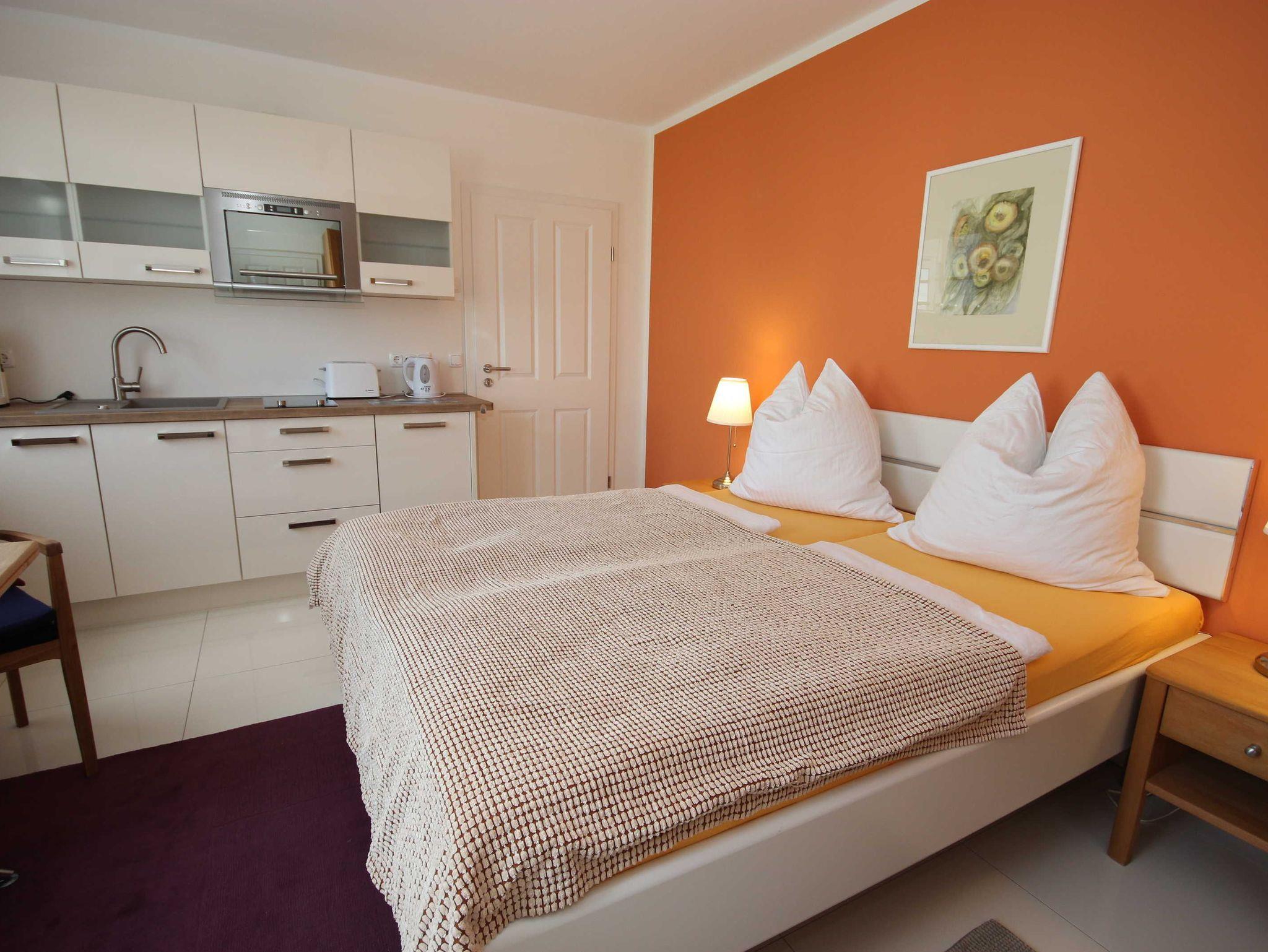 das neue moderne und gemütliche eingerichtete Appartement im Erdgeschoss hat einen separaten Eingang. Das kleine Appartement eignet sich perfekt für bis zu 2 Personen. eine kleine Terrasse lädt zum verweilen ein.Den feinsandigen Strand erreichen Sie fussläufig in ca. 300 m. Ein Parkplatz befindet sich direkt auf dem Grundstück.Der Wohn- Schlafraum ist mit einer Fußbodenheizung, Doppelbett 1,80 x 2,00 m (getrennte Matratze) und Insektenschutzrollo ausgestattet. Die kleine Küchenzeile bietet alles für einen schönen Urlaub, Mikrowelle, Geschirrspüler und umfangreiche Küchenutensilien. Die Bettwäsche ist inclusive,, Handtücher können in der Zimmervermittlung für 7,00 € pro Person (1 Badetuch, 1 Handtuch) zugebucht werden. Es steht ein WLAN Anschluss zur Verfügung. Für die Fahrräder gibt es einen Fahrradunterstand.