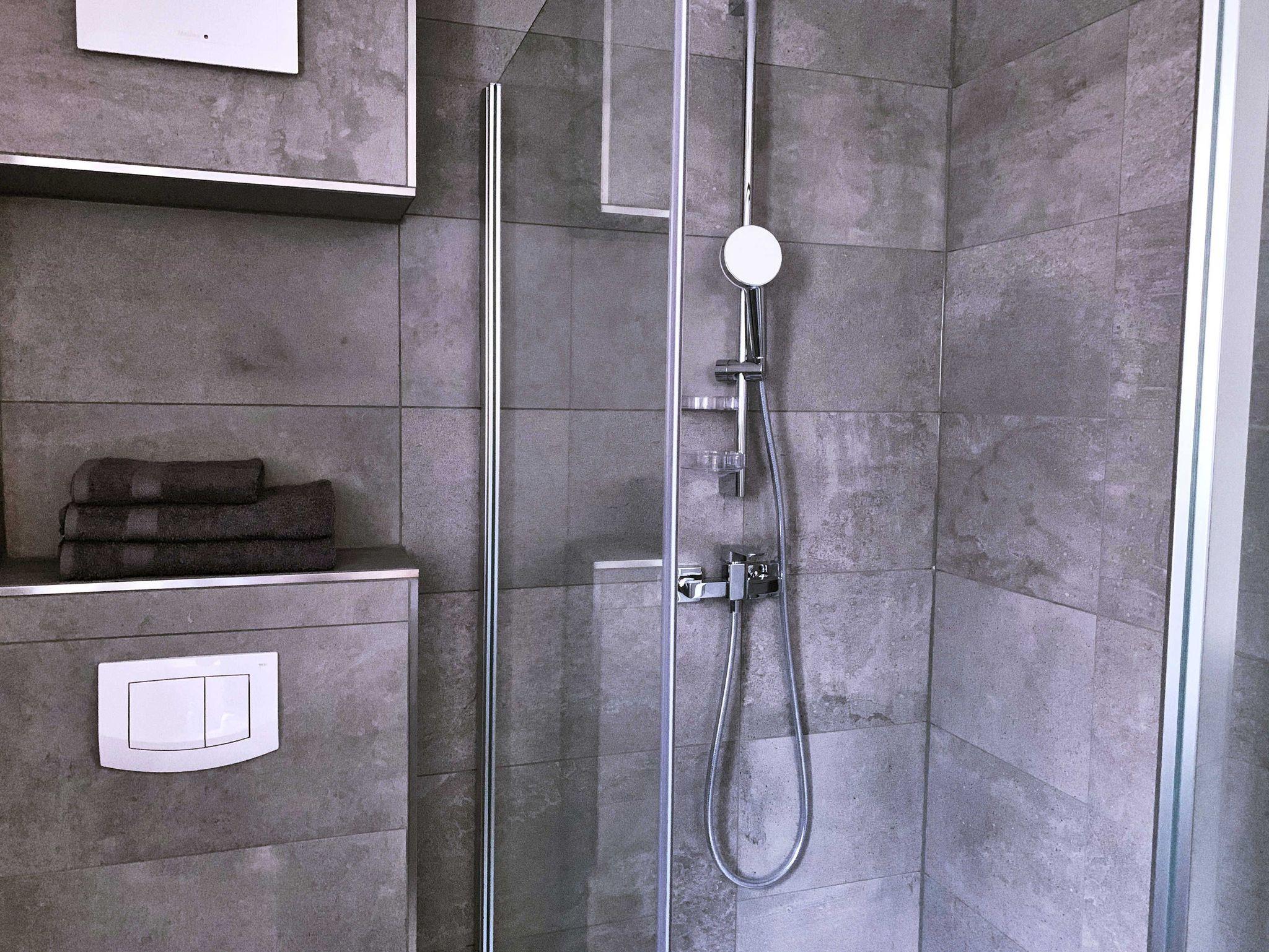 Das Bad, mit der ebenerdiger Dusche sowie Haarföhn, runden die Einrichtung ab.