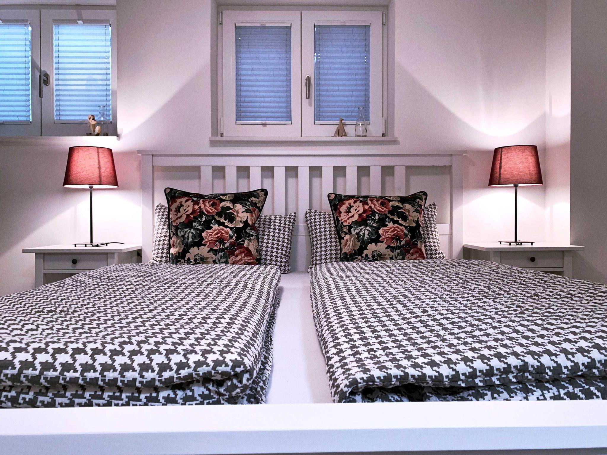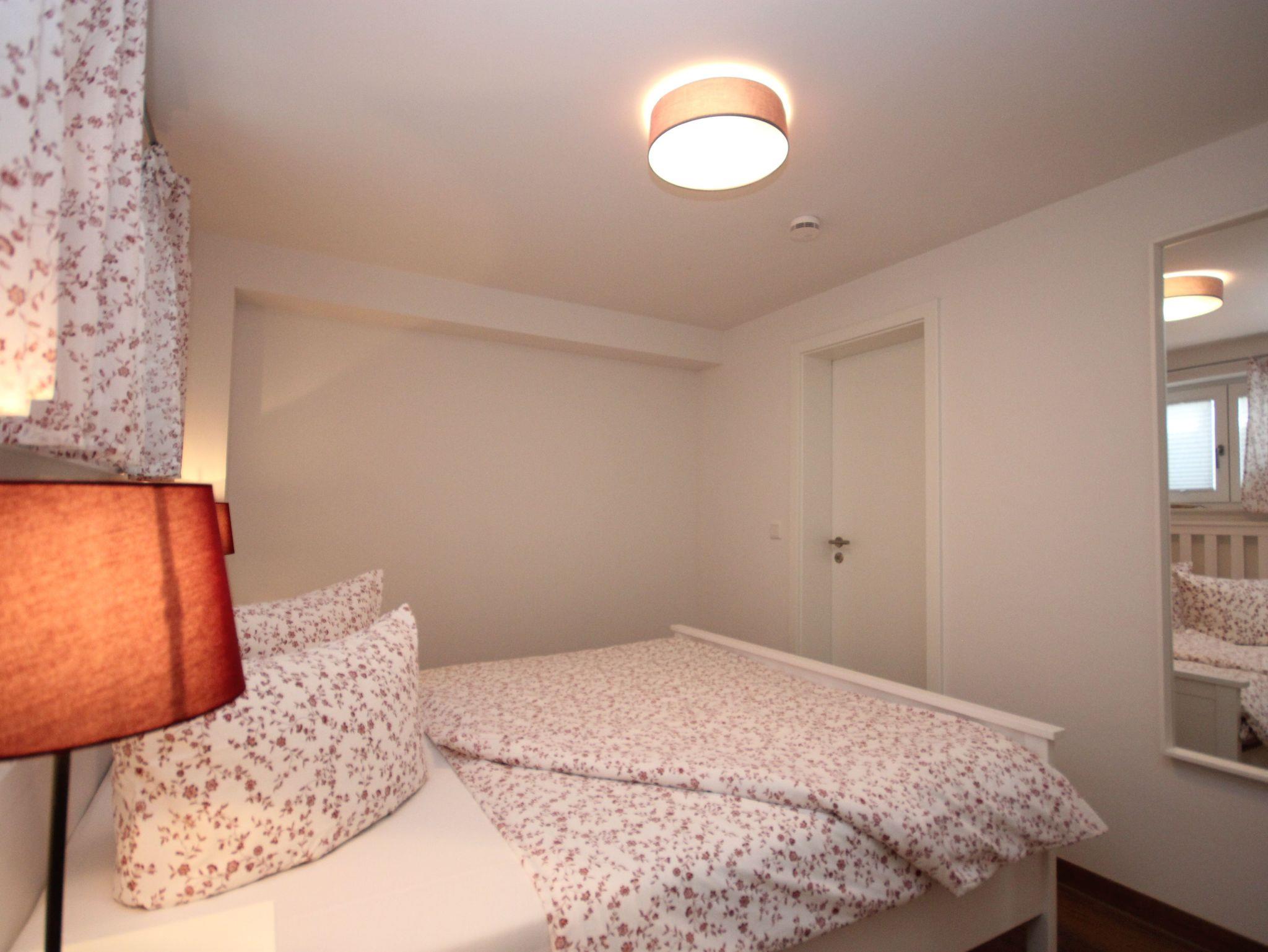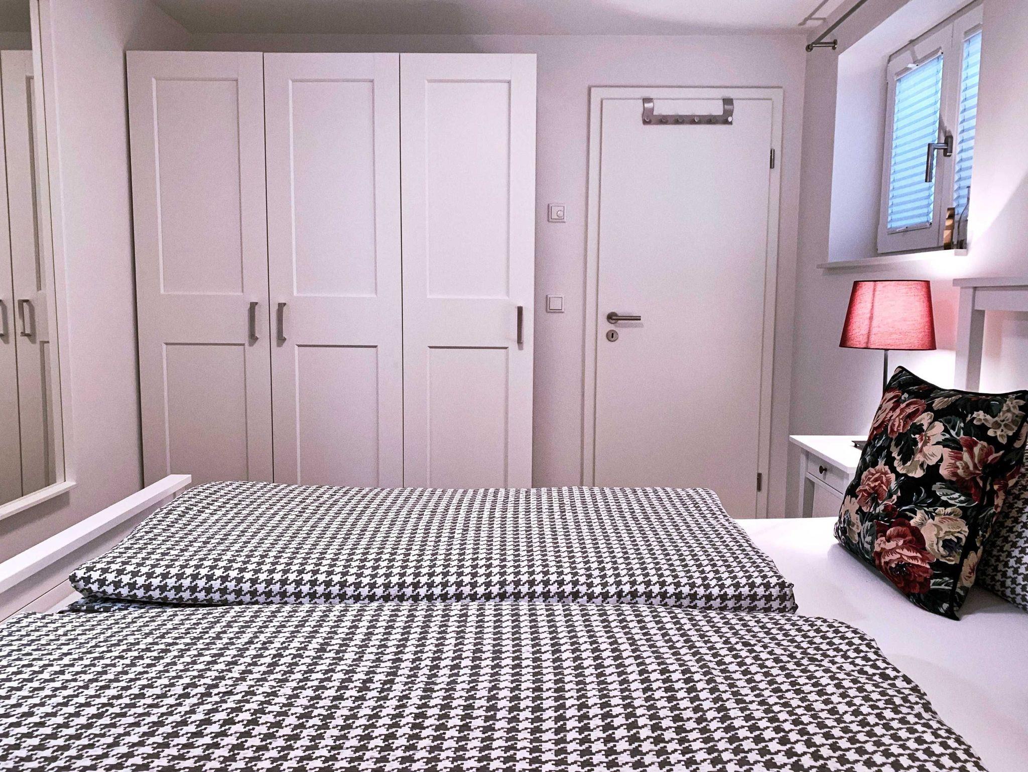 Der Schlafraum besitzt ein Doppelbett (1,60 x 2,00 m) mit getrennten Matratzen und einem Topper sowie einem Kleiderschrank mit genügend Stauraum.