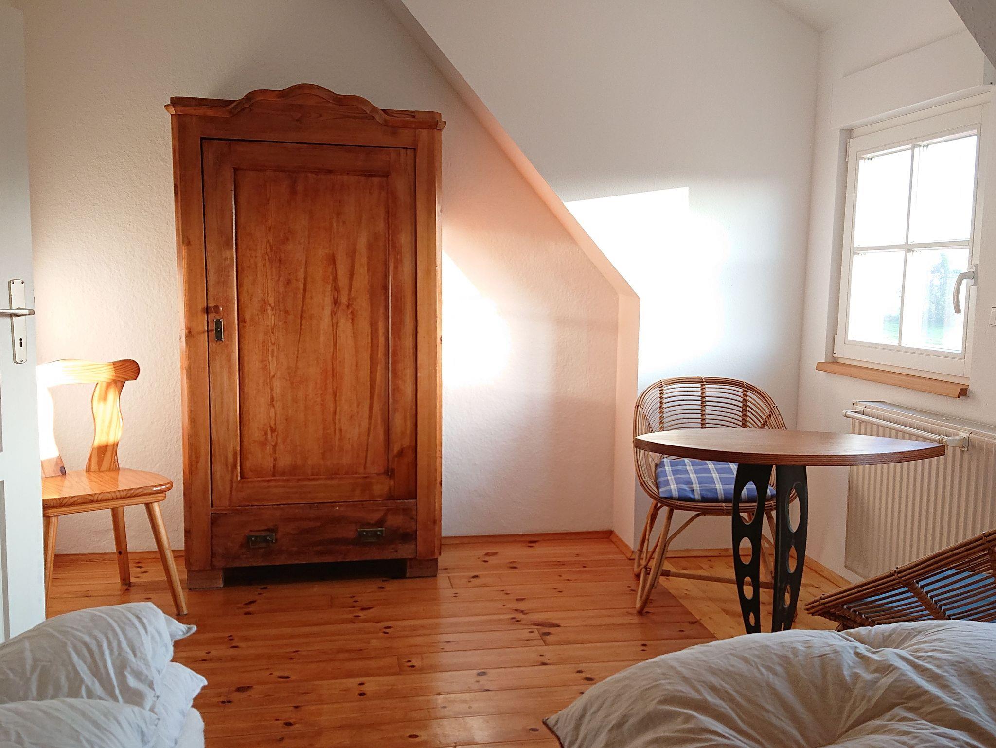 Ferienhaus Ostseebad Wustrow, Fischland/Darss, ruhig 2-5 Per Gemütlich ausgestattetes geräumiges Ferienhaus (4 Zimmer), ruhige Ortsrandlage, (separates Grundstück) z. T. freier Blick auf Felder + Bodden, feinkörniger Sandstrand (Ostsee), ca. 3 Minuten zum Hafen, 520 qm Garten, individuell voll ausgestattes Wohnhaus (Doppelhaus) über 80 qm mit 4 Zimmern und Küche, Gas-Zentral-Heizung, zum Teil Fußbodenheizung, gemütlich mit alten oder massiven Holz-Möbeln eingerichtet, individuell für den Eigenbedarf nach unserem Geschmack zusammengestellt (siehe Fotos, keine sterile Einheitsausstattung vom Bauträger) unten: Wohn- und Lesezimmer mit Doppeltür (Schlaf-Sofa: Ligne Roset Multy), Sat-TV, CD-Player, Radio; Küche mit Sitzecke, reichhaltige Küchenausstattung, Spülmaschine, Herd mit Backröhre, Mikro-Welle, Kühl-Gefrier-Kombination etc., Gäste WC 1. Stock: 2 Schlafzimmer (Doppelbett: 160x200, 2 Betten: 90x200), Kinderbett;Hochstuhl, Bad/WC (Dusche), 520 qm Grundstück (Garten, reifes Obst darf natürlich geerntet werden), PKW-Stellplatz, Gartenmöbel, einfache Fahrräder, verschiedene Spiel-, Strand- und Sportgeräte in gebrauchtem Zustand.