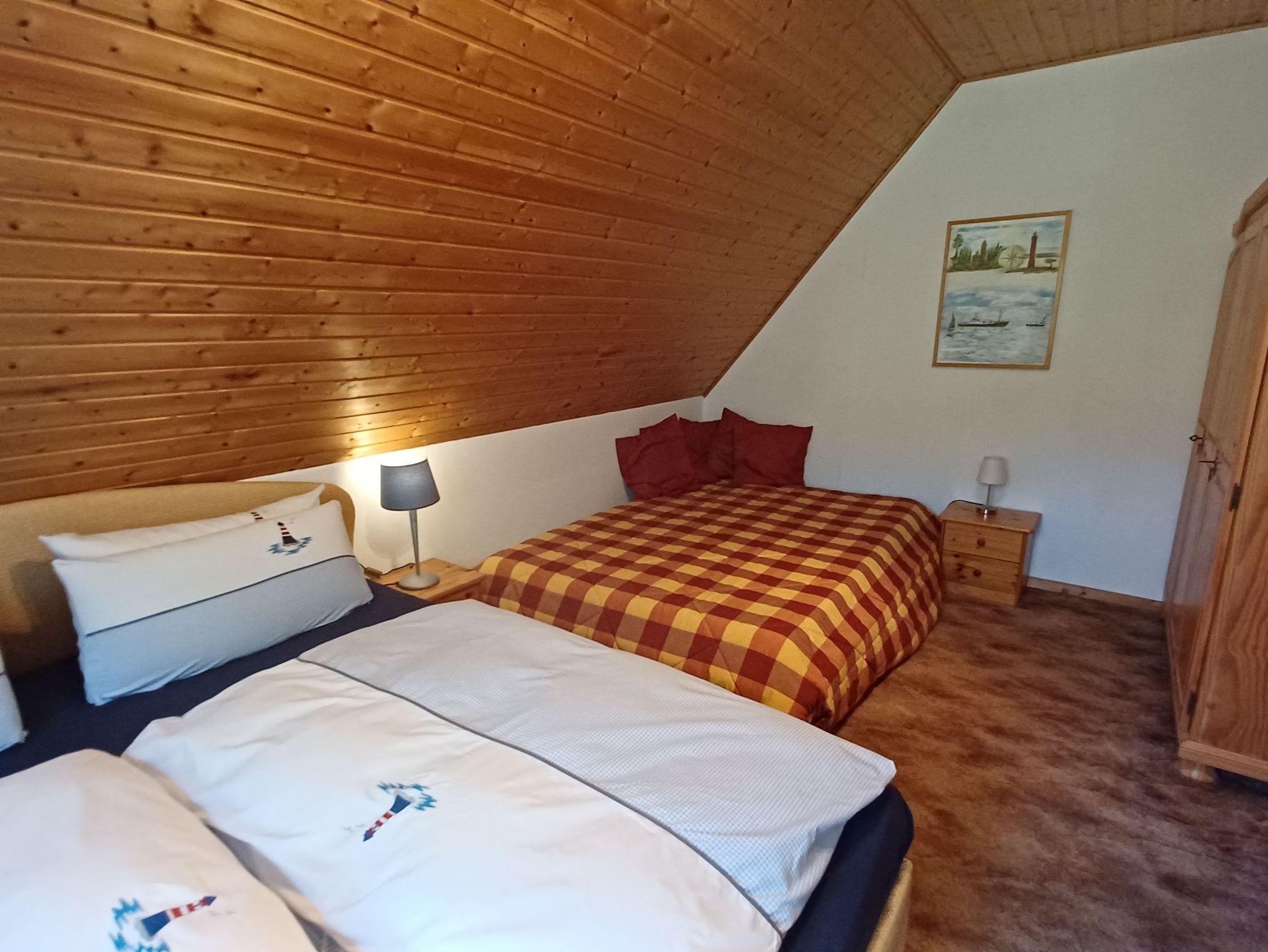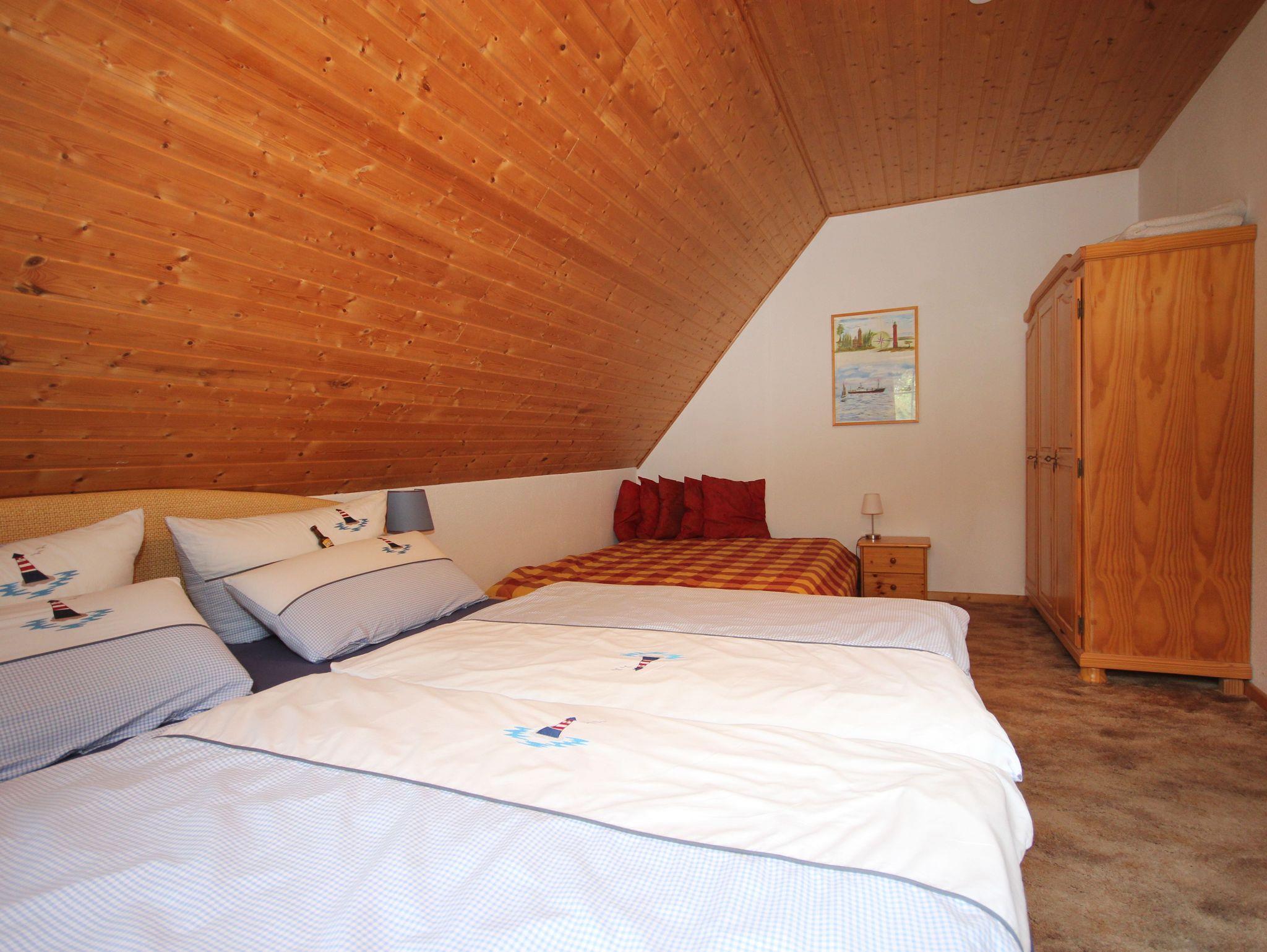 Das Schlafzimmer hat ein Doppelbett 1,80 x 2,00 m ( getrennte Matratzen ) und ein Einzelbett (1,40 x 2,00 m) für eine Aufbettung. Die Ferienwohnung wird mit Bettwäsche und Handtücher übergeben (Erstausstattung - wöchentlicher Wechsel gegen Aufpreis möglich). Die Wohnung verfügt über einen WLAN- Anschluss und ist eine Nichtraucherwohnungen.