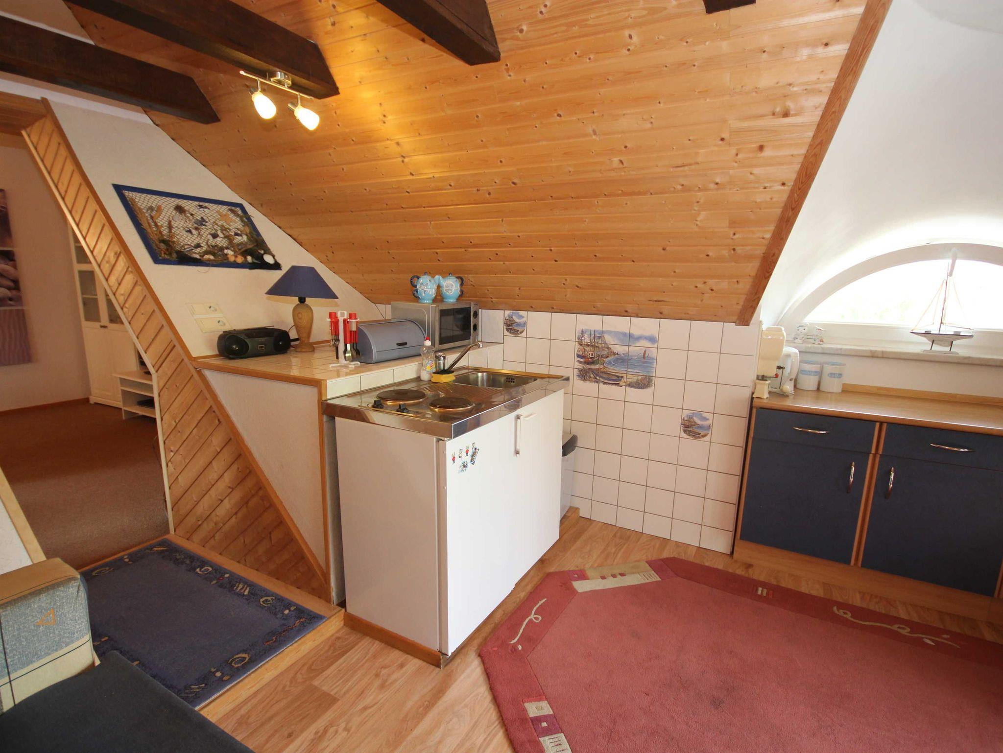 In der Wohnküche finden Sie eine Miniküche, Mikrowelle und Kühlschrank, sowie eine umfangreiche Küchenausstattung.