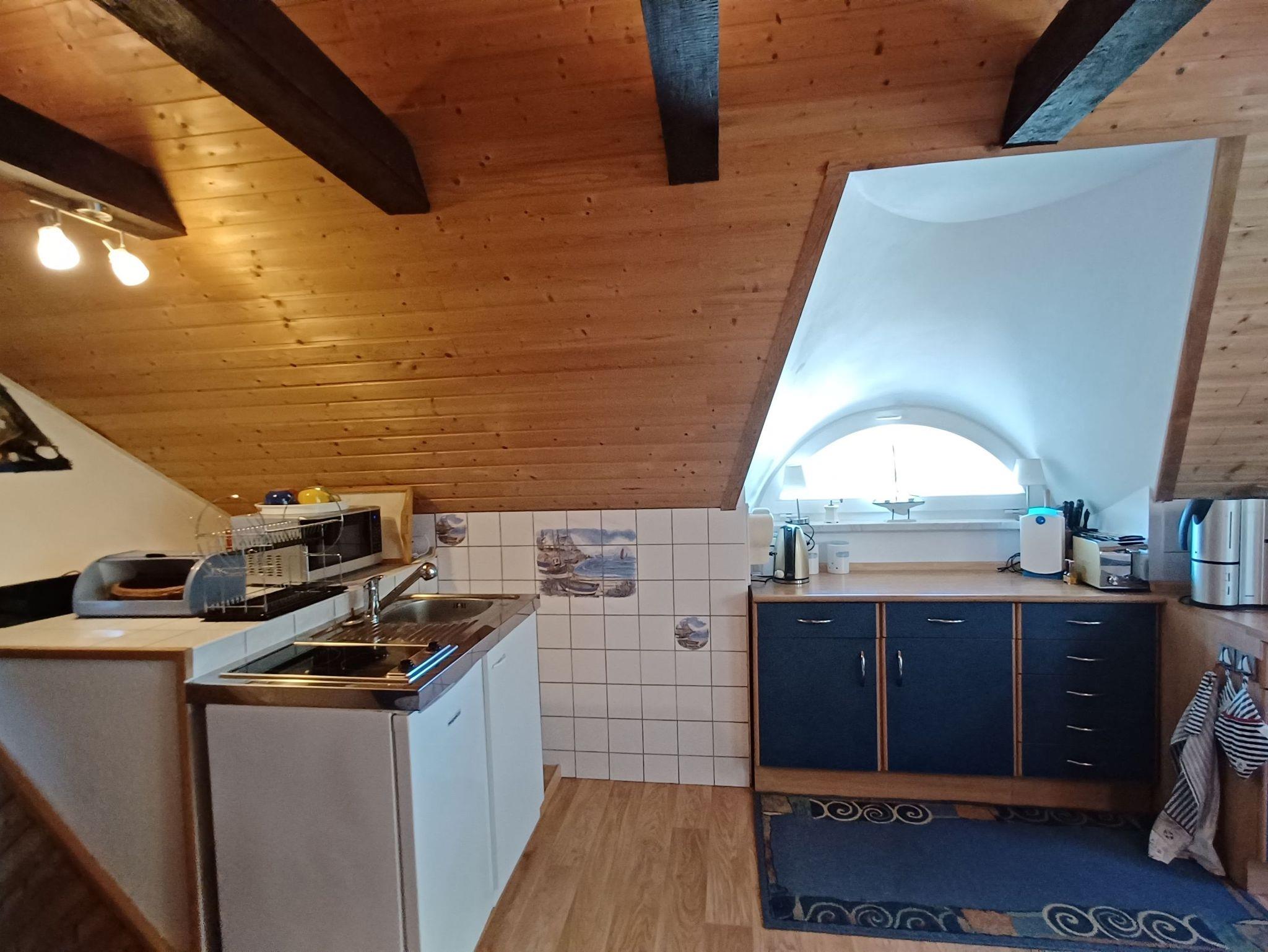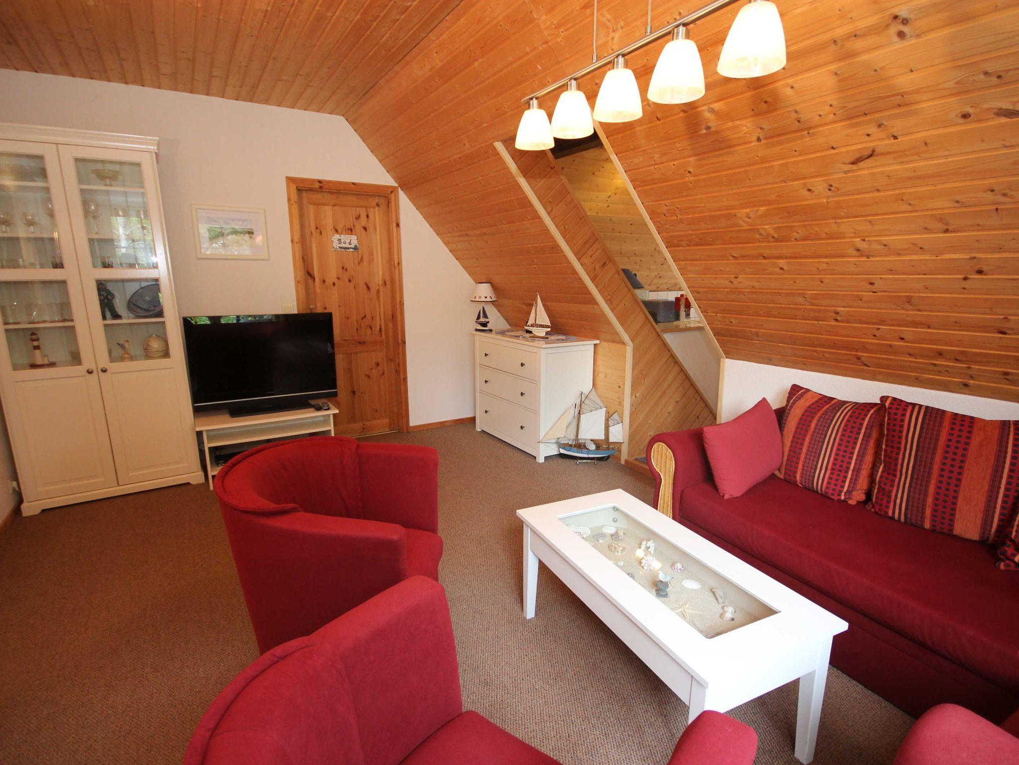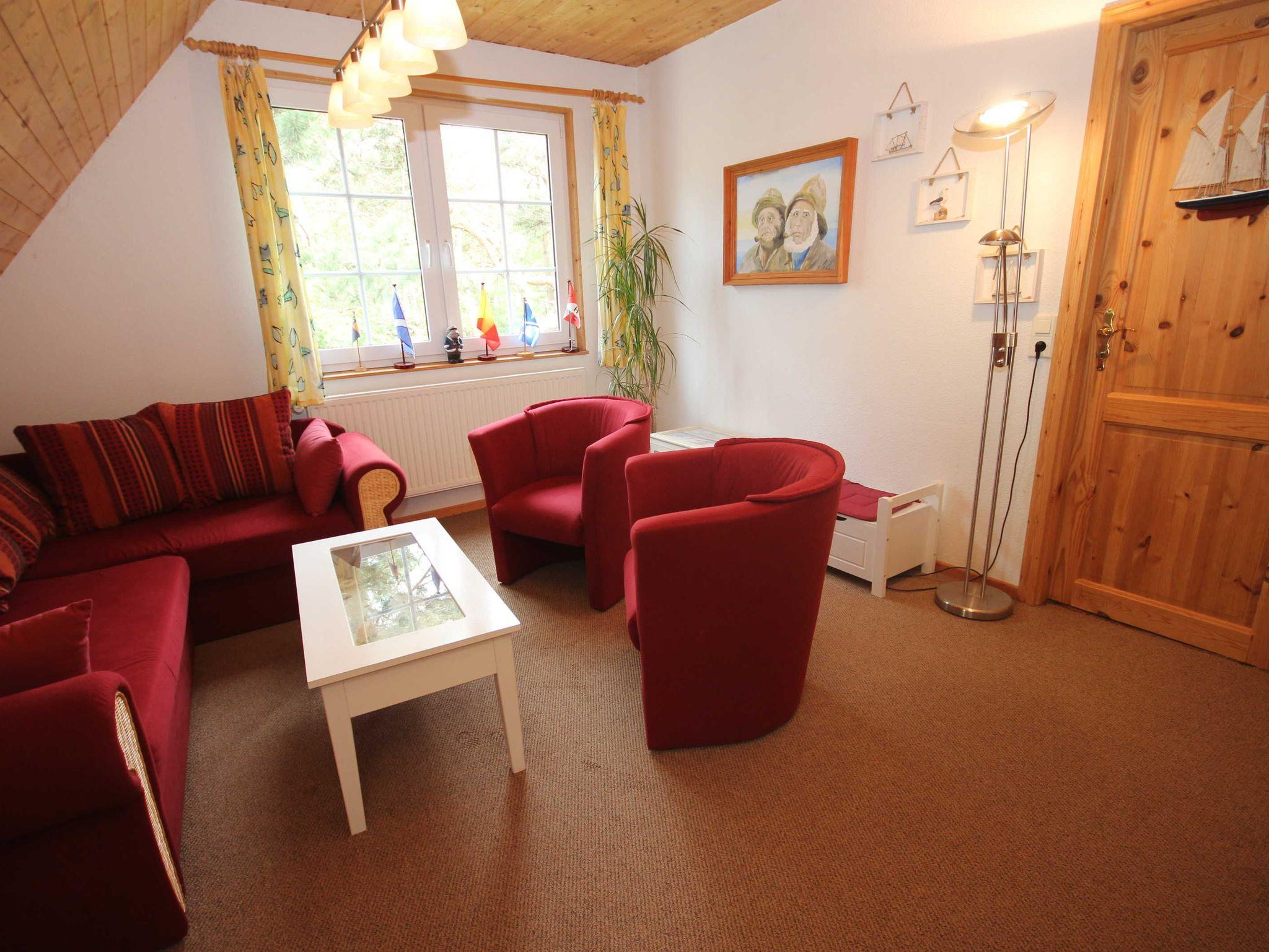 Die Ferienwohnung Am Strand im Obergeschoss mit separatem Eingang über eine Freitreppe, ist eine gemütliche, familienfreundliche Ferienwohnung unterm Rohrdach. Direkt am Strandübergang 13 gelegen. Der Balkon mit Nord- Westausrichtung lädt zum verweilen ein. Einen weiteren Sitzplatz mit Grillmöglichkeit finden unsere Gäste im Garten an der Wohnung. Das Wohnzimmer ist mit Sat.- TV und einer gemütlichen Couch ausgestattet.