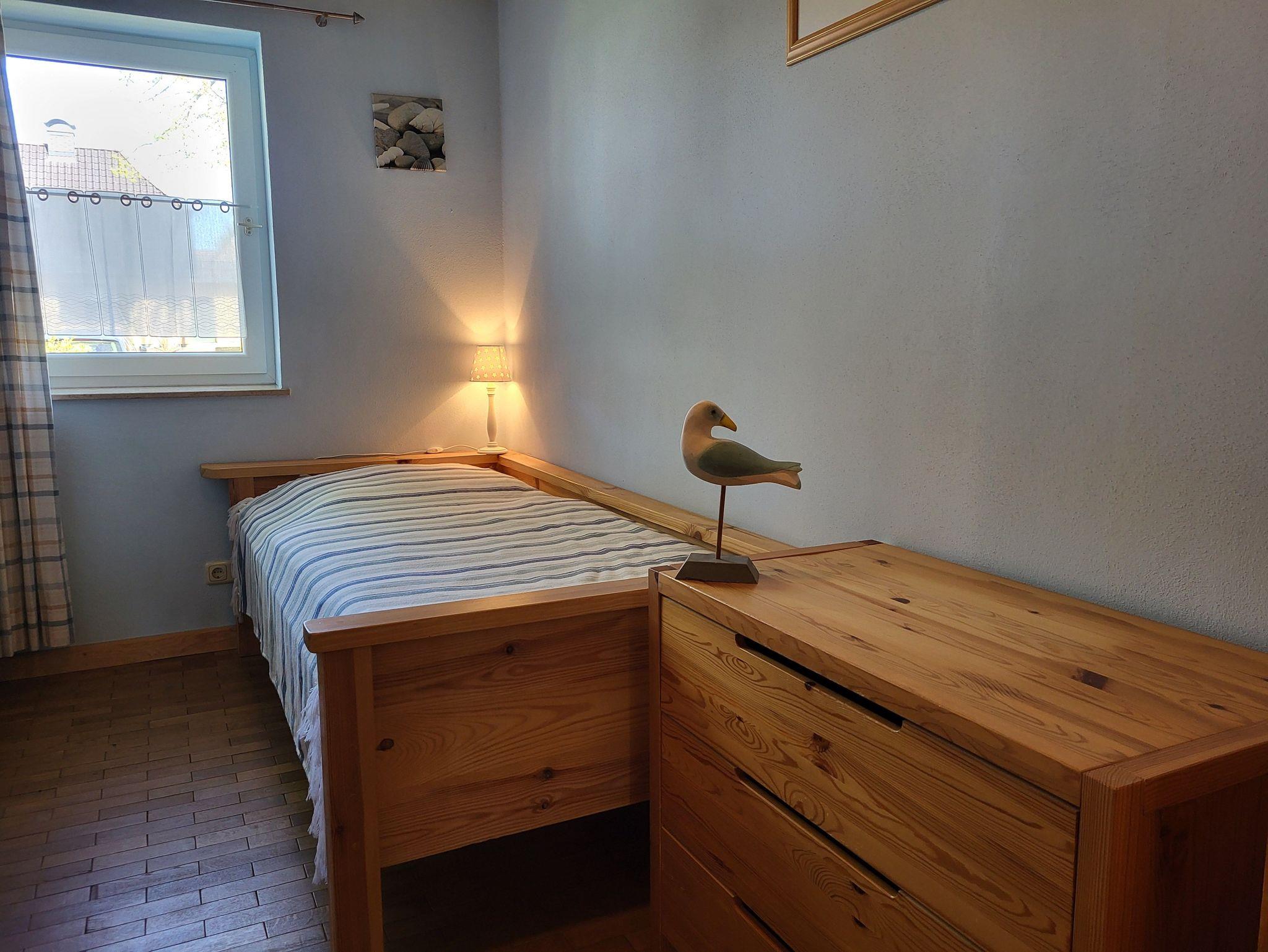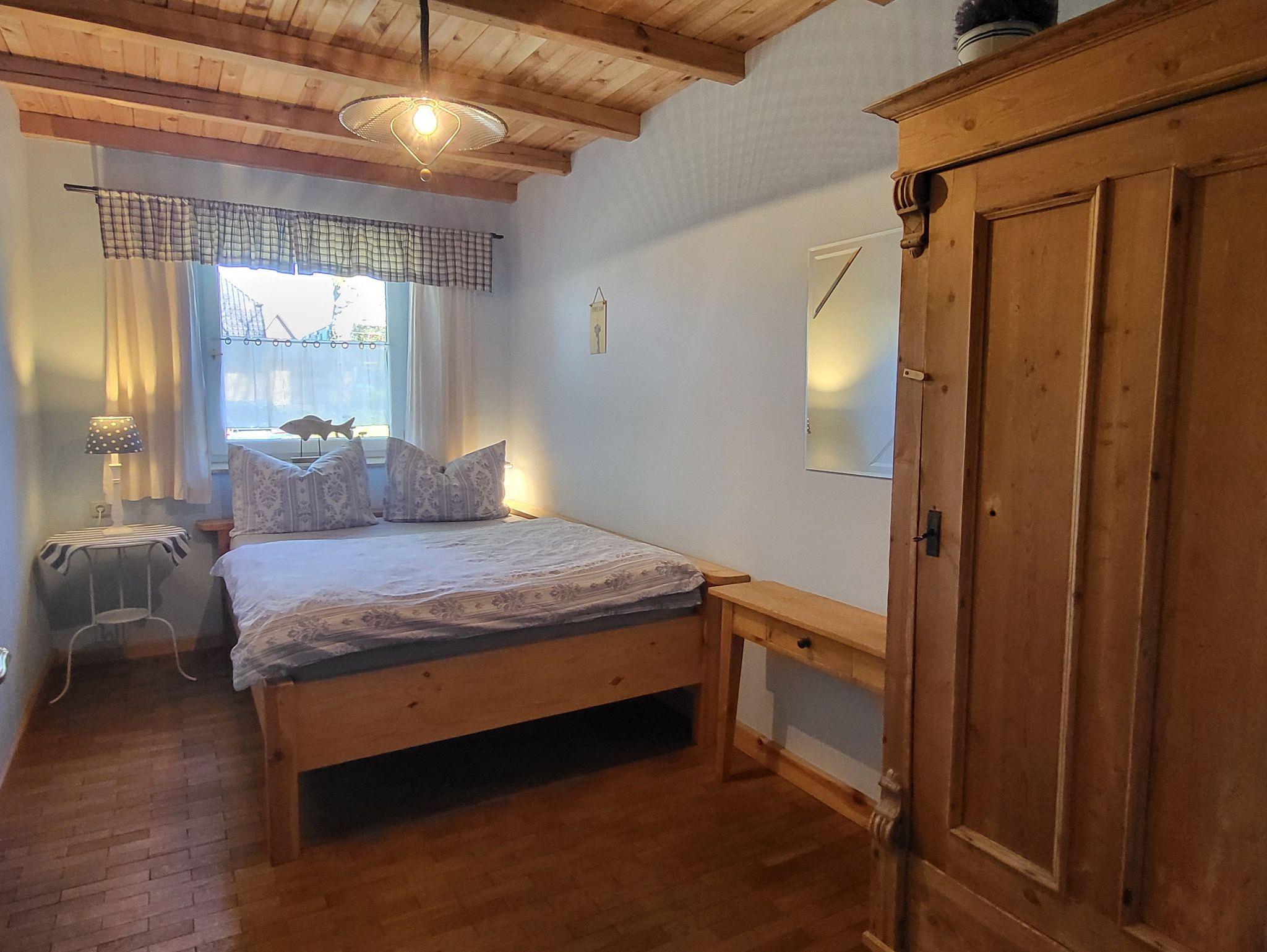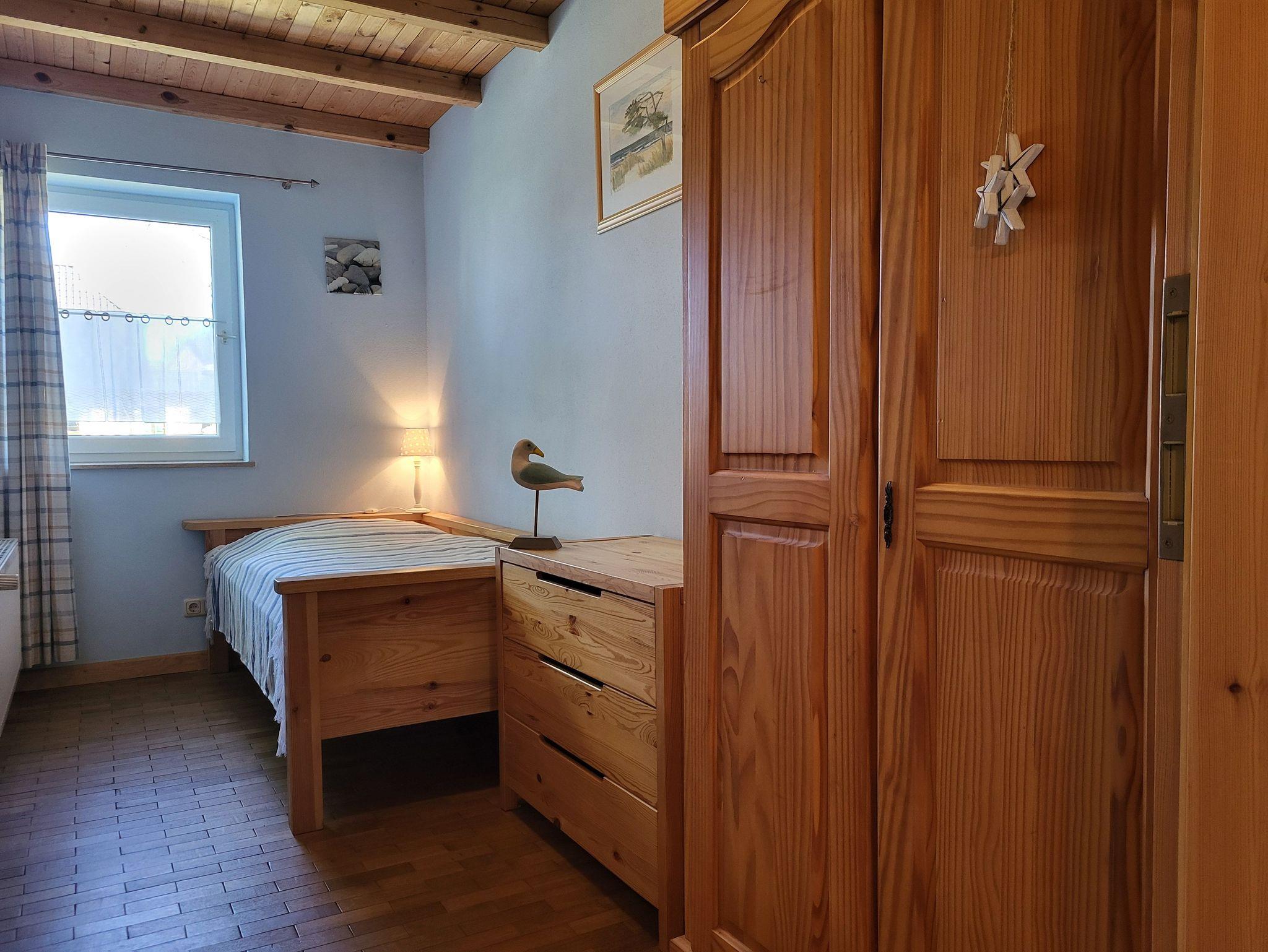 individuell und mit Liebe zum Detail eingerichtete Ferienwohnung im Erdgeschoss und separatem Eingang. Der gemütlich eingerichtete Wohnbereich mit Zugang zur Süderseitgen Terrasse, lädt zum erholen und entspannen ein. Gern können Sie auch im Garten (ca. 200 qm) sich einen gemütlichen und versteckten Platz suchen. Der offene Wohnbereich ist ausgestattet mit einer Couch und einem Kaminofen ( ein Starterpaket steht bereit), daran schließt sich die offene komplett ausgestattete Küchenzeile mit ausreichend Geschirr und umfangreicher Ausstattung an.Das Schlafzimmer ist ausgestattet mit Doppelbett (1,40 x 2,00 m) und das Kinderzimmer mit 1 Einzelbett (0,90 x 1,90 m). Im Bad befindet sich eine Dusche/WC.Die Wohnung wir mit Bettwäsche und Handtücher übergeben. Der Parkplatz befindet sich auf dem Grundstück.Alle Wohnungen sind Nichtraucherwohnungen. Haustiere sind nicht erlaubt.