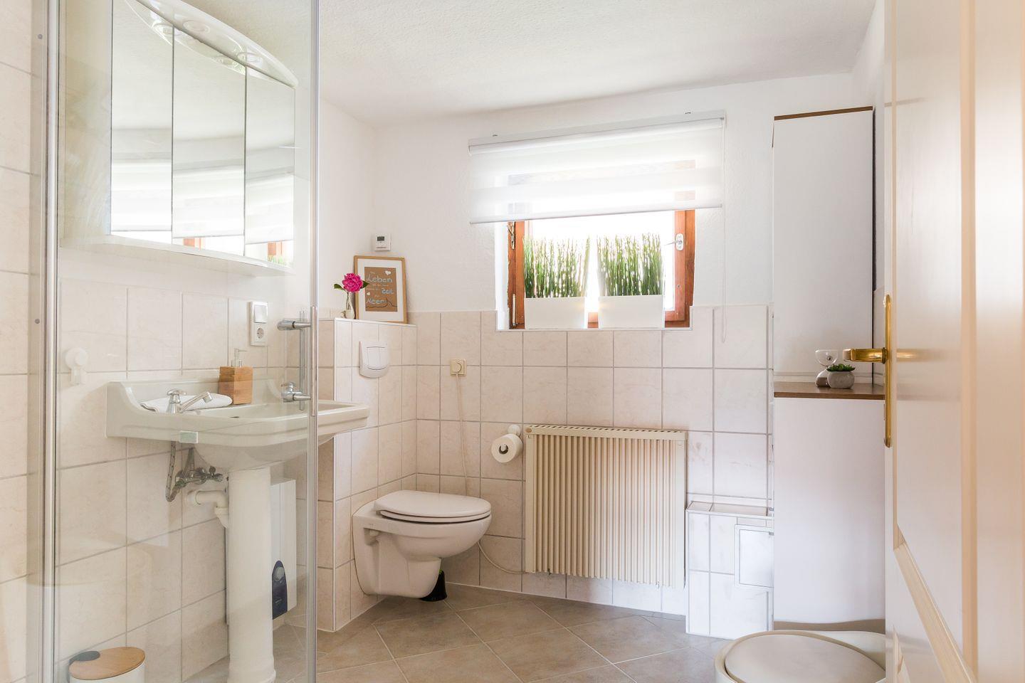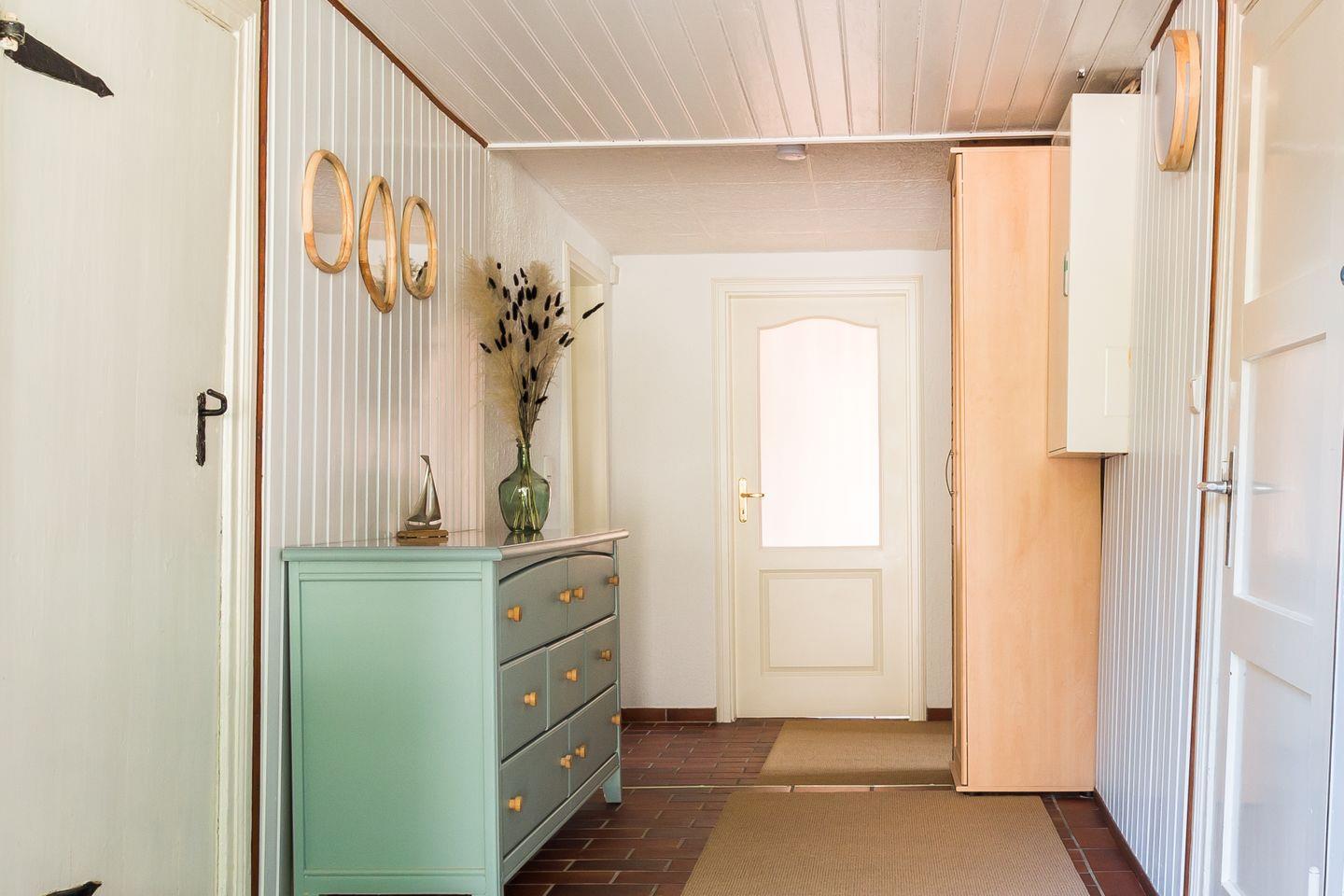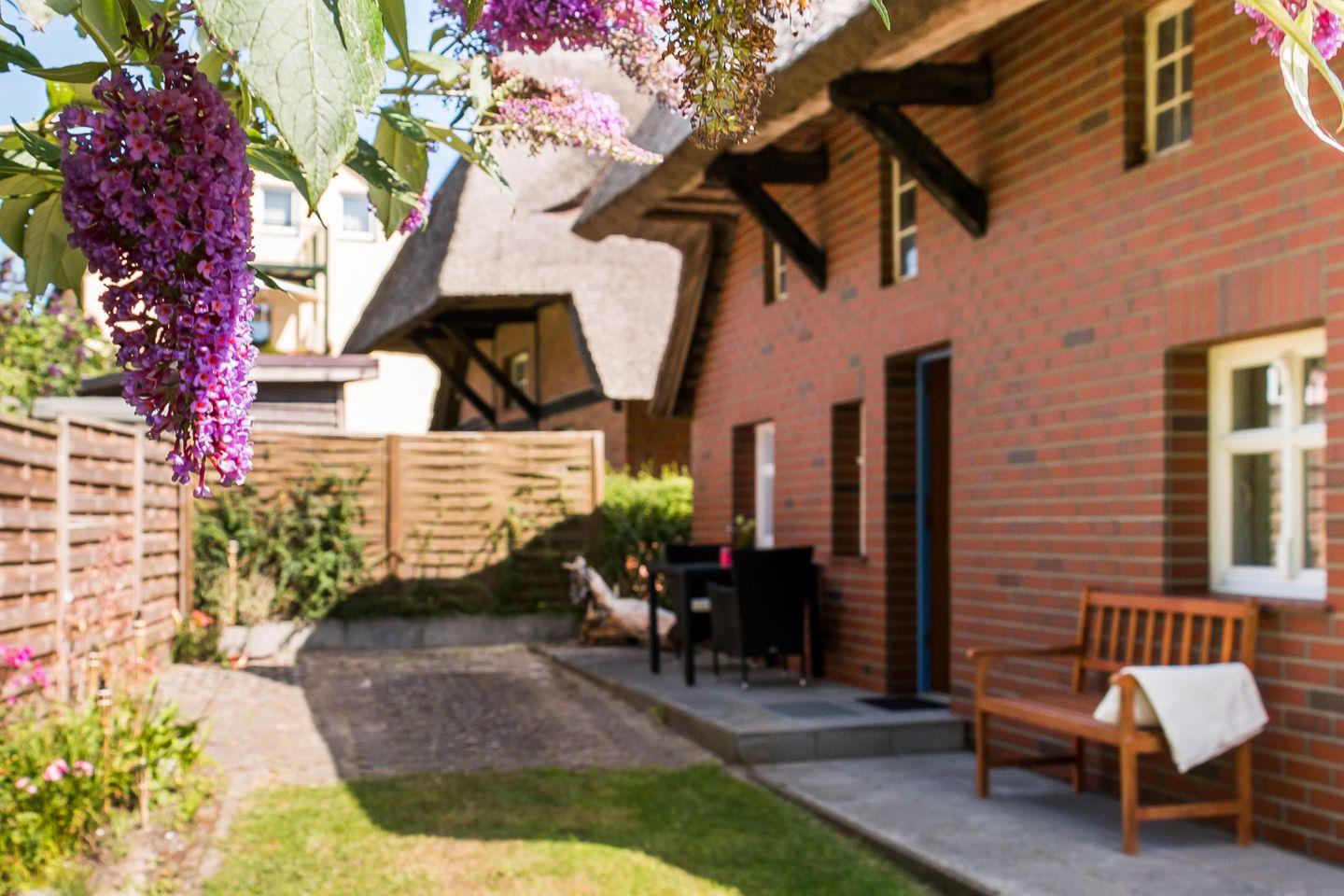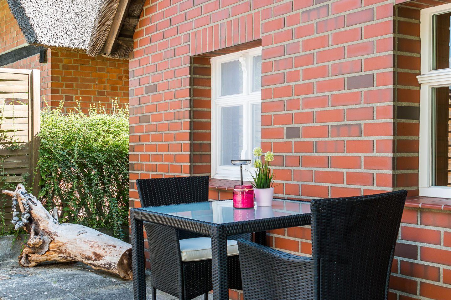 Auf der kleinen Terrasse kannst du den Tag ganz entspannt starten, mit Blick ins Grüne und einem frischen Kaffee in der Hand. Ein Pkw-Stellplatz direkt am Haus sowie Fahrradstellplätze sind natürlich auch vorhanden. Perfekt für alle, die die Küste auf zwei oder vier Rädern erkunden wollen.