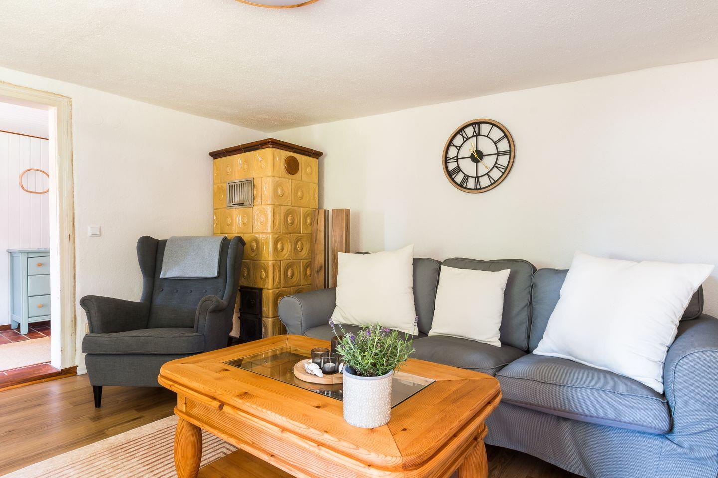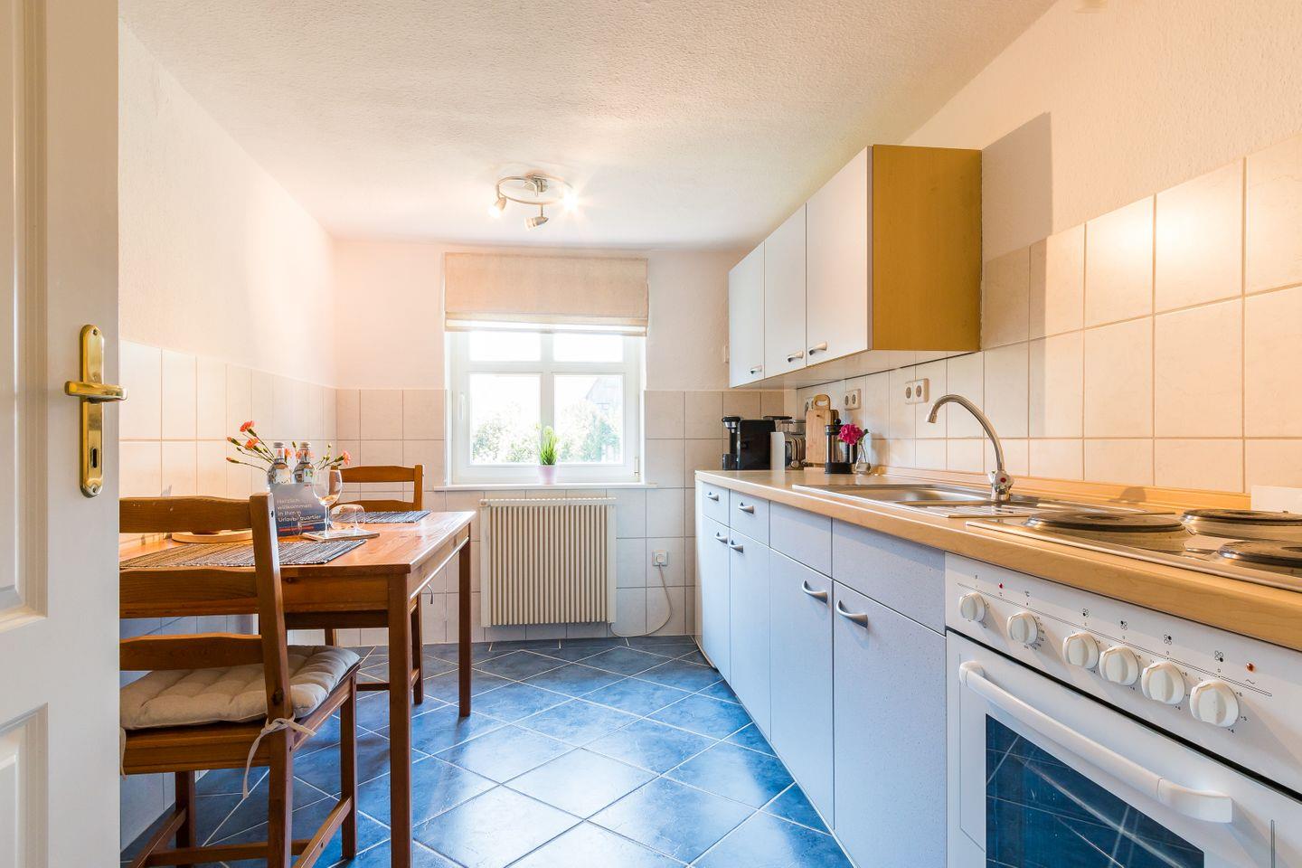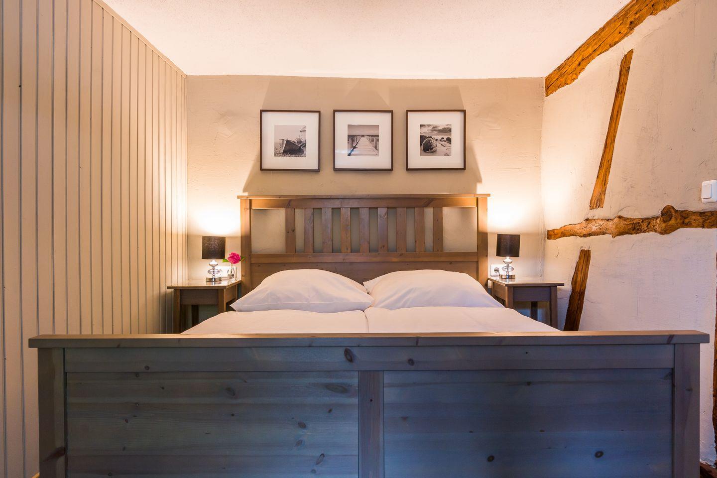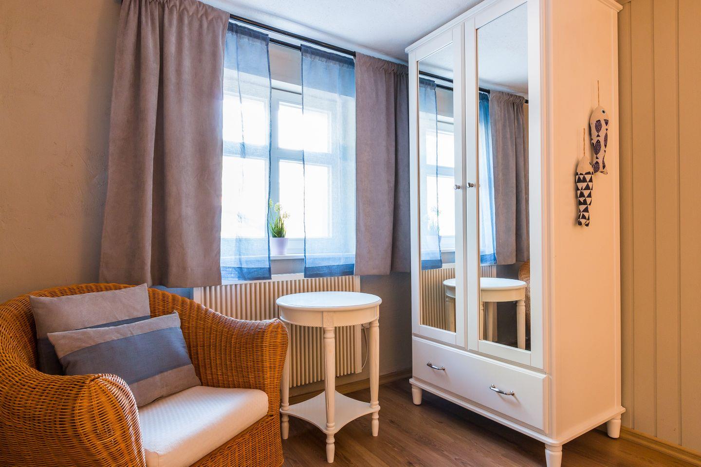 Die Wohnung hat einen separaten Eingang. Innen erwartet dich eine abgeschlossene, gut ausgestattete Küche, ein urgemütliches Wohnzimmer mit maritimen Details, ein einladendes Schlafzimmer und ein gepflegtes Bad. Alles ist liebevoll eingerichtet - mal ein Hauch Seemannskajüte, mal ein Tupfer Landhausidylle. Fischers Stübchen ist kein Ort für Perfektionisten, sondern für Menschen, die das Besondere lieben: echtes Fachwerk und schiefe Wände statt Gipskarton. Es ist diese Mischung aus Vergangenheit und maritimem Lebensgefühl, die deinen Urlaub hier so einzigartig macht.