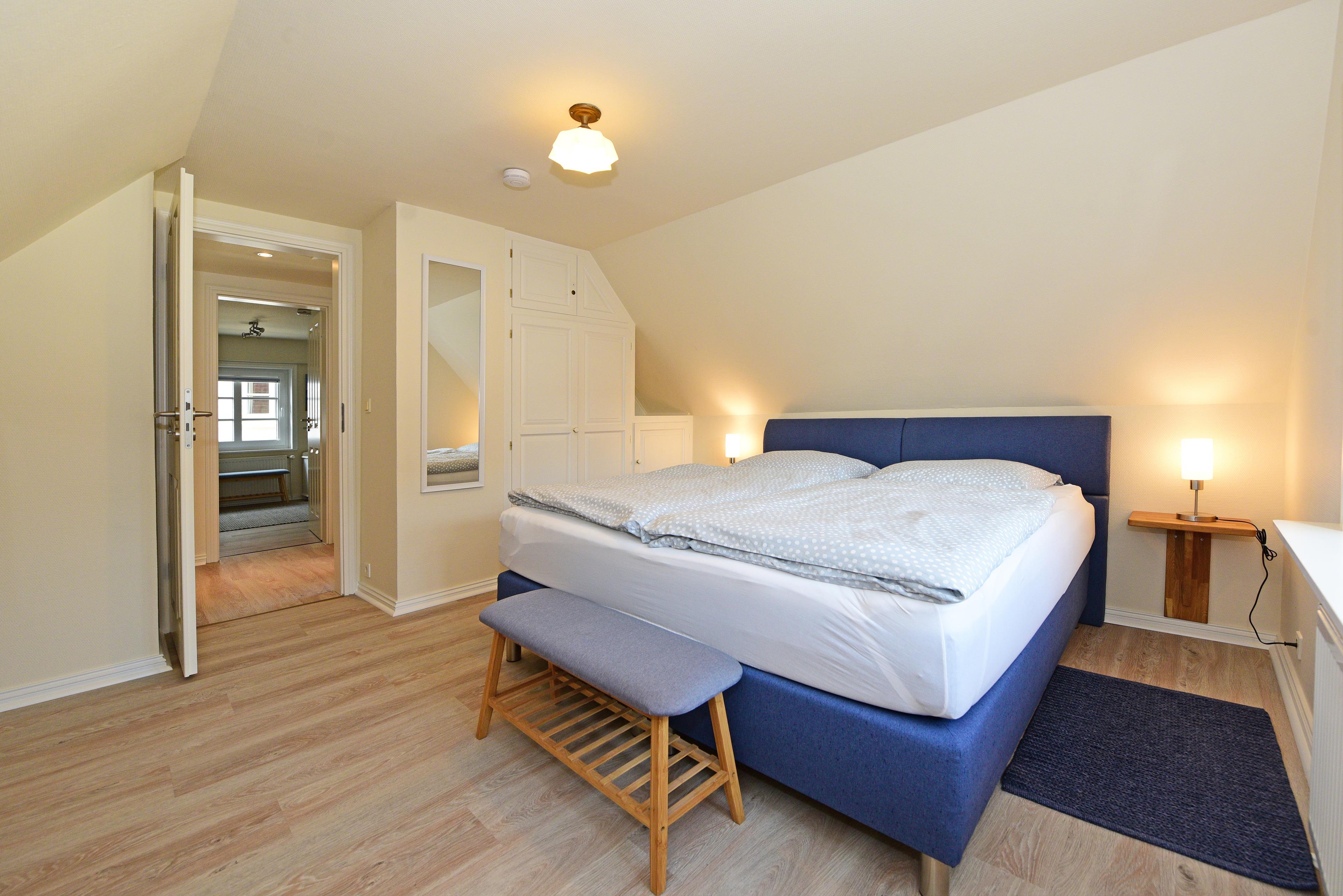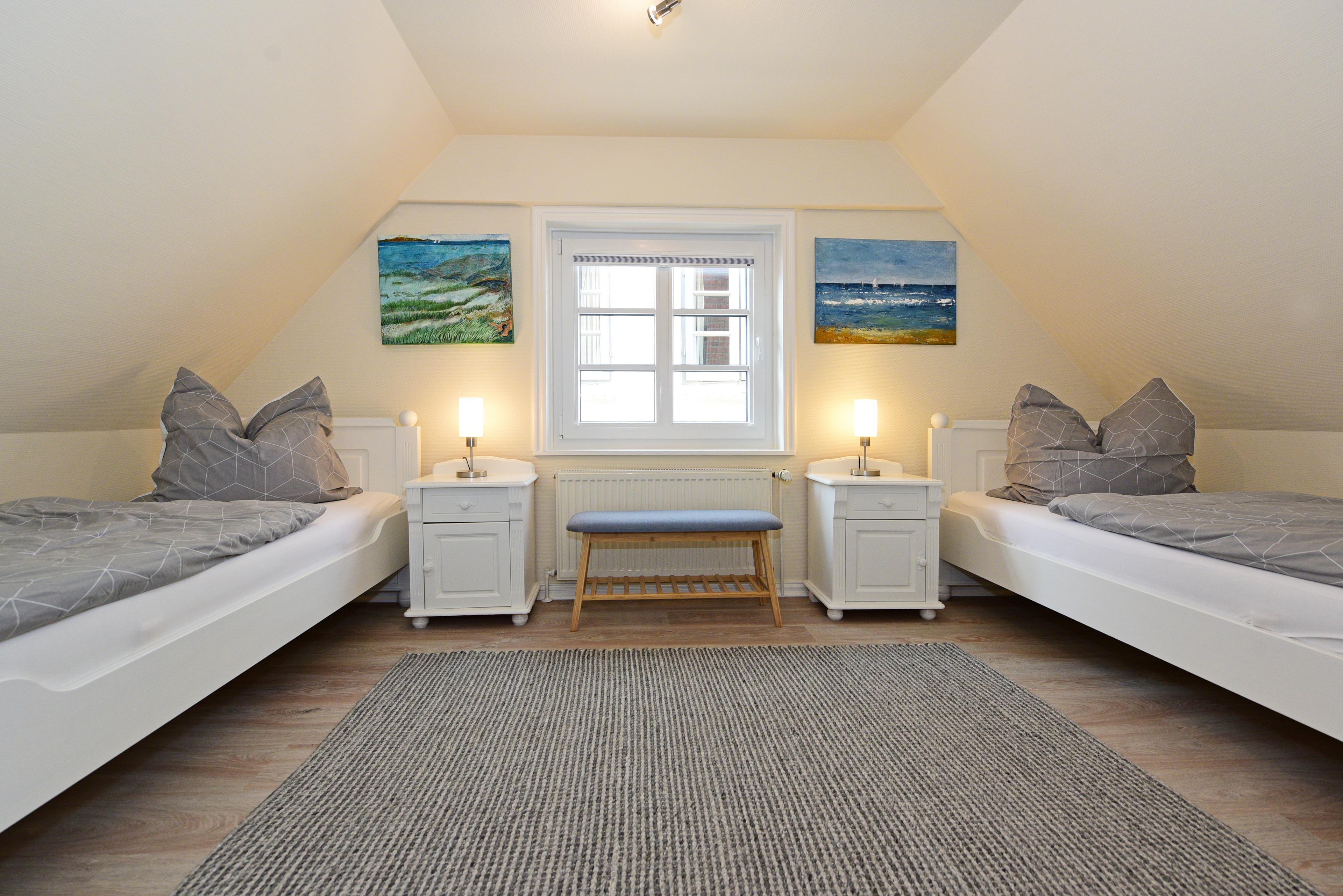 Im Obergeschoss sorgen zwei weitere Schlafzimmer - eines mit Doppelbett und eines mit zwei Einzelbetten - für erholsame Nächte.