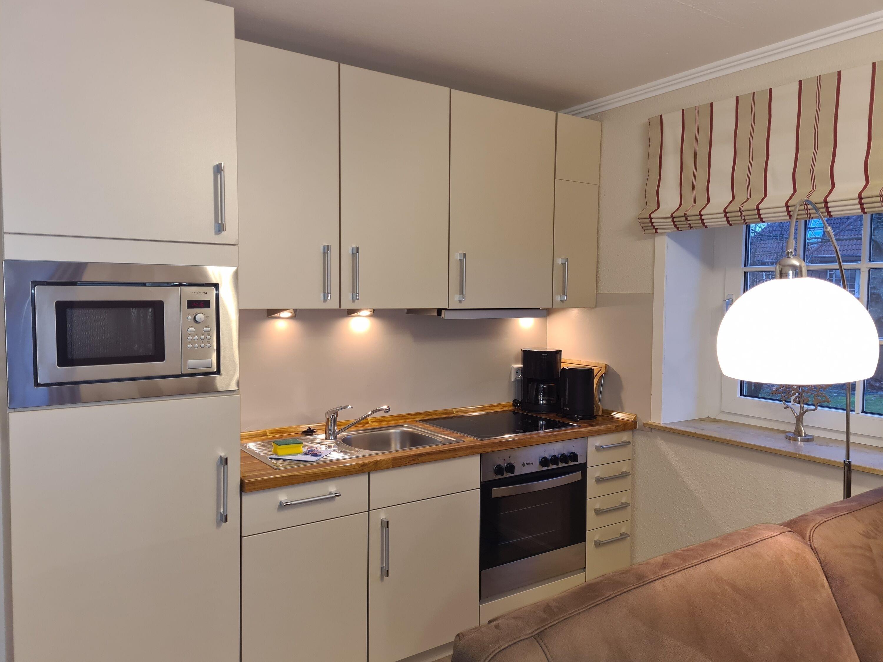 Die Wohnung befindet sich im Erdgeschoss und verfügt über eine eingewachsene Südost-Terrasse. Im Wohnbereich gibt es eine voll ausgestattete Küche mit Esstisch, eine gemütliche Couch, ein Duschbad und ein Schlafzimmer.