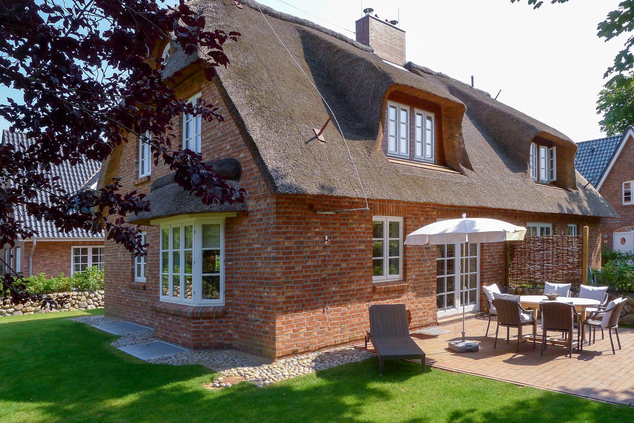 In unmittelbarer Nähe des Wyker Südstrand und in direkter Nachbarschaft zu den Flächen des alten Golfplatzes ist auf dem Gelände des ehemaligen Kaiserhofes die Residenz am alten Golfplatz entstanden. Mit nur wenigen Schritten gelangen Sie zum Strand und zur Promenade, welche Sie ins Herz von Wyk führt. Die Innenstadt mit ihren Cafés, Restaurants sowie Einkaufsmöglichkeiten ist so schnell und bequem zu erreichen. Das Reetdachdoppelhaus ist mit einem traditionellen Friesenwall umgeben. Auch bei der Innenausstattung wurde an alles gedacht - vom großzügigen Wohn-Essbereich mit schwedischem Kachelofen bis hin zur eigenen Sauna. Hier genießen Sie die schönsten Tage des Jahres.