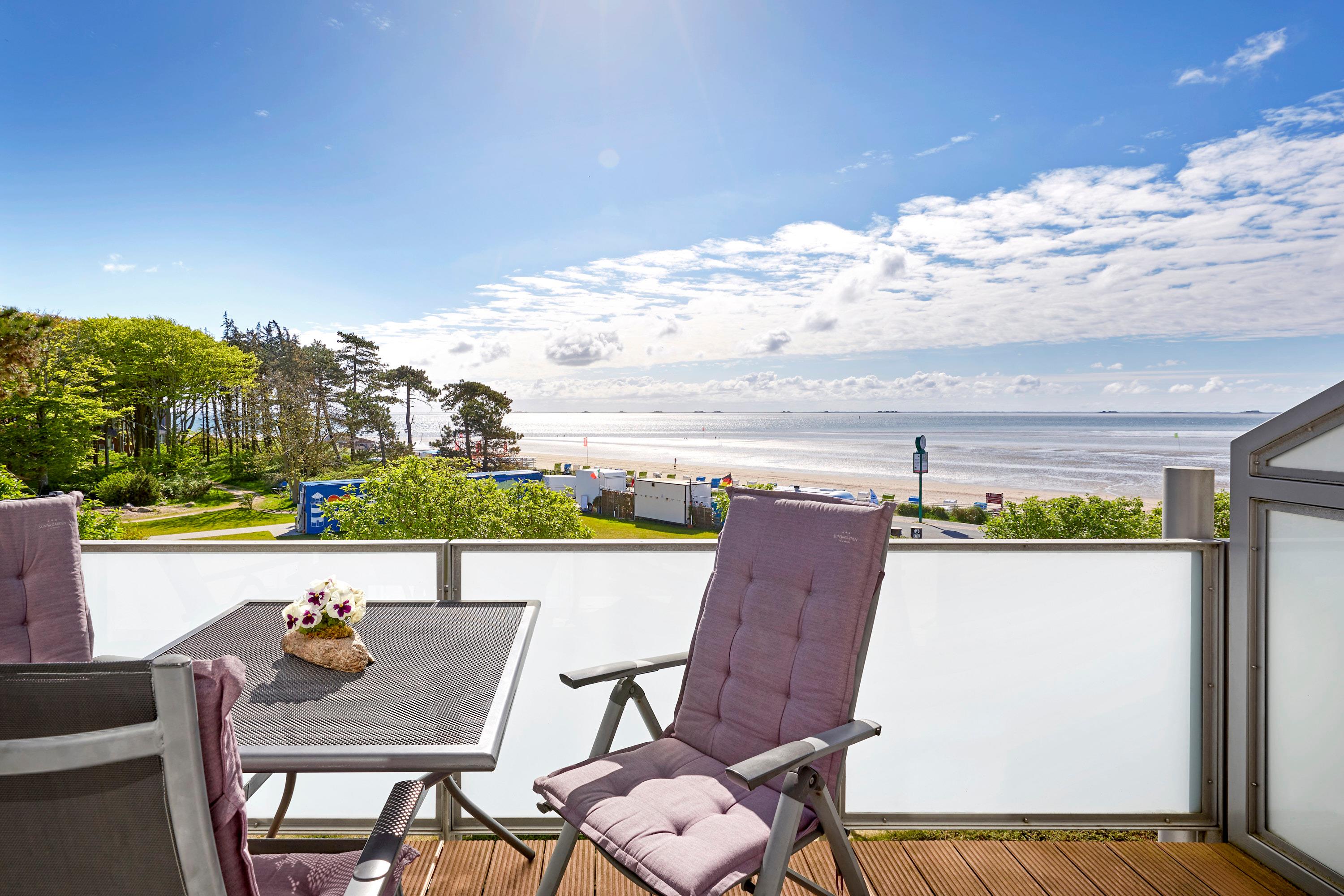 Wir begrüßen Sie im "Schloss am Meer", der exklusiven Wohnanlage direkt am Wyker Südstrand gelegen. Ihre Wohnung liegt im 2. Obergeschoss. Hier haben Sie einen Süd-Balkon ganz für sich allein und einen Blick auf die Nordsee und die Halligen. Dieser einzigartige Panoramablick ist unvergesslich. In nur wenigen Schritten befinden Sie sich auf der Promenade, die Sie ins Herz von Wyk führt. Hier laden Geschäfte zum Bummeln ein, Cafés und Restaurants verwöhnen Sie mit kulinarischen Köstlichkeiten.
