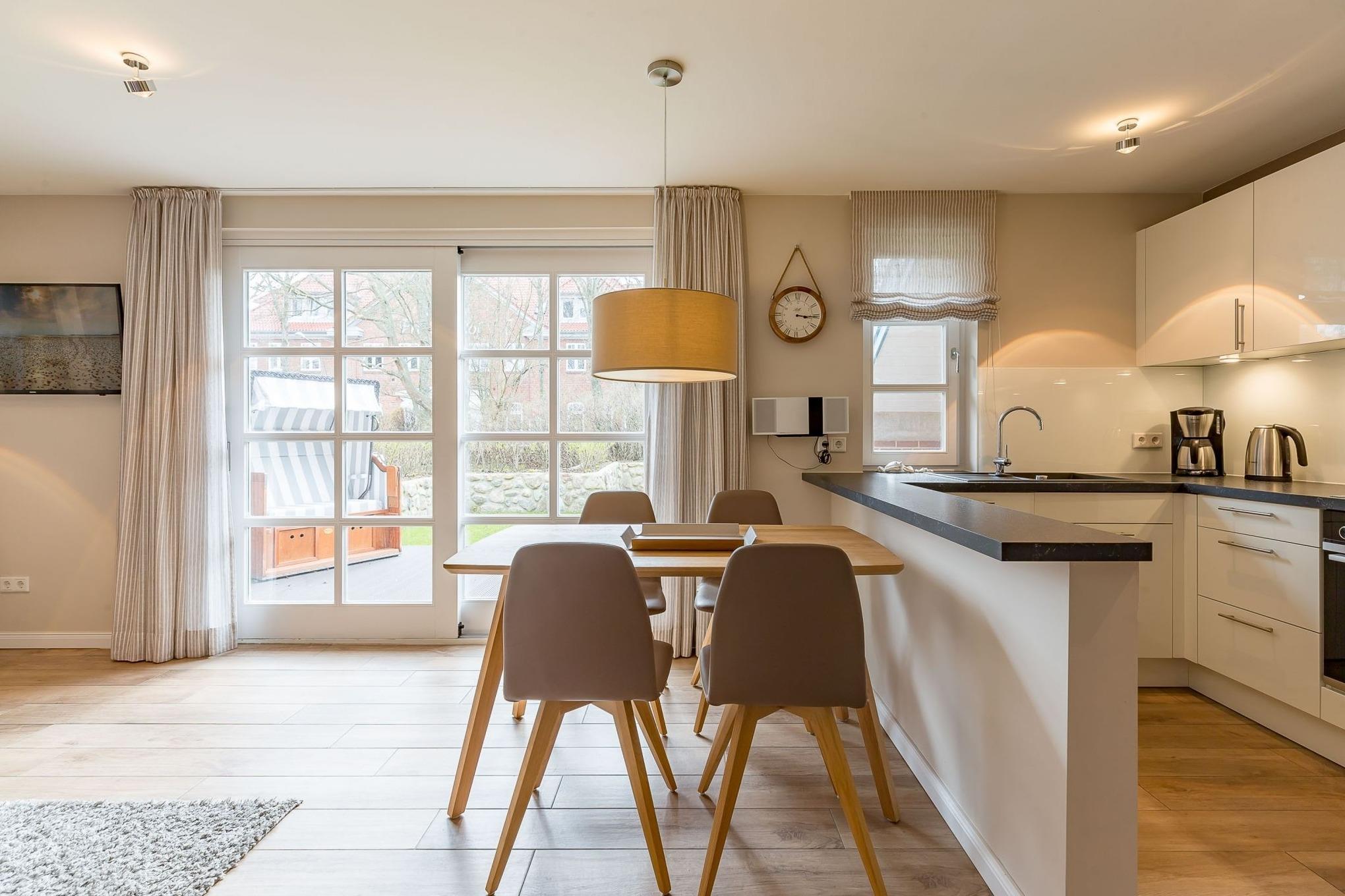 Herzlich willkommen in Ihrem Urlaubsdomizil. Sie sind ganz in der Nähe des Wyker Südstrand. Ein paar Schritte durch den alten Kurpark und vor Ihnen liegt der Strand und die Strandpromenade. Hier haben Sie alles, was einen Nordseeurlaub ausmacht. Meeresrauschen, Möwengeschrei, Sandstrand, eine leichte Brise und dazu der Blick bis zu den Halligen. Strandkörbe laden zum Sonnenbaden ein und das Meer zum Abkühlen. In Ihrer modernen und mit viele Liebe zum Detail ausgestatteten Erdgeschosswohnung wird es Ihnen an nichts fehlen. Ob Sie im Sommer auf der Terrasse die Sonnenstrahlen und die Wärme genießen oder in der kühlen Jahreszeit die Sauna Ihr persönlicher Wellnessbereich ist - zu jeder Jahreszeit ist der Aufenthalt lohnenswert. Ein Fahrradverleih, Bäckerei, Bushaltestelle, Restaurants - alles erreichen Sie in wenigen Gehminuten. Bummeln Sie über die Strandpromenade nach Wyk oder starten Sie eine Radtour zu den schönen Inseldörfern.