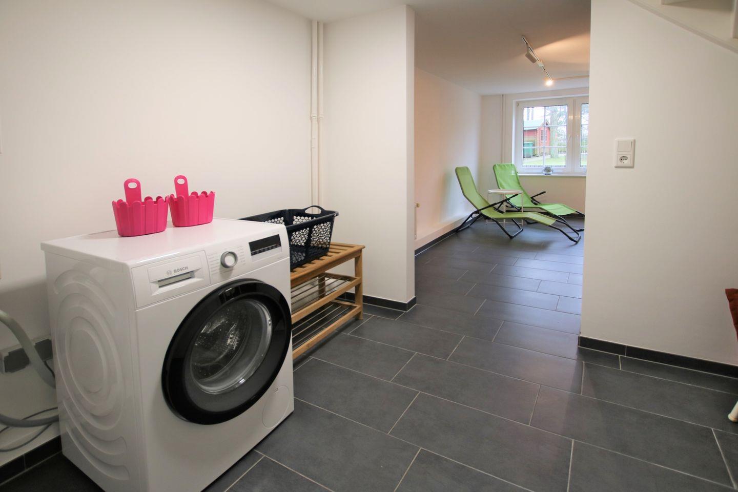 - Küche mit Esstisch, Spülmaschine, Waschmaschine
