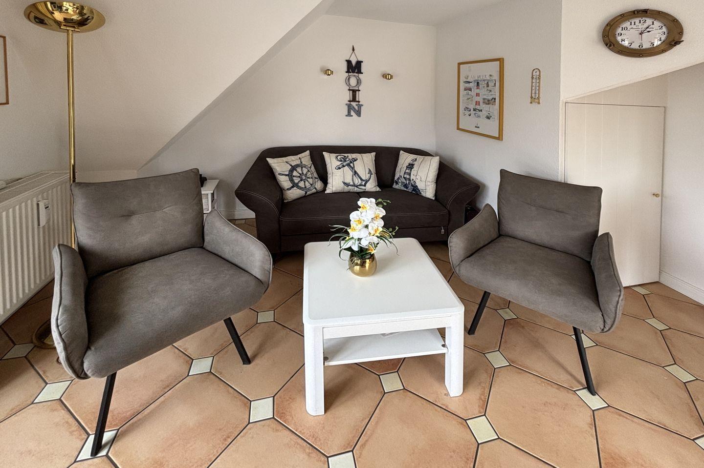 Ferienwohnung in Wyk auf Föhr, Rungholtstraße 6, Wohnung Nr. 4, 3 Zimmer Nichtraucherwohnung (ca. 55qm) in der 1. Etage mit 1 Südbalkon und 1 Westbalkon.