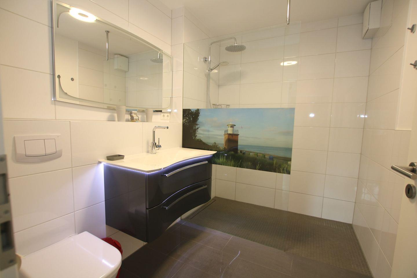 Das moderne BAD mit großer Walkin Dusche und WC bietet ausreichend Platz.