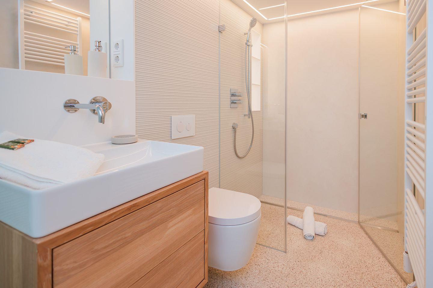 Die Ferienwohnung Beeke steht für Wohnen auf höchstem Niveau. Sie bietet höchsten Komfort mit großzügigen 3 Schlafzimmern, 3 Bädern en Suite sowie einem zusätzlichen Gäste-WC – ideal für bis zu 6 Personen, zzgl. einer Kleinkinderaufbettung. Auch bis zu zwei Hunde sind herzlich willkommen.
