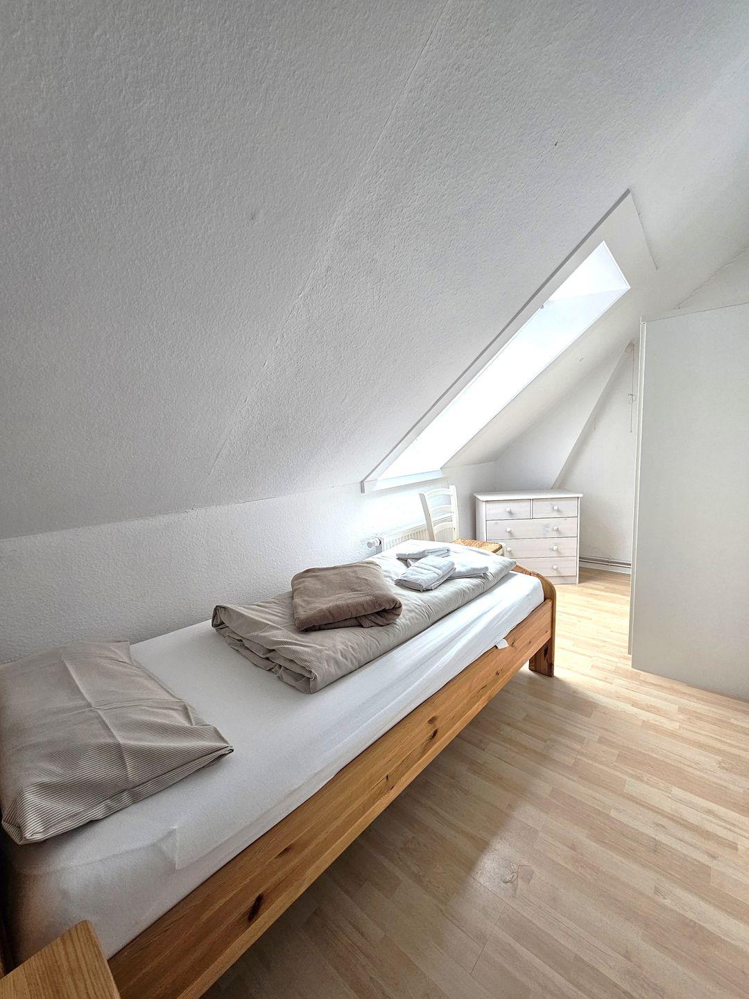 Die Wohnung verfügt über 3 Schlafzimmer und 1 Badezimmer mit Dusche, WC und Waschbecken; warmes Wasser und Heizung sind vorhanden. Für längere Aufenthalte oder Reisen mit Kindern ist die gemeinschaftliche Nutzung von Waschmaschine und Trockner eine praktische Ergänzung (gegen Gebühr).