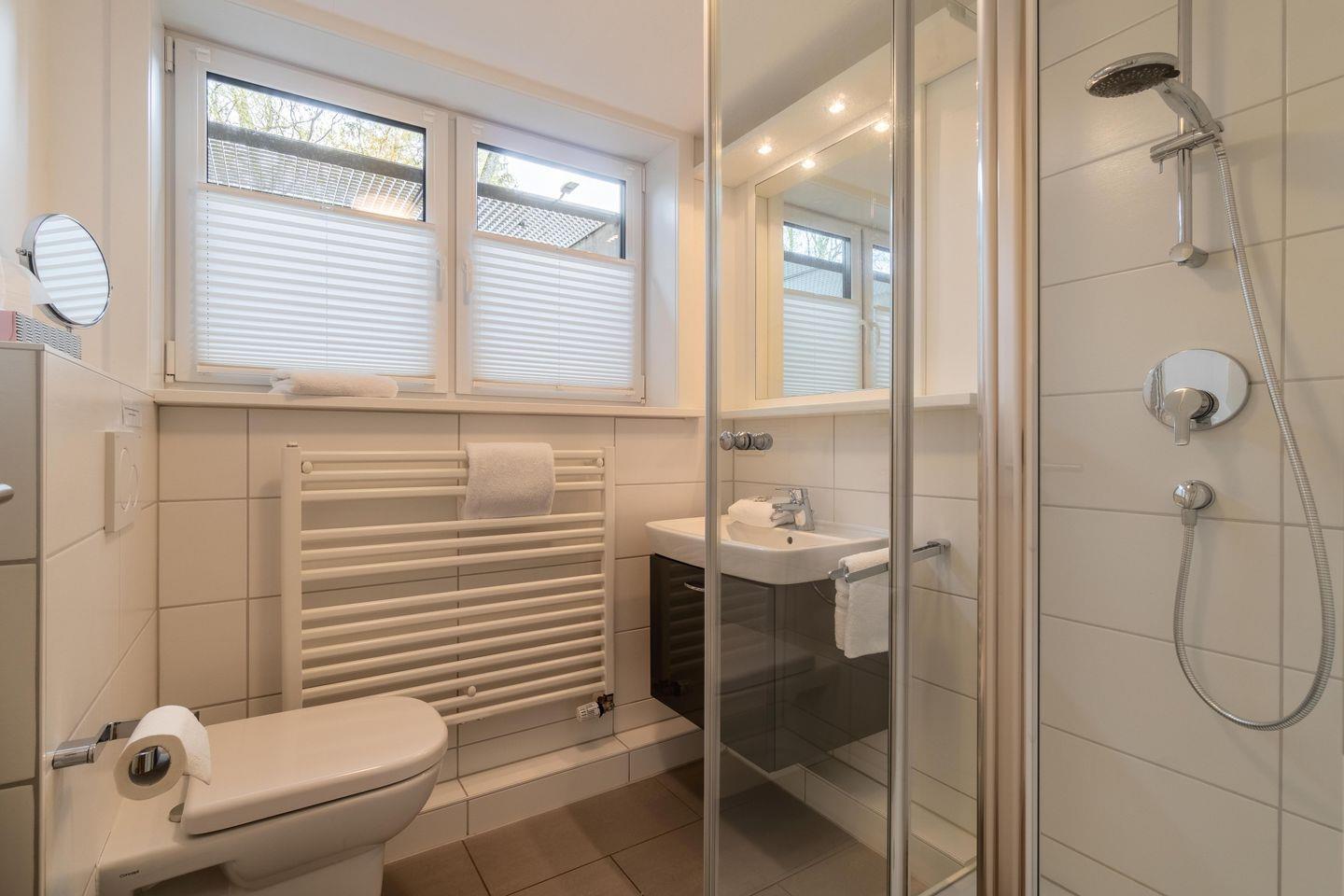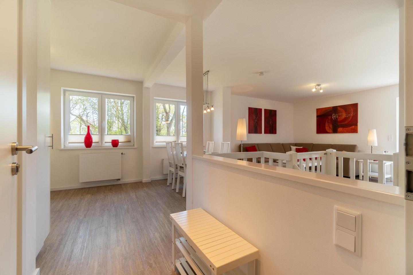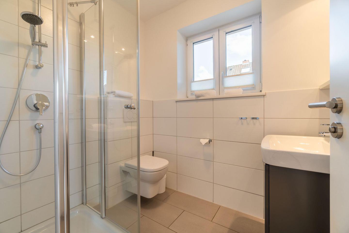 Die Ferienwohnung 1 überzeugt durch den großen, hellen, kombinierten Wohn-Essbereich mit der komplett ausgestatteten, integrierten Küche. Von hier aus haben Sie auch einen direkten Zugang auf die Terrasse und in den Garten. Die Wohnung verfügt über zwei Schlafzimmer im Souterrain sowie über zwei Duschbäder. Die moderne Ausstattung der Wohnung wird Sie überzeugen, ebenso wie der große Smart-TV im Wohnbereich. Ein Flachbildfernseher ist auch in einem der beiden Schlafzimmer vorhanden.