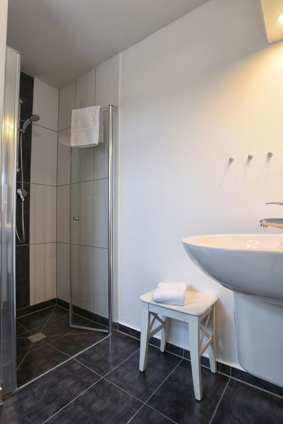 In jeder Stadtwohnung befindet sich eine Kaffeefiltermaschine. In den gemeinsamen Bereichen des Hauses 10a stehen zwei Waschmaschinen und Trockner, die kostenfrei genutzt werden können. Hier finden Sie auch diverse Prospekte, Brettspiele und Bücher, die Sie sich für Ihren Aufenthalt gerne mit in Ihre Stadtwohnung nehmen dürfen. Außerdem finden Sie hier auch Kaffeepad- und Kapselmaschinen in leicht reduzierter Stückzahl vor. Bei Bedarf können Sie sich diese ebenfalls mit in Ihre Stadtwohnung nehmen. Alle Schränke wurden von einem hiesigen Tischler gefertigt und passgenau in den Stadtwohnungen eingebaut.