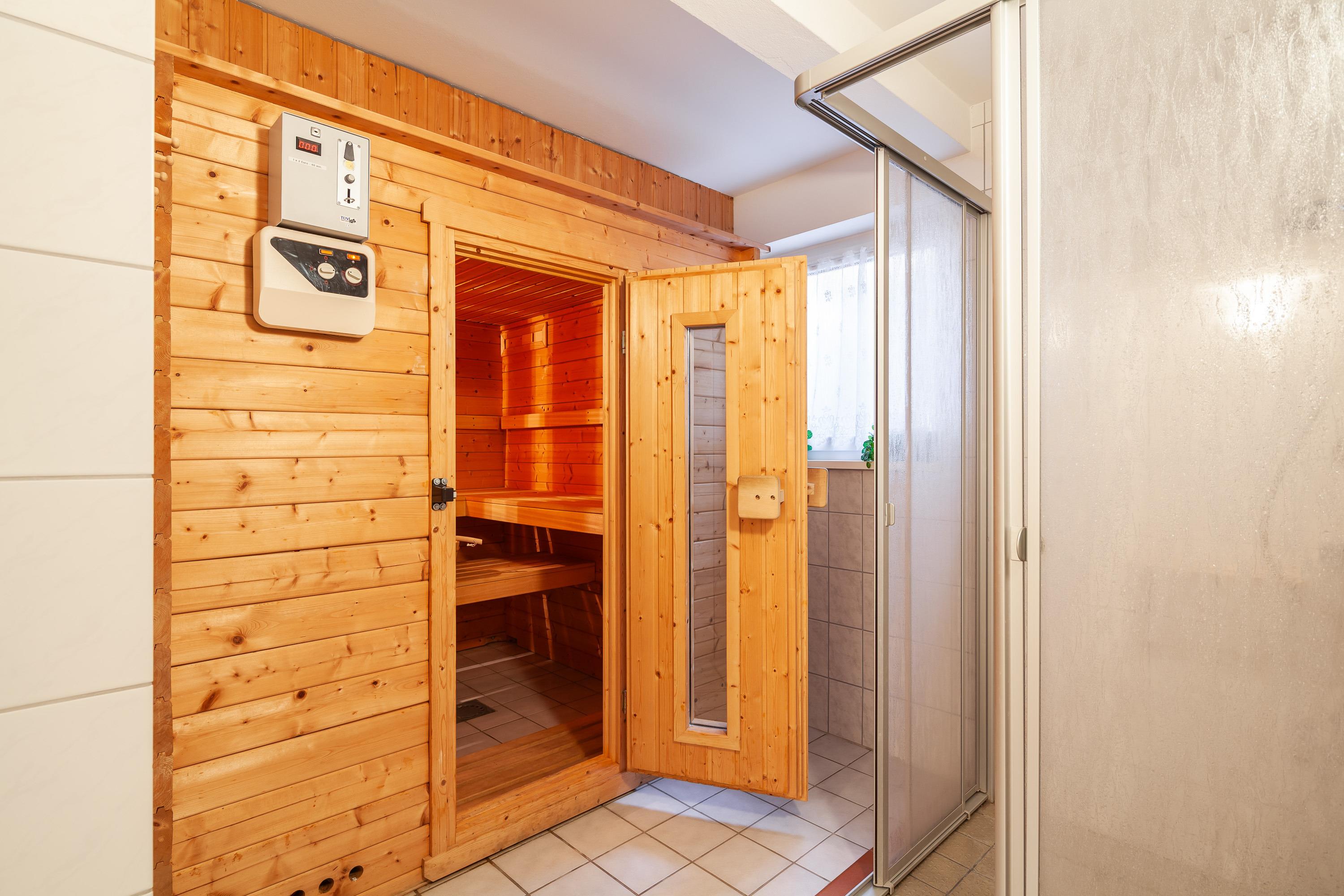Im Gemeinschaftskeller befinden sich Sauna und Waschmaschine/ Trockner (Münzer).