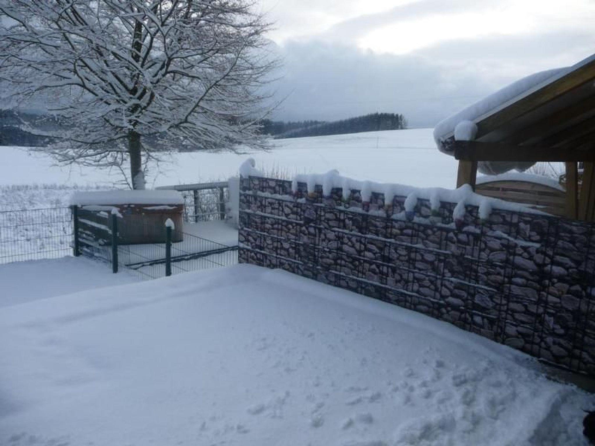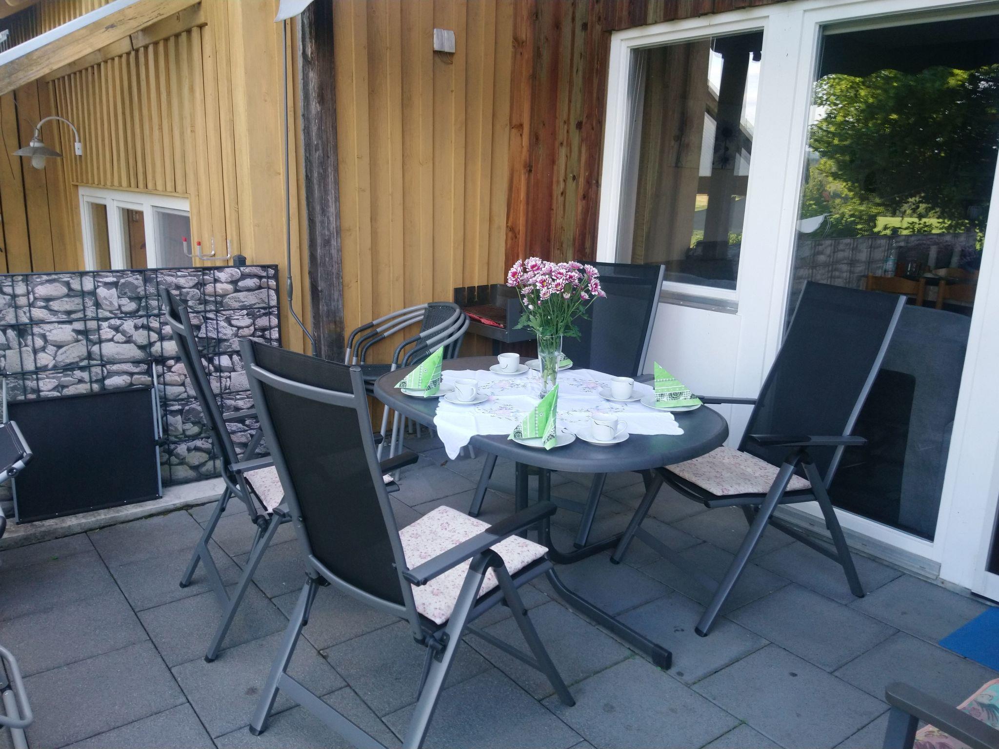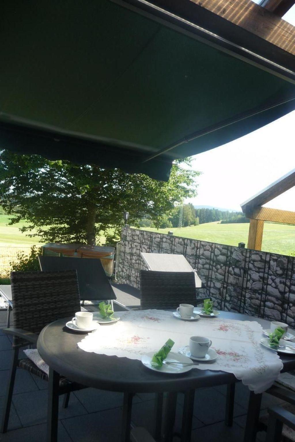 Outside, a spacious terrace awaits you, where you can enjoy this fantastic view in a deckchair under a newly installed awning, relax and take in the tranquillity of the surroundings. For dog and nature lovers, our property, which is secured with two lockable garden doors, offers direct access to open fields surrounded by the picturesque landscape of the Bavarian Forest.