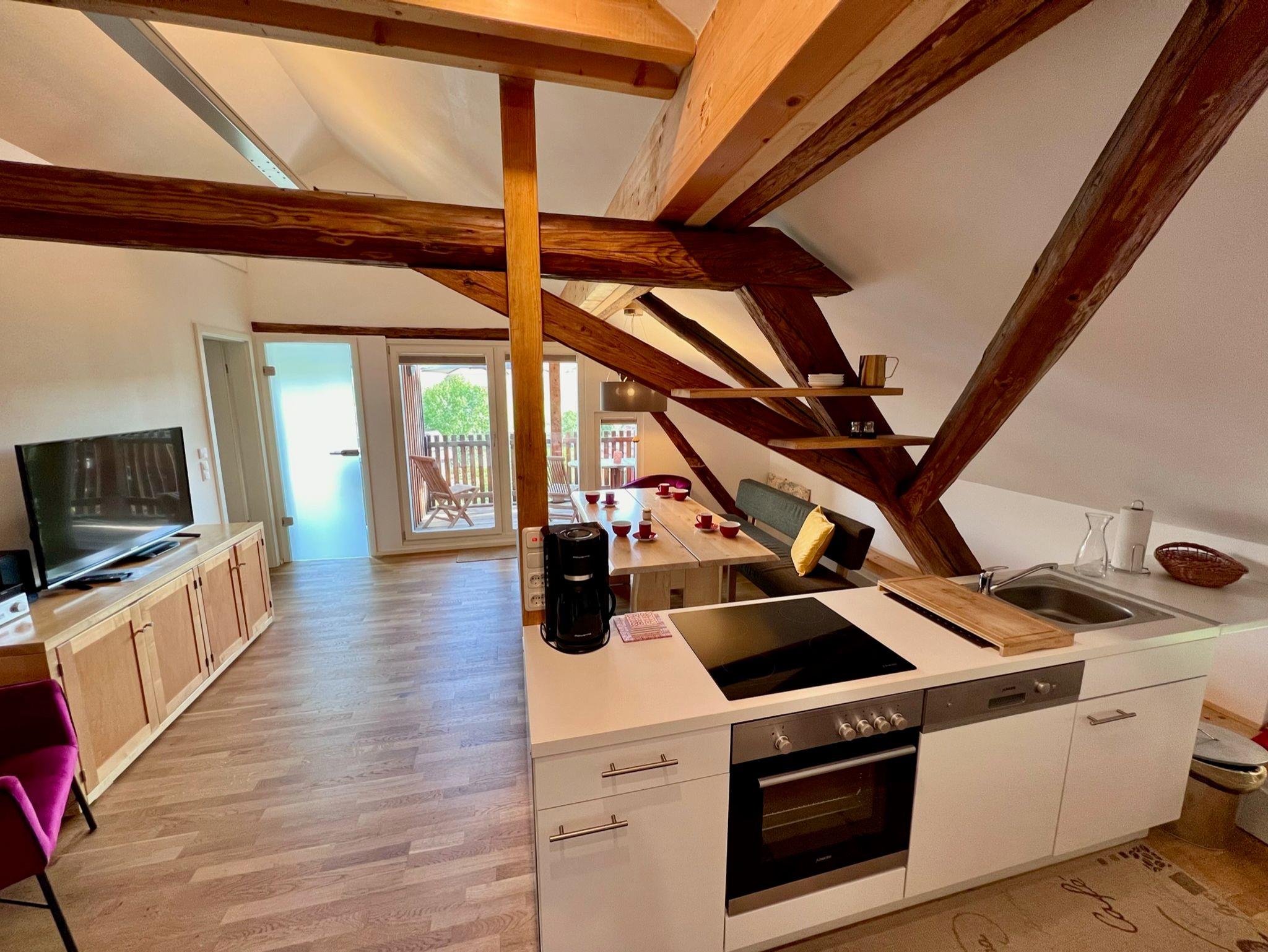 Das offene Gewölbe bis zum Dach gibt dieser Wohnung den einzigartigen Flair!