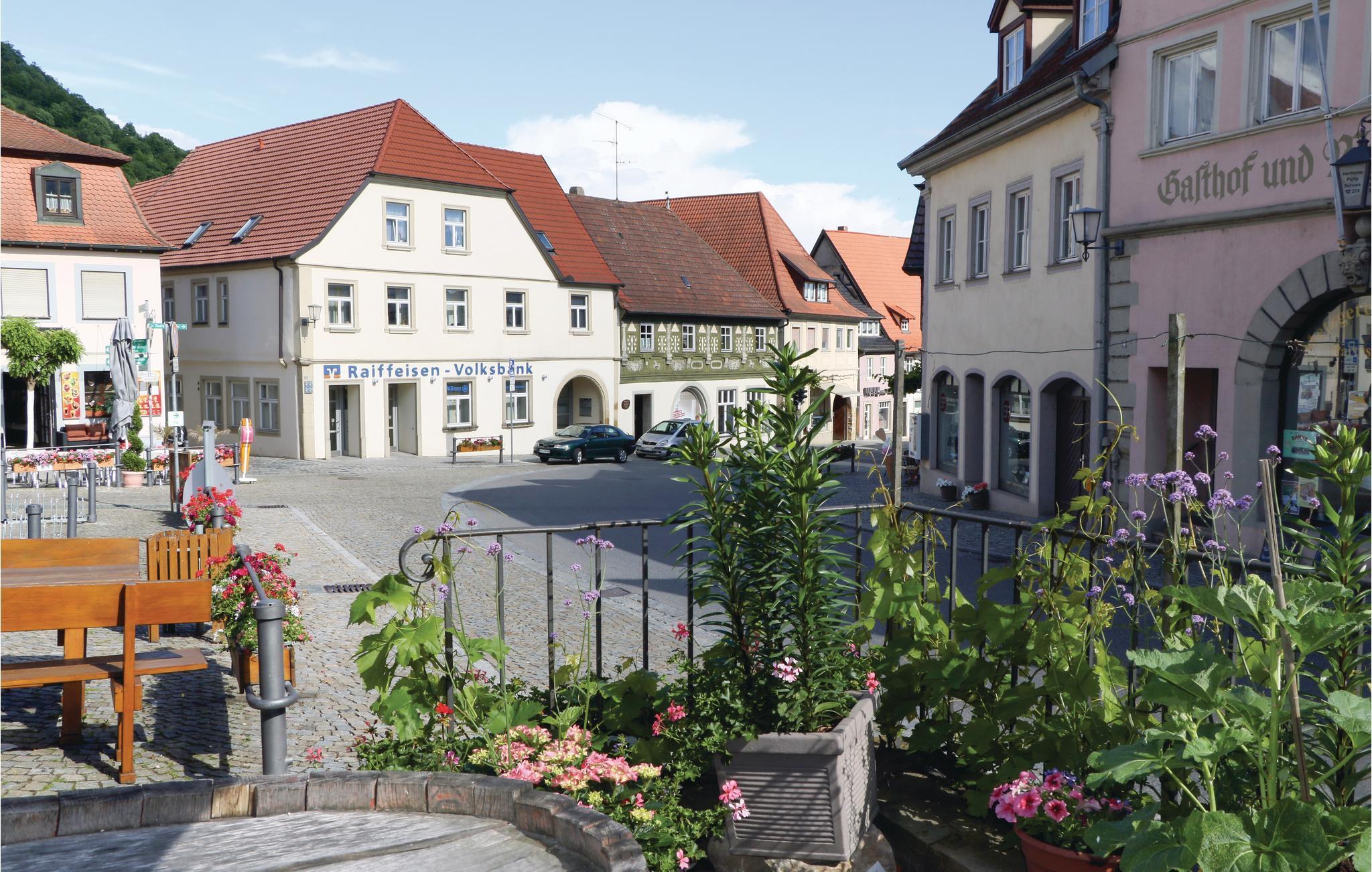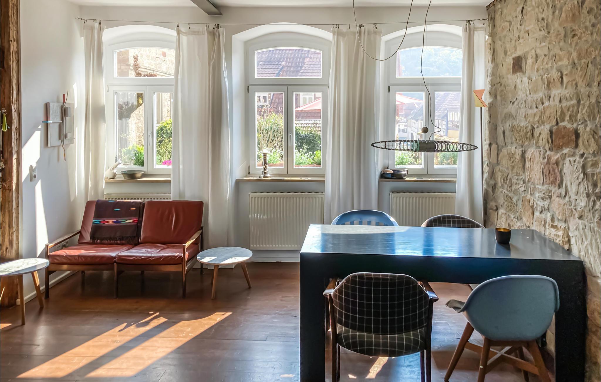 Meget hyggeligt indrettet feriehus med meget charme. Boligen er rustikt og smagfuldt indrettet og byder jer et midlertidigt hjem med mange dejlige detaljer. I stuen ligger det store opholdsareal med et åbent køkken, der er moderne og har alt i udstyr. Gå på den lille terrasse med havemøbler herfra. Den byder et dejligt sted til at læse eller spise morgenmad, med smuk udisgt til bjerget Kapellenberg og den historiske bykerne. Huset har 3 separate soveværelser, der alle er hjemligt indrettede. Der er adgang til første sal ad en stejl trappe. Huset er et ældre byhus, der står i den lille, historiske bindingsværkby Zeil am Main mellem Würzburg og Bamberg. Når I flanerer igennem gaderne i Zeil, vil I se mange bindingsværkhuse, der delvist er omsluttet af bymuren, ligesom i gamle dage.
