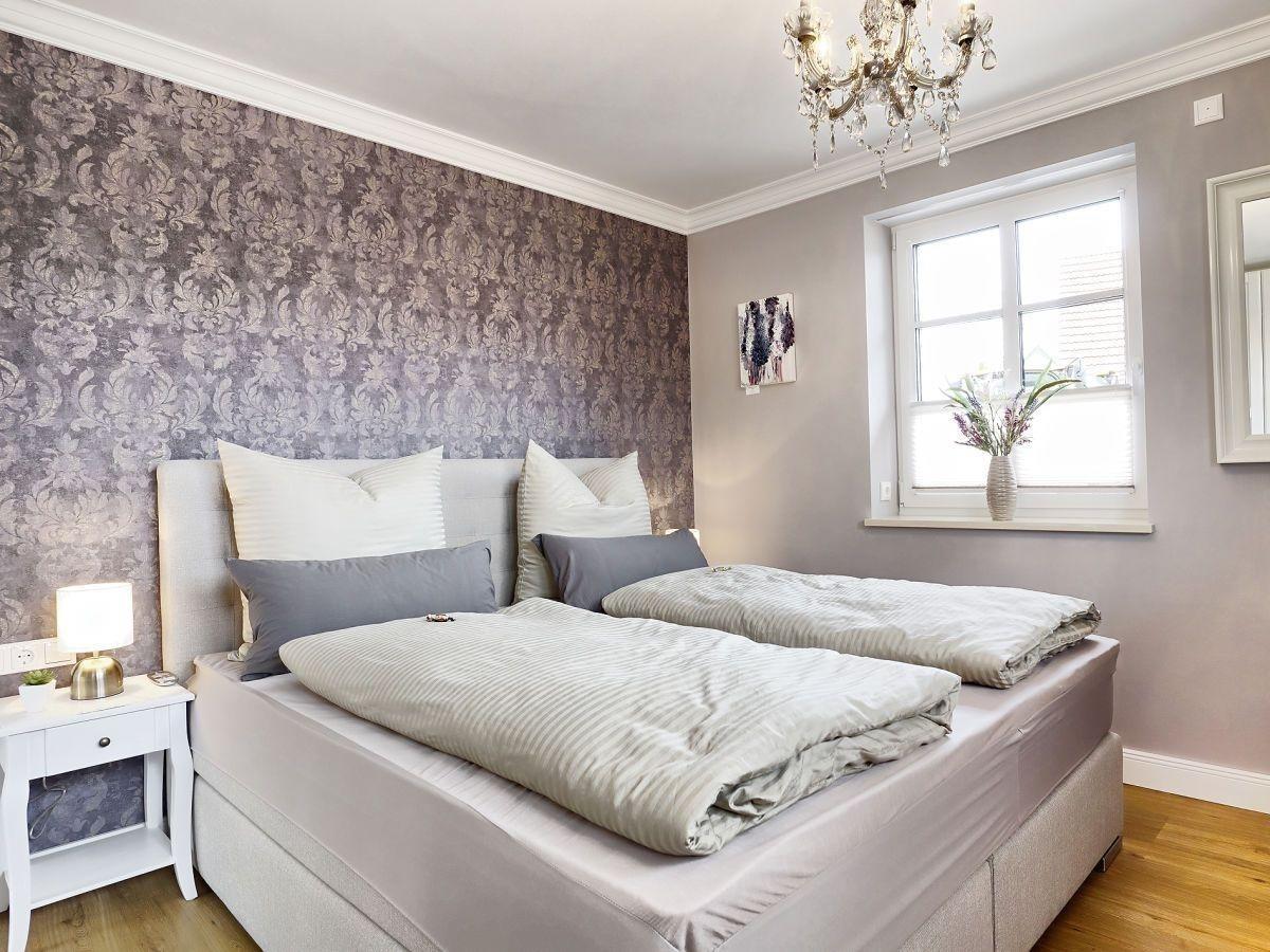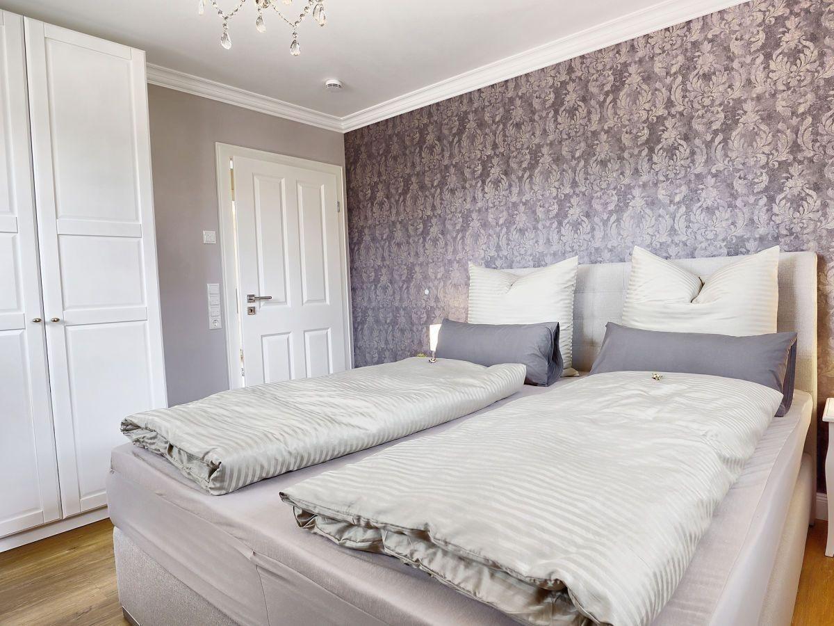 Das Schlafzimmer verfügt über ein hochwertiges Boxspringbett für einen erholsamen Schlaf, einem Sat TV, einem Safe und natürlich über genug Stauraum für Ihre Kleidung.