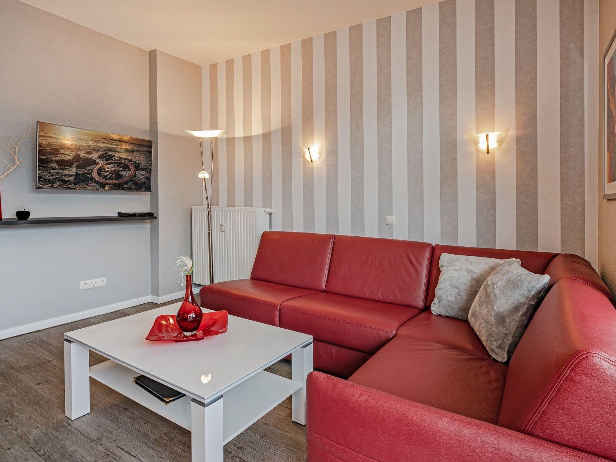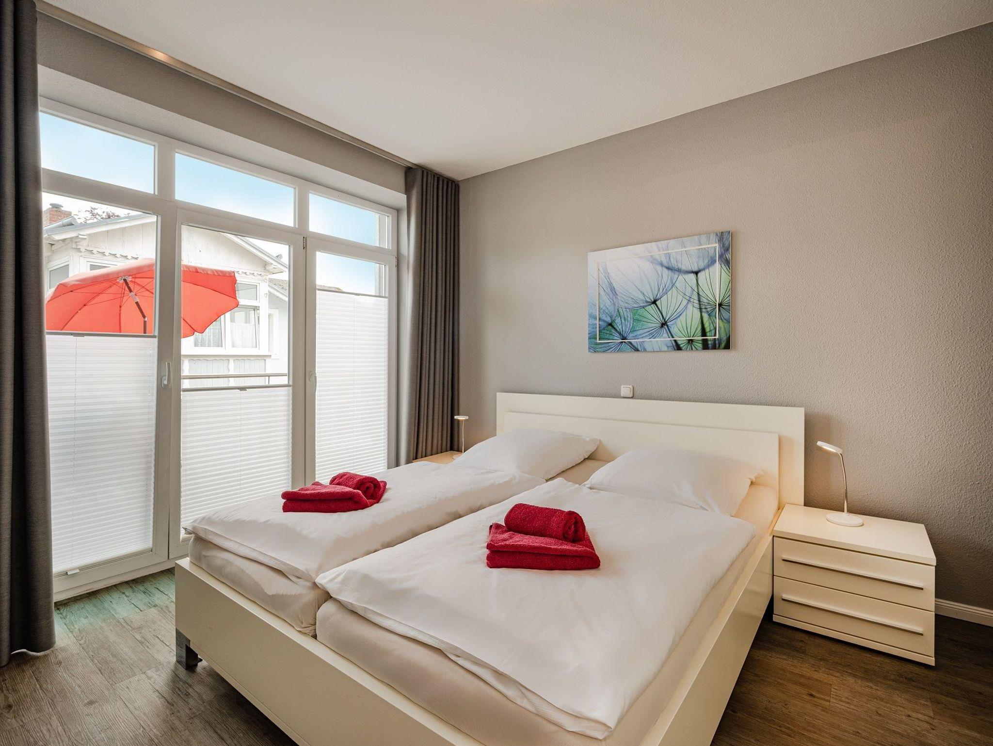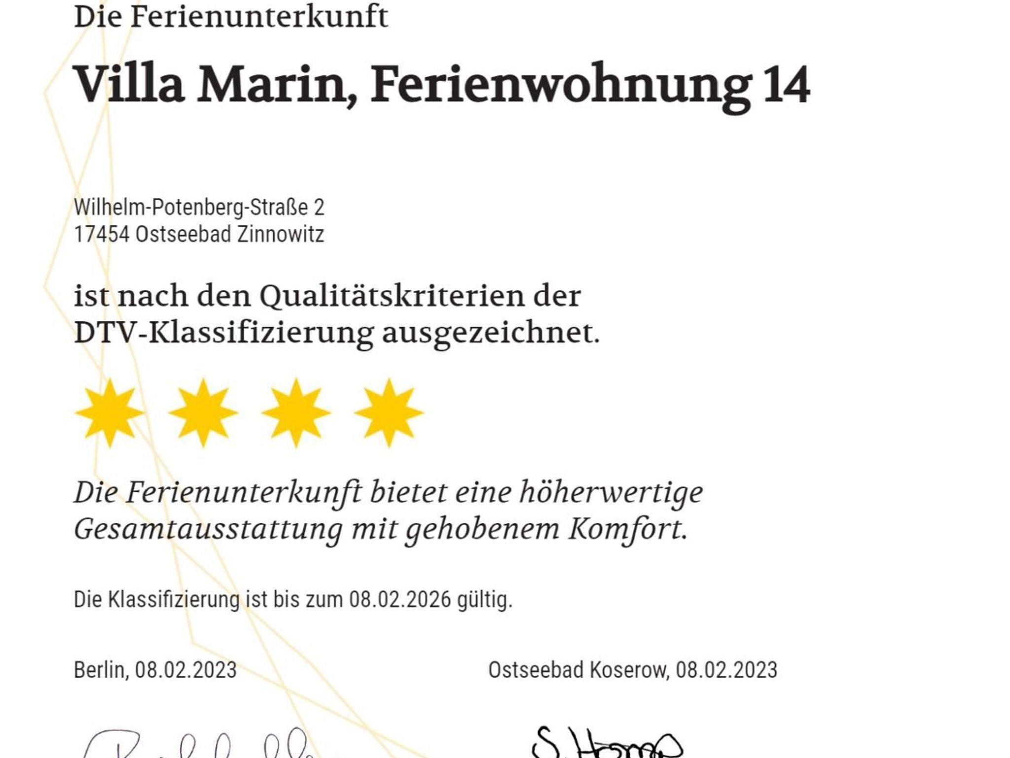 Die 63 m ² große und mit 4 DTV Sternen klassifizierte Ferienwohnung 14 befindet sich in der 1. Etage in der Villa Marin. Sie bietet mit ihren drei Zimmern ausreichend Platz für bis zu 6 Personen.